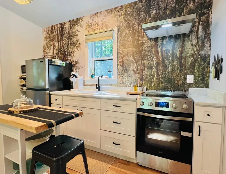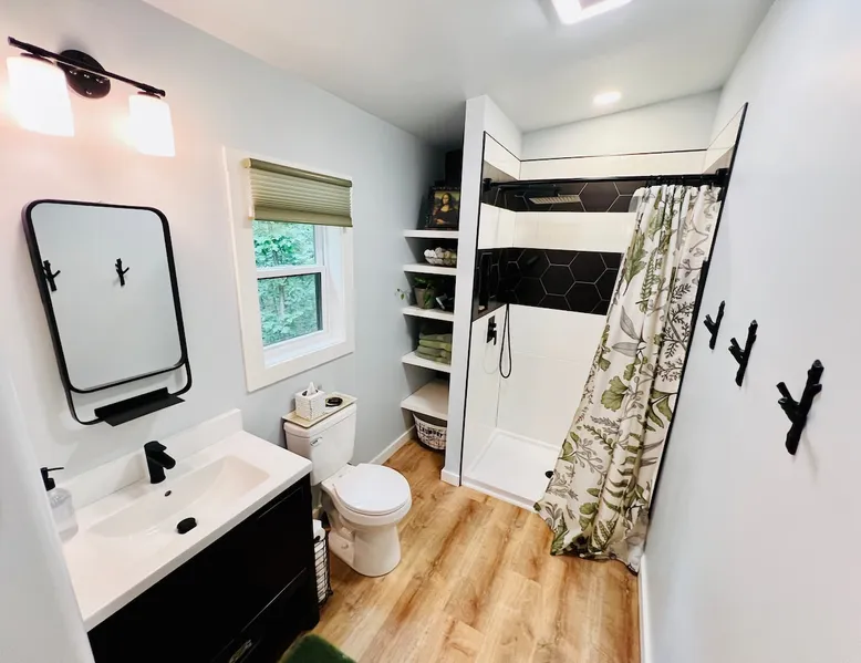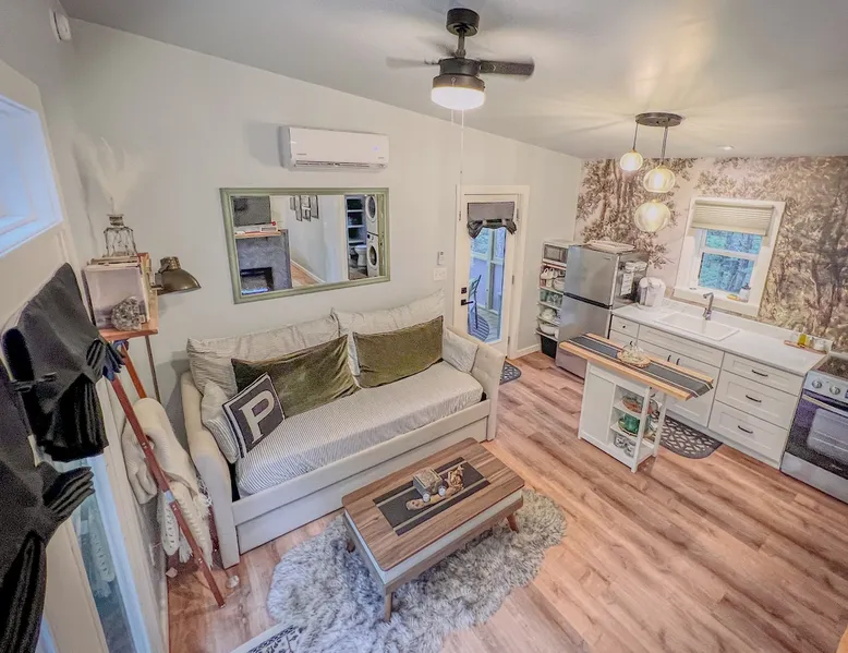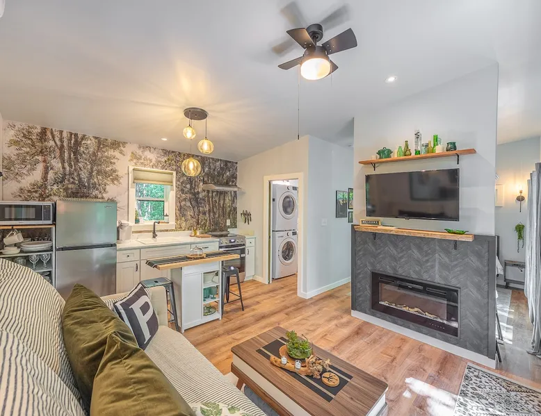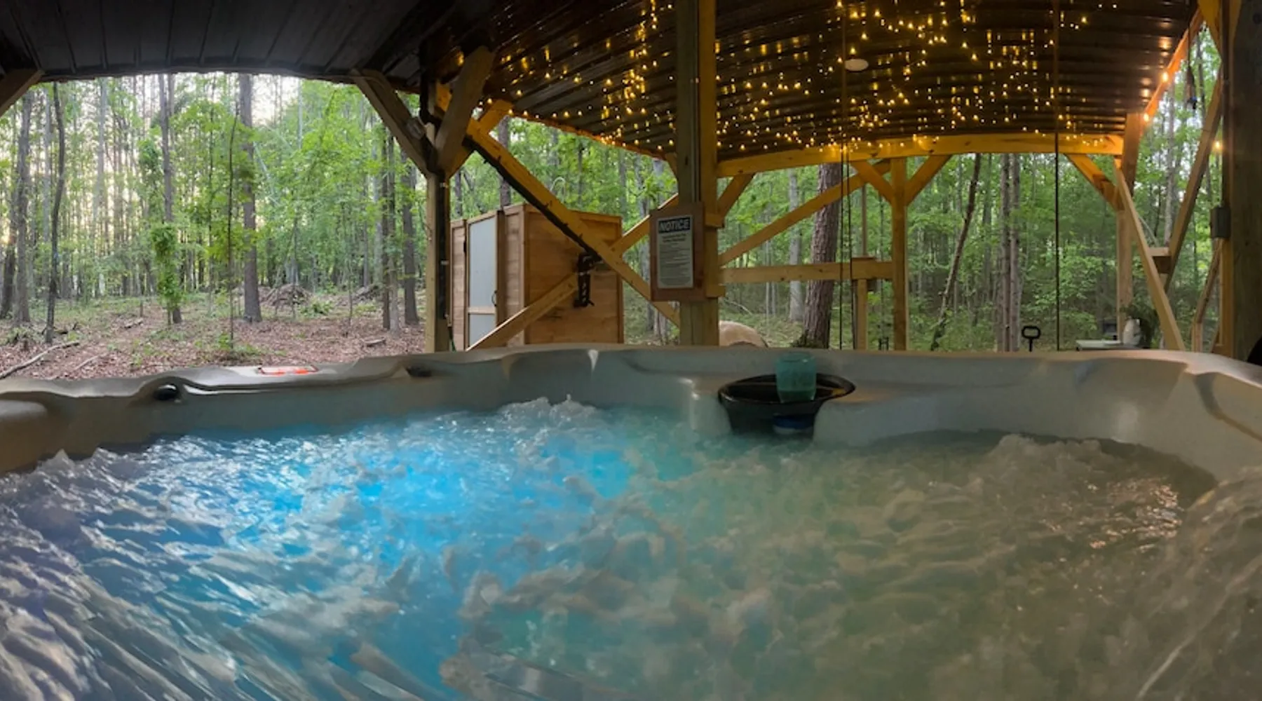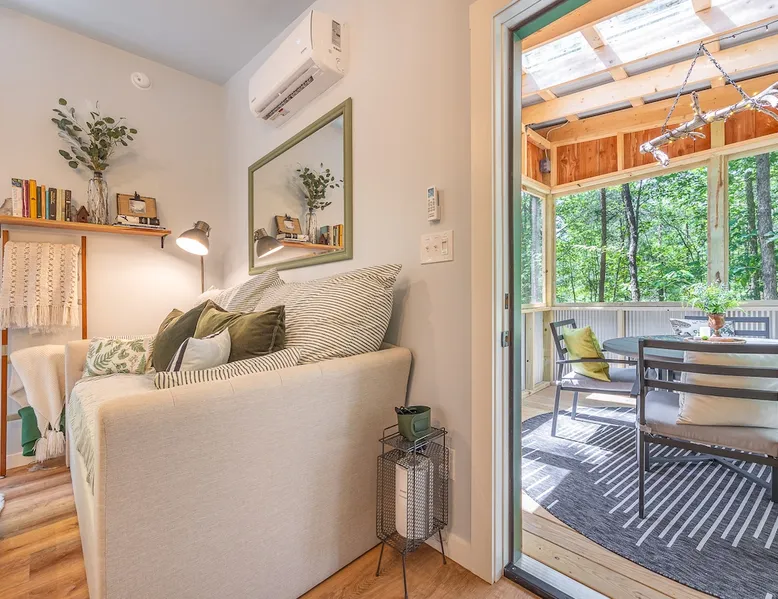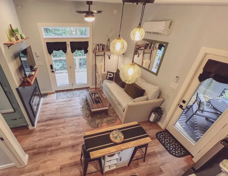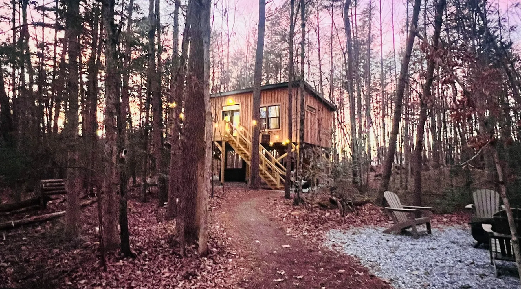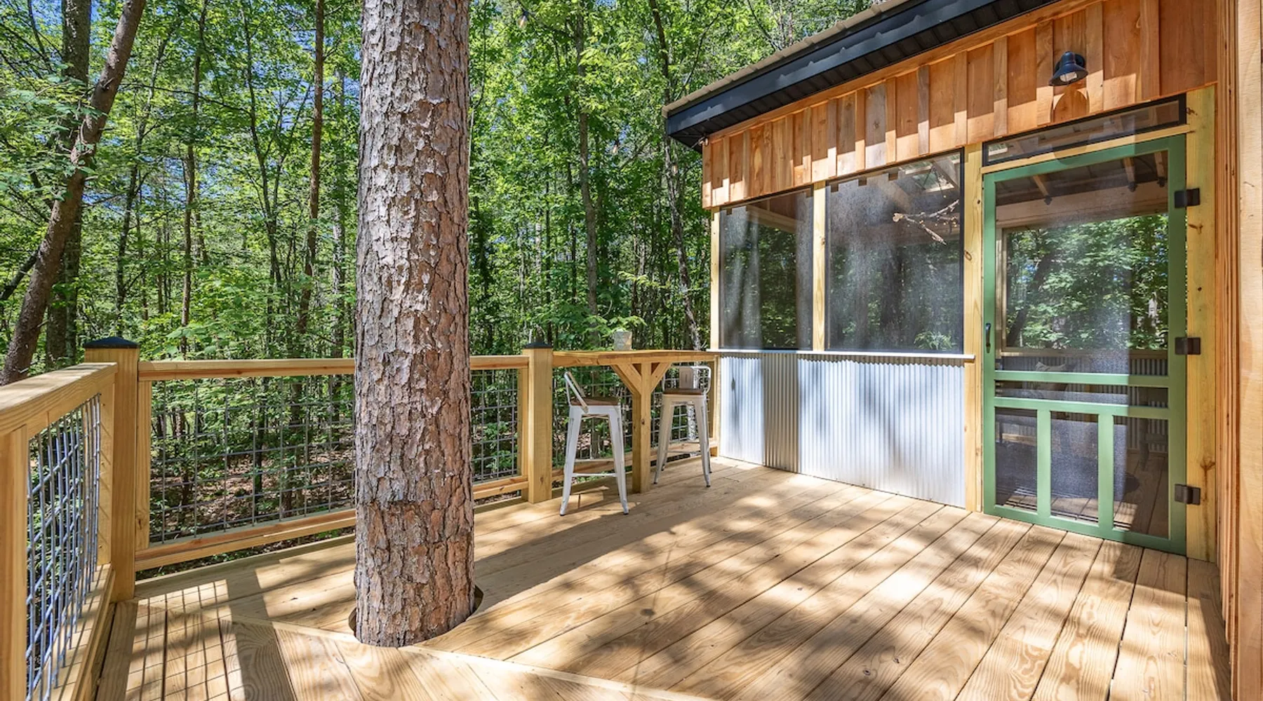 Nestle into your own corner of our 8 acres. Kick back in a forest setting while leaving the rest behind. Wander the nature path. Sit on the screened in porch or by the crackling firepit, take a shower outdoors or soak in the roomy spa. Rural foothills living in Western NC, convenient to Hickory, Morganton, Valdese & Lenoir. Great parks & lakes to explore. (Boat launch is 4 miles away). Check out a local winery/brewery. The Blue Ridge parkway is a short drive & absolutely breathtaking. The space ‘The Perch’ Tiny treehouse is a custom built tiny house (just under 400 square feet). It is situated in a mixed forest. Perfect for a couple or cozy for a small family. Modern design with whimsical storybook touches. It’s like stumbling across granny’s cottage in the forest, but way cooler. The space offers a screened-in porch with dining for four plus a two-seater bar top by the big pine through the deck. Cook up a tasty meal in the full kitchen or on the charcoal grill. Wander on our little nature path through the forest. There are hammock swings available creekside. Enjoy a soak in your private hot tub and then sink into the daybed, turn on the fireplace and candles, borrow a book from our mini library or watch a movie. The Perch has its own dedicated hi-speed internet for our guests. Guest access This is a private home with its own gravel driveway and parking area. The flat, mulched path from your vehicle to the Perch is approximately 40 feet. It is suitable for about any vehicle to access (yes, even a Prius) and ample room for truck and boat/utility trailer to park. Other things to note Please note this is a rural/country environment. While guests find our area very peaceful, you may hear a passing vehicle/lawn mower from time to time, encounter wildlife and sounds common to country life such as a dog bark, woodpeckers pecking, a tractor, a dirt bike/4 wheeler, children at play or even hunting/target practice in the distance. While we offer most of the amenities of a standard American home, we do not have a dishwasher on property. To keep a sanitary environment, minimize critters and keep our cleaning fee low, guests are asked to wash the dishes they have used. There is a queen bed and 2 twins. A partition is between the sleeping areas, but no door. Per our insurance carrier, all guests must agree to hot tub waiver (sent upon booking). The hot tub is cleaned and chemistry is balanced and video documented daily. Time-stamped video footage is taken indoors just prior to each guest check in as well.
