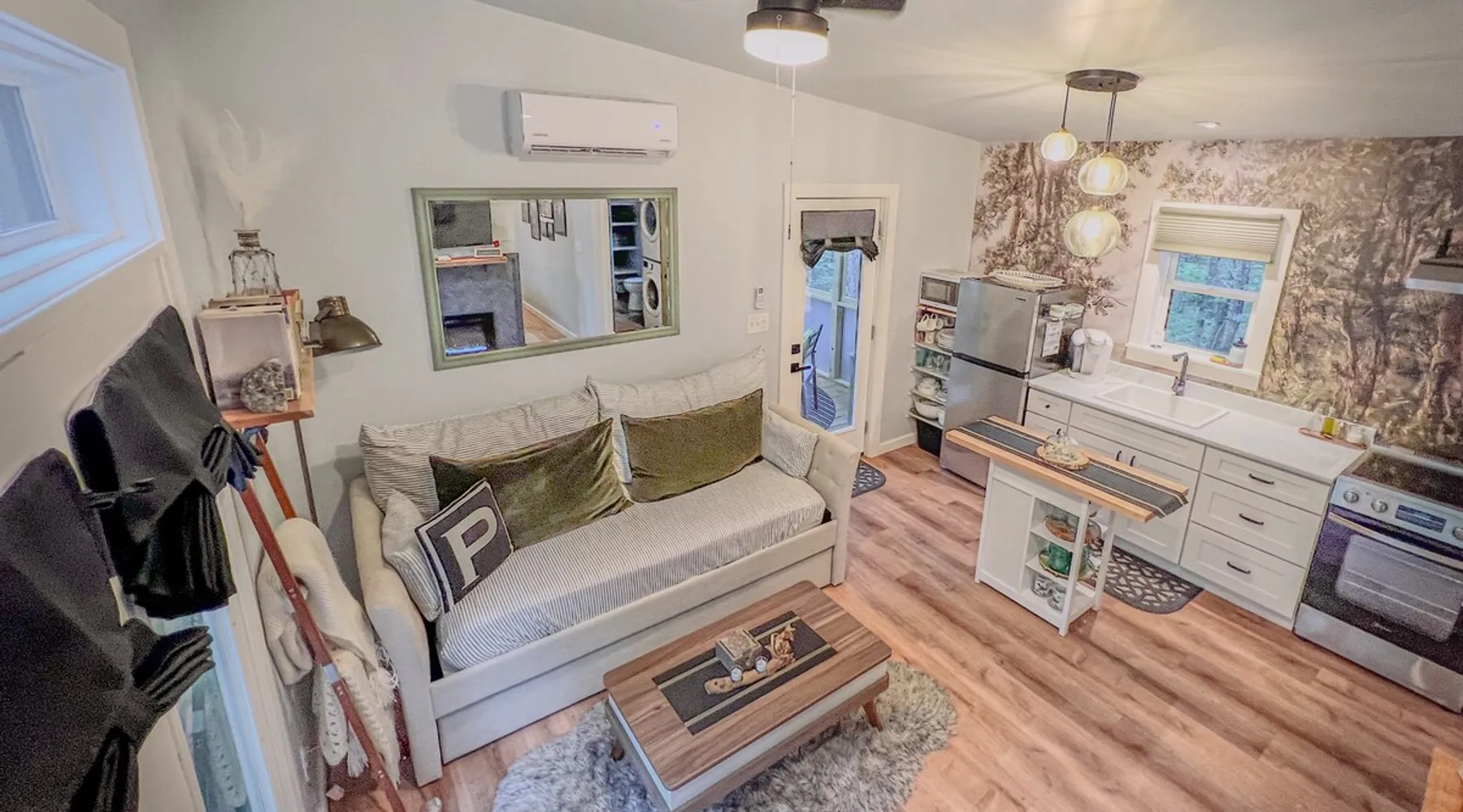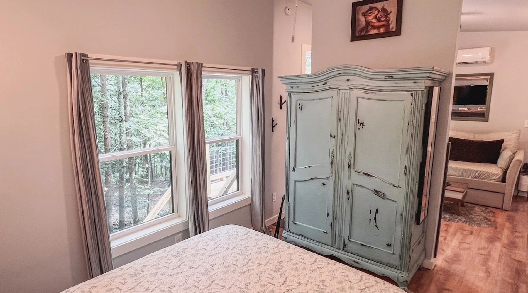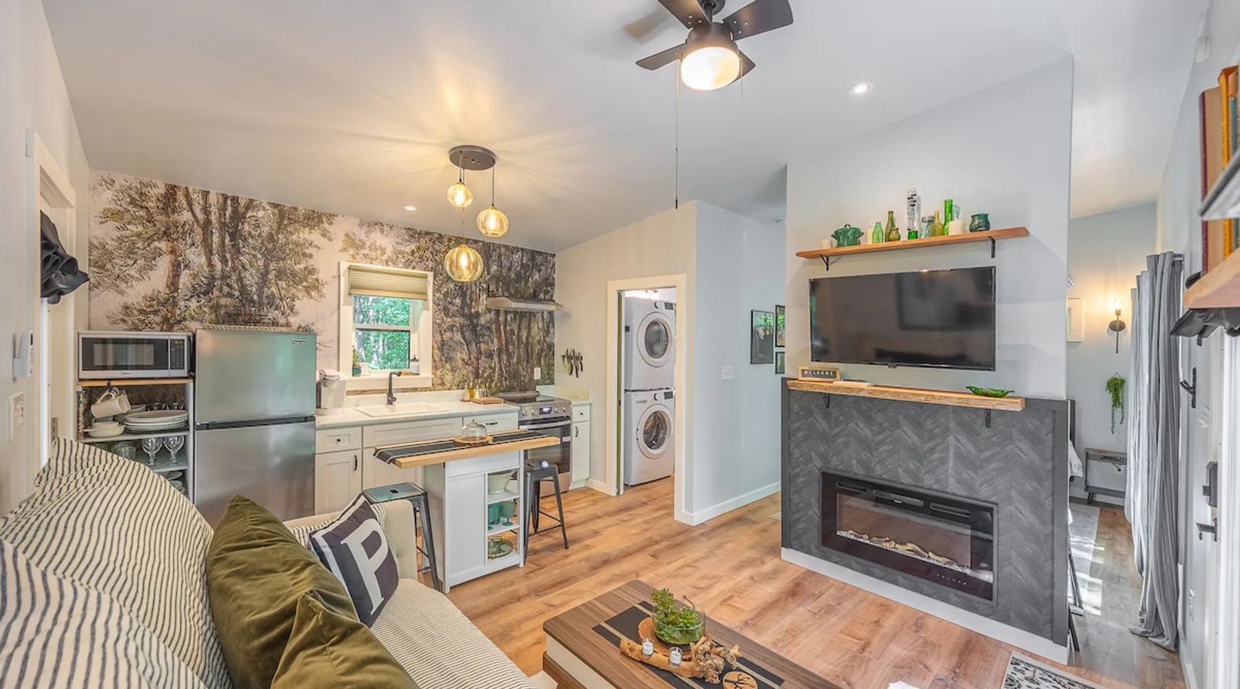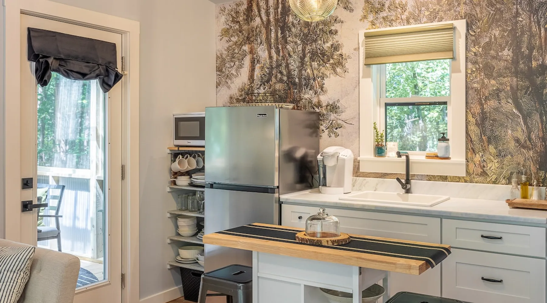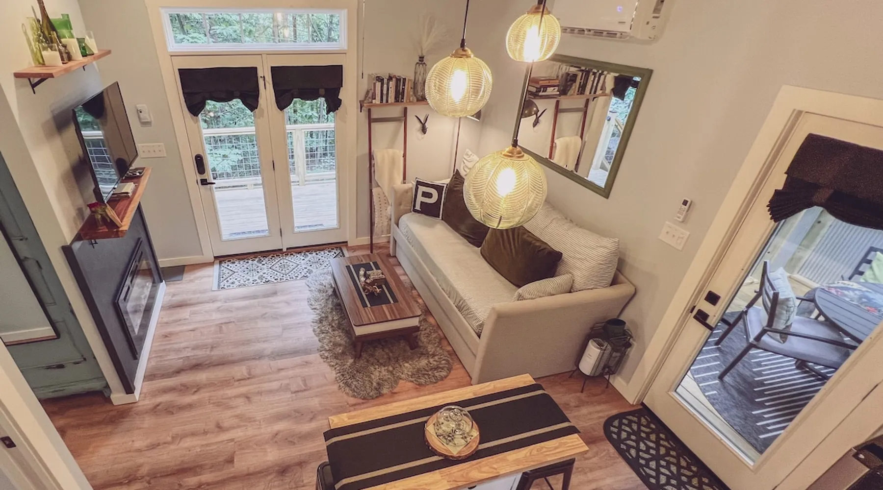 Nestle into your own corner of our 8 acres. Kick back in a forest setting while leaving the rest behind. Wander the nature path. Sit on the screened in porch or by the crackling firepit, take a shower outdoors or soak in the roomy spa. Rural foothills living in Western NC, convenient to Hickory, Morganton, Valdese & Lenoir. Great parks & lakes to explore. (Boat launch is 4 miles away). Check out a local winery/brewery. The Blue Ridge parkway is a short drive & absolutely breathtaking. The space ‘The Perch’ Tiny treehouse is a custom built tiny house (just under 400 square feet). It is situated in a mixed forest. Perfect for a couple or cozy for a small family. Modern design with whimsical storybook touches. It’s like stumbling across granny’s cottage in the forest, but way cooler. The space offers a screened-in porch with dining for four plus a two-seater bar top by the big pine through the deck. Cook up a tasty meal in the full kitchen or on the charcoal grill. Wander on our little nature path through the forest. There are hammock swings available creekside. Enjoy a soak in your private hot tub and then sink into the daybed, turn on the fireplace and candles, borrow a book from our mini library or watch a movie. The Perch has its own dedicated hi-speed internet for our guests. Guest access This is a private home with its own gravel driveway and parking area. The flat, mulched path from your vehicle to the Perch is approximately 40 feet. It is suitable for about any vehicle to access (yes, even a Prius) and ample room for truck and boat/utility trailer to park. Other things to note Please note this is a rural/country environment. While guests find our area very peaceful, you may hear a passing vehicle/lawn mower from time to time, encounter wildlife and sounds common to country life such as a dog bark, woodpeckers pecking, a tractor, a dirt bike/4 wheeler, children at play or even hunting/target practice in the distance. While we offer most of the amenities of a standard American home, we do not have a dishwasher on property. To keep a sanitary environment, minimize critters and keep our cleaning fee low, guests are asked to wash the dishes they have used. There is a queen bed and 2 twins. A partition is between the sleeping areas, but no door. Per our insurance carrier, all guests must agree to hot tub waiver (sent upon booking). The hot tub is cleaned and chemistry is balanced and video documented daily. Time-stamped video footage is taken indoors just prior to each guest check in as well.
