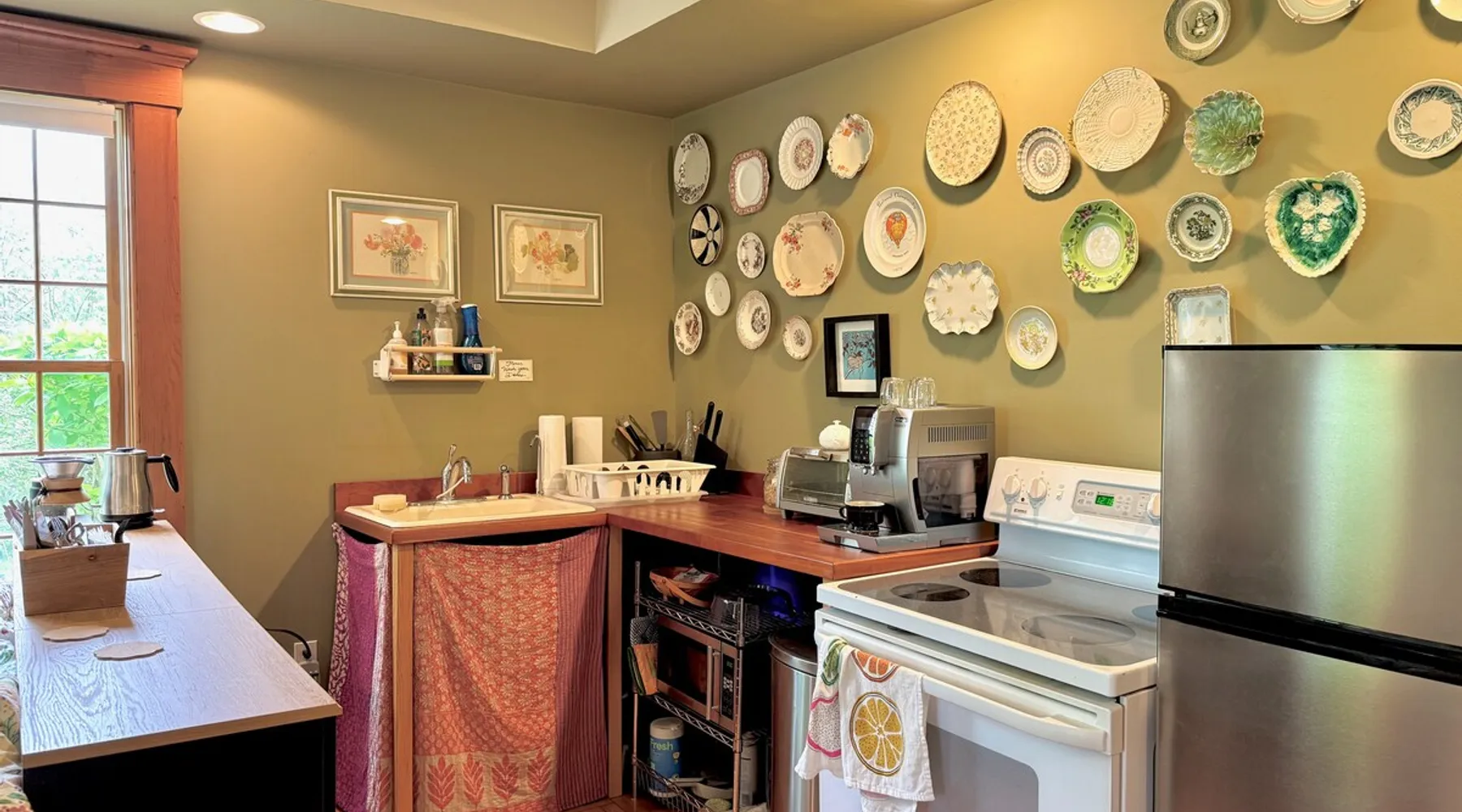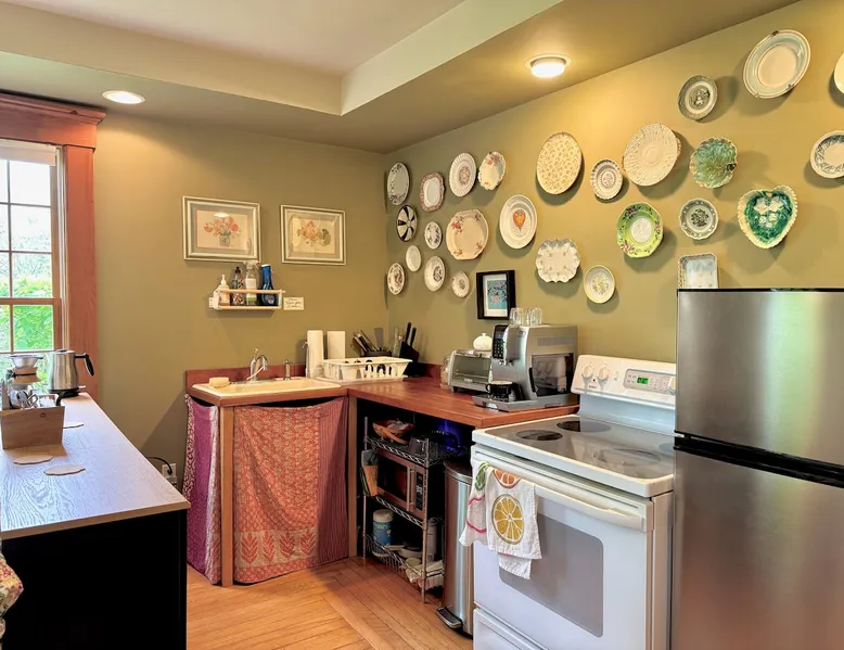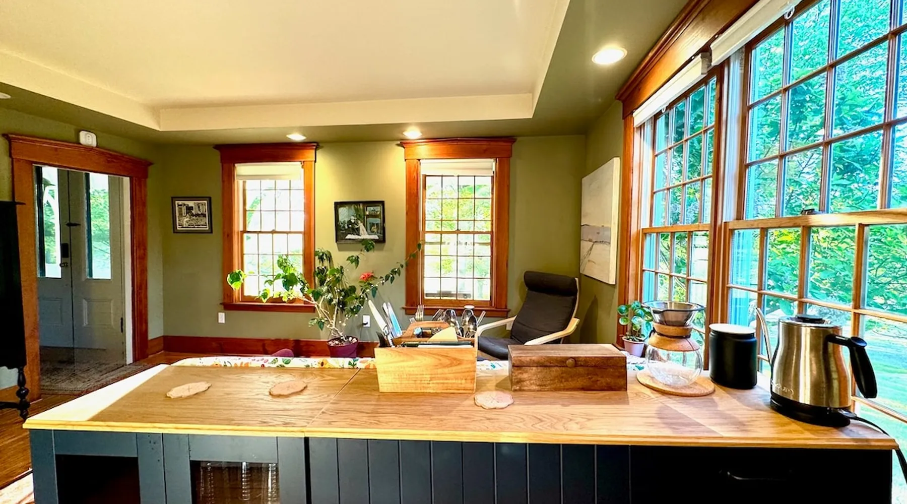 Nestled in Hartland’s rolling hills, just 20 minutes from Woodstock, the East Wing Suite offers a peaceful escape with modern amenities and scenic views. This private suite includes two bedrooms, two bathrooms, a full kitchen, a cozy reading nook, and exclusive access. Perfect for couples, families, and remote workers, it features high-speed fiber internet, a private entrance, and easy access to Vermont’s best outdoor adventures. The space Through a series of incredible coincidences and a bit of good luck, we found ourselves with the opportunity to purchase this historic farmhouse after it had been abandoned for nearly a decade. Nestled in the rolling hills of Hartland, it felt like the perfect place to raise our children and build a life rooted in everything we love about Vermont—history, community, and the beauty of the changing seasons. From the quiet of winter snowfalls to the vibrant colors of autumn, from summer evenings on the porch to spring mornings in the garden, this place allows us to live the Vermont life we cherish. Whether it’s hiking in the woods, working on the land, or just soaking in the mountain views, we knew this home was where we wanted to put down roots. And now, we love sharing it with others who come to experience a little piece of Vermont for themselves. Guest access Welcome to our historic home! We're honored to be the current caretakers of this beautiful property and excited to share it with you. The house is thoughtfully divided into two distinct living spaces. You will be staying in the front half of the house, which offers complete privacy. This includes your own entrance, dedicated parking, a fully equipped kitchen, and all the amenities you need for a comfortable stay. We typically reside in the back half of the house. While we're often on the property, rest assured that your space is entirely private. You'll have full and exclusive access to your side of the house throughout your stay.
