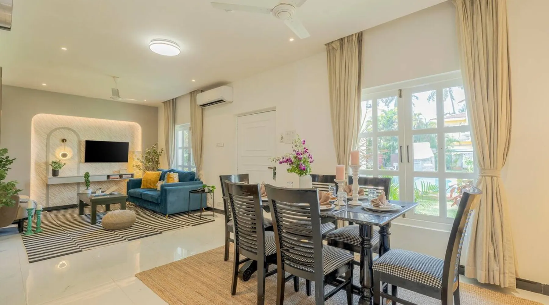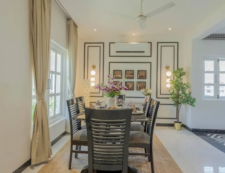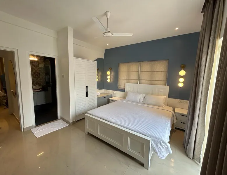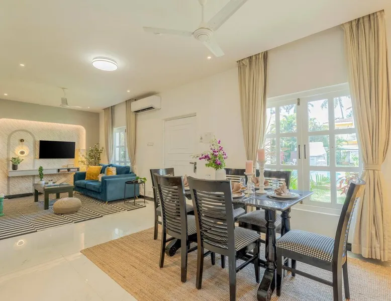 Welcome to Richmonde by Ananta Hotels! Indulge in luxury and unparalleled experiences in the heart of Saligao, just 10 minutes from Candolim Beach. Nestled in a vibrant neighborhood surrounded by renowned restaurants, bars, and cafes all just minutes away. Our well-appointed 3BHK villa accommodates up to 7 guests (6+1) and offers all modern amenities, services, and 24/7 security. For dining you can either visit or order from the Float restaurant located just 200 meters away on the ground floor.