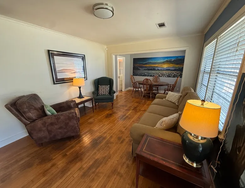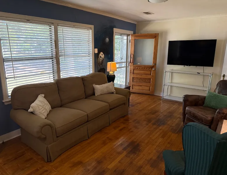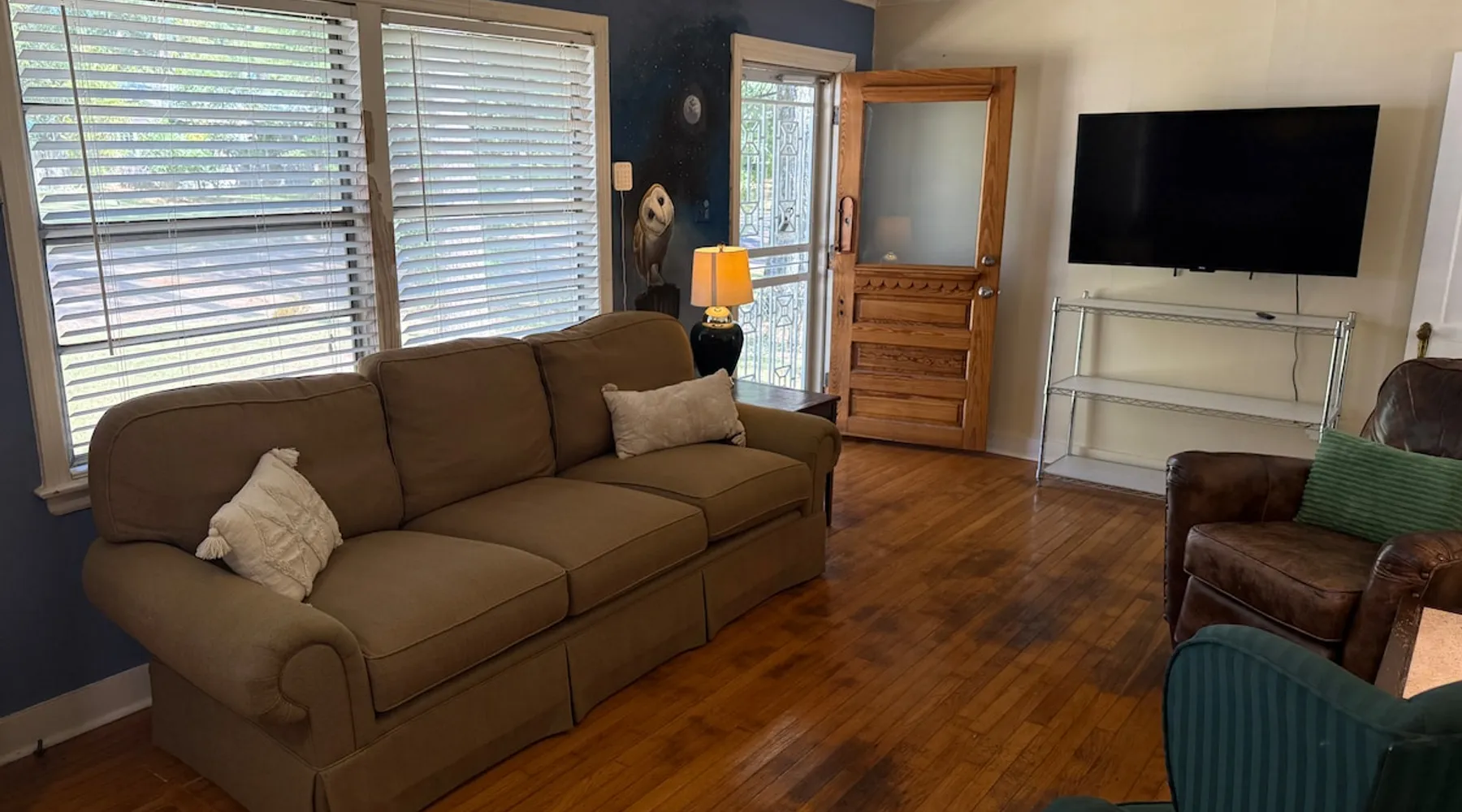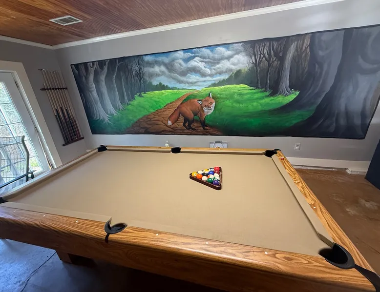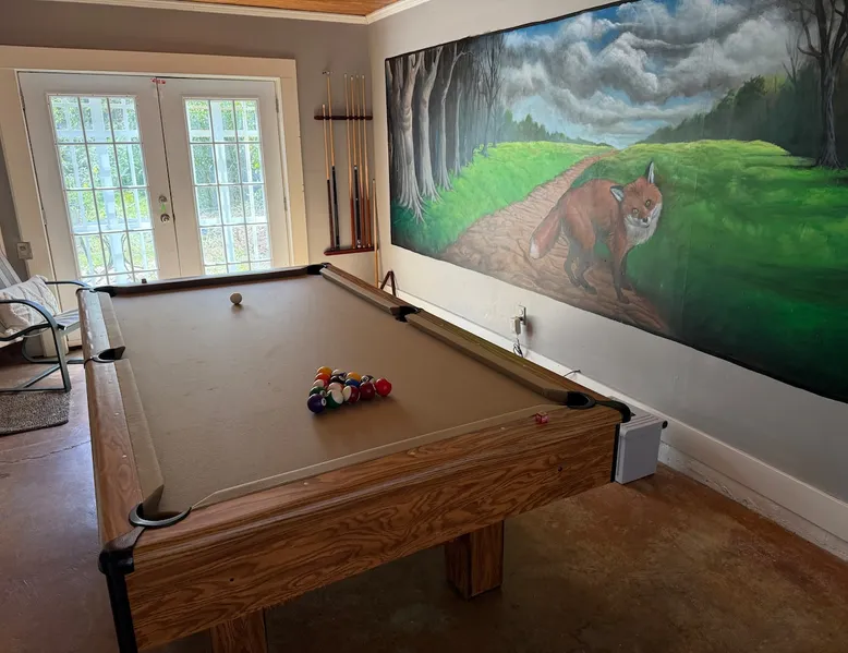 The Mural House is located on a quiet, calm street in North Fondren - close to St. Richard's Church and Banner Hall. This unique house is close to everything, making it easy to plan your visit and get around town! In addition to the three bedrooms, you will find multiple murals throughout the house featuring local wildlife and scenes - a barred owl, a fox, a field, and more.