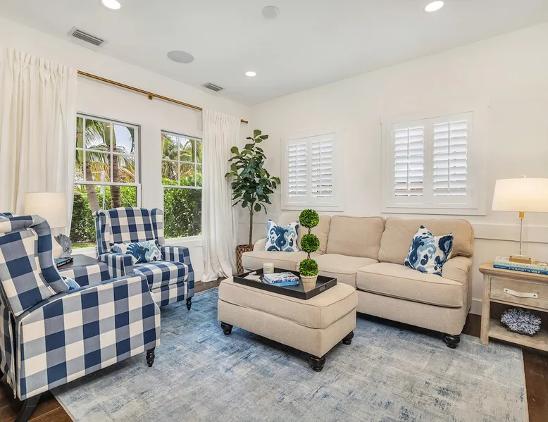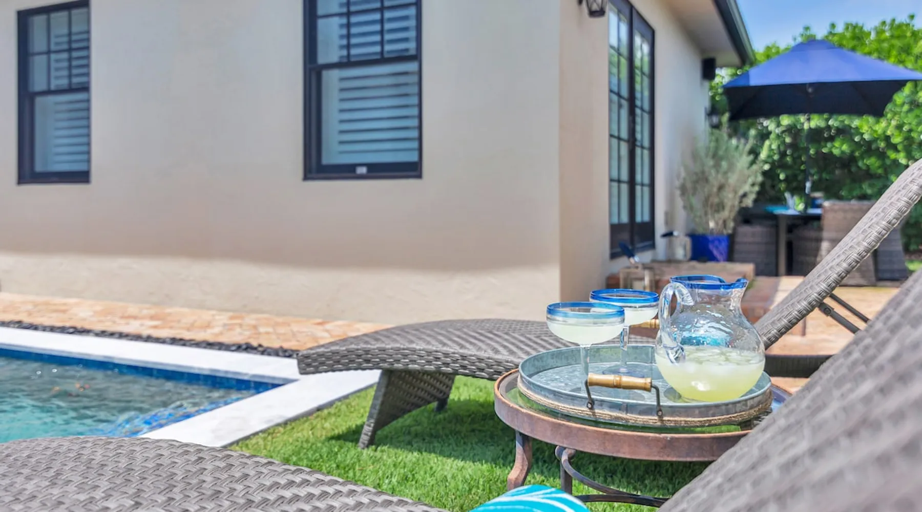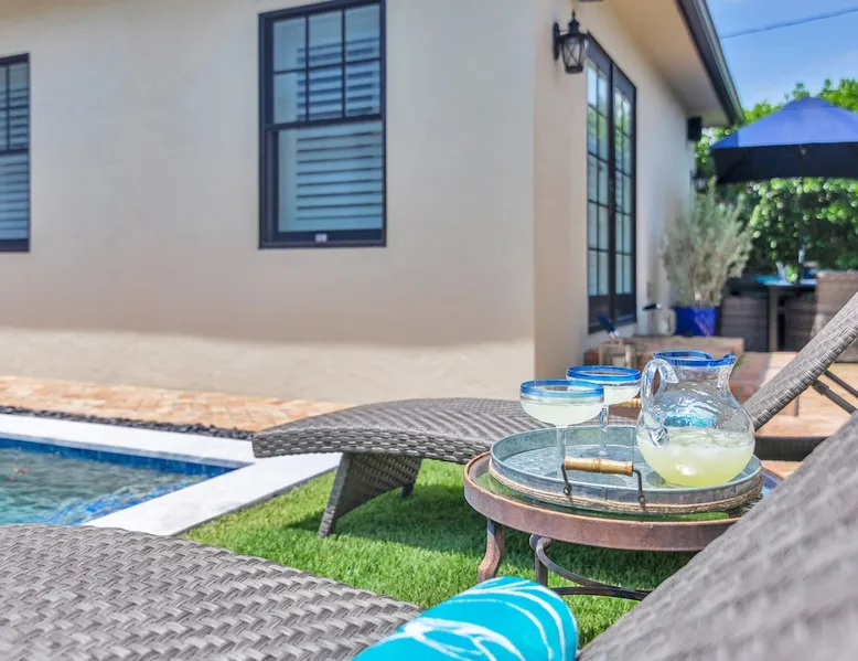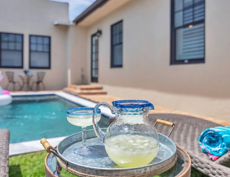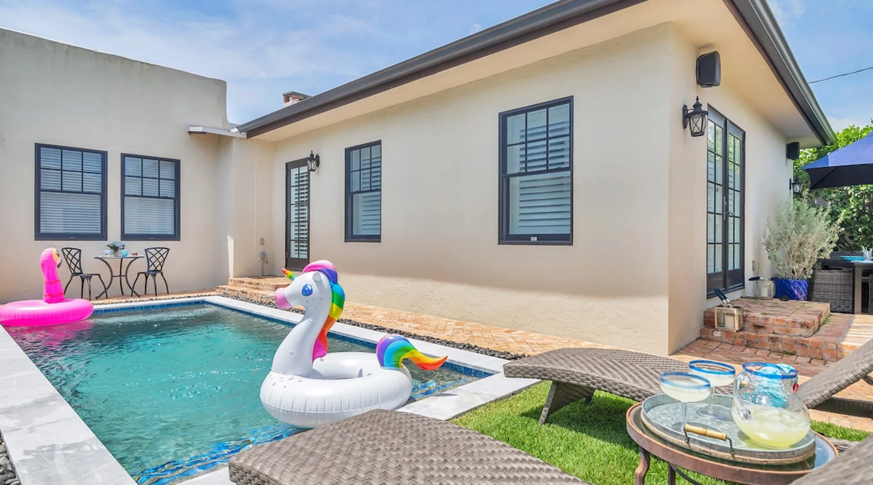 Feeling blessed! We have everything you need to feel right at home. Prayers go out to all of those devastated by the recent hurricanes. We look forward to being your home away from home, whatever your situation. Welcome to The Royal Palms Estate, providing top tier luxury accommodations to the most discerning clientele. This is the retreat your high standards have been waiting for. The space Welcome to The Royal Palms, another Hotel Home Stays stunning estate, in one of the most sought-after neighborhoods in West Palm Beach - SOSO! Located just a short walk from the Inter-Coastal shores and steps to Dixie Grill & Brewery. Take a short drive to all the best places to visit in Palm Beach Island. Less than 5 minutes to Mar-a-Lago, Howley's (a local favorite), Havana, Aioli's (my favorite coffee spot), Darbster's, Lynora's Kitchen and more! The gem of our property is the attention to detail and luxury finishes that make it truly a home away from home. From the moment you wake up, you'll be treated to gorgeous greenery all around. Soak up the sun in your private courtyard. And when you're ready to explore, you'll find plenty of outdoor adventures right at your fingertips. Swim in the ocean on Palm Beach Island, enjoy a round of golf at one of the nearby resorts, or relax in the backyard oasis. Highlights! - SOSO West Palm Beach Neighborhood - High-Speed Internet – Ideal “work-cation spot” - Smart TVs with access to all your favorite Apps - Separated Guest House/Private Suite (Sleeps 4) - Outdoor and Indoor Games for the family, including a full-size Badminton court! - Crib and Highchair provided free of charge - Heated pool with loungers - Outdoor Living Room - Outdoor Dining & BBQ Grill Inside, our estate is equally as impressive. The designer modern paradise has an open floor plan which allows for plenty of space to relax and unwind, while the gourmet kitchen is a chef's dream come true. With top-of-the-line appliances and plenty of counter space, you'll have everything you need for an incredible meal. Guest Occupancy: Max 10 Local Attractions: - 8 Minutes to Swimming on Palm Beach Island - 8 Minutes to Shopping on Famous Worth Avenue - 10 Minutes to The Breakers on Palm Beach Island - 10 Minutes to Palm Beach International Airport - 5 Minutes to Palm Beach Golf Course Enjoy Complimentary Concierge Service Elevate your vacation rental experience with our exclusive complimentary concierge service. Our bookings include a complimentary concierge who can recommend transportation, book spa services, recommend a private chef, book the unpacking of groceries delivered by InstaCart, recommend babysitters and so much more. BEDROOMS Master Bedroom King Bed with en-suite bathroom and gorgeous modern glass shower Walk-in closet. Tons of space! Queen Guest Bedroom Luxury Bed with reach-in closet and smart TV Twin Bedroom (2 Twins) Fabulously comfortable twin beds with reach-in closet Guest House Luxury Queen Bed Comfortable pull-out sofa couch (queen size) Kitchenette / Games / TV & Private Bathroom Total sleeping options: 1 King, 2 Queens, 1 Queen-size sofa-bed, 2 Twins, 1 Travel Crib DINING OPTIONS Kitchen Dining Room - Seats 8 Kitchen Bar - Seats - Seats 3 Guest House Kitchenette - Seats 2 Outdoor Dining - Seats 4 at the main table and 2 at the bistro table LIVING ROOMS Front Living Room - Seats 5 Family Room - Seats 5 Guest House Living Room - Seats 3 A little bit about us... You are about to book with Hotel Home Stays, the best of luxury home vacation experiences. Our team prides themselves on ensuring our guests experience PEACE for the soul. Our hotel standards ensure the highest level of care throughout your stay. While our luxury-designed homes ensure the comforts you just can’t live without. (wink, wink) PROTECTION – With mattress encasements, pillow protectors, hypoallergenic bedding options, and COVID cleanliness standards, we go the extra mile in every home. EFFORTLESS – No guesswork, we text and email the check-in details. No looking for keys, the door code allows 24-hour access. Electronic guest books are provided prior to and during your stay. AMMENITIES – Arrive to Starbucks coffee, a phenomenally outfitted kitchen that includes coffee bar, mixology bar, kids plates, cups, etc. Along with the necessities, like Insta-Pot and blender. CLEAN – Our housekeepers are fantastic. But we never leave anything to chance, so our managers check the home before you arrive to ensure all the details were handled. EXCELLENCE – Throughout your stay, you will have ongoing communication from our amazing team who can provide local insights, take care of special requests, and handle any issues that arise during your stay swiftly. CHECK-IN AND CHECK-OUT: - Early check-in or late check-out can be at an extra fee depending on availability. - You will receive simple and easy-to-follow check-out instructions upon your arrival. - A rental contract will emailed for electronic signature before check-in. Before checking into the property we must collect a credit card and photo ID to verify your identity and cover any incidentals (as we do not charge a security deposit). Guest must provide CC and ID that match for the reservation. Keep in mind, if you are choosing to book our home using a 3rd party website and not booking directly, not all third parties share your information with us. When you book, you are agreeing to submit a copy of your photo ID, email address, and credit card to us after you book. This is standard procedure for professional property managers, just like hotels. Age minimum 21, and no pets are allowed without permission in advance and applicable fees. Security: Please note, that there is a camera out front pointed towards the front yard and one in the back yard pointed toward the pool for liability purposes. Pool Heating Details - Pool heating is optional and available for an additional nightly rate of $100 per night. - The pool can be heated during winter months when the natural 