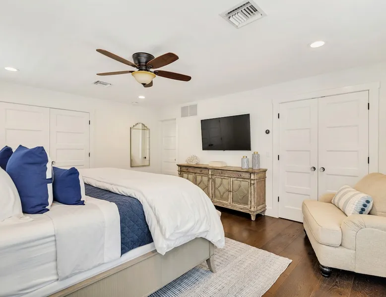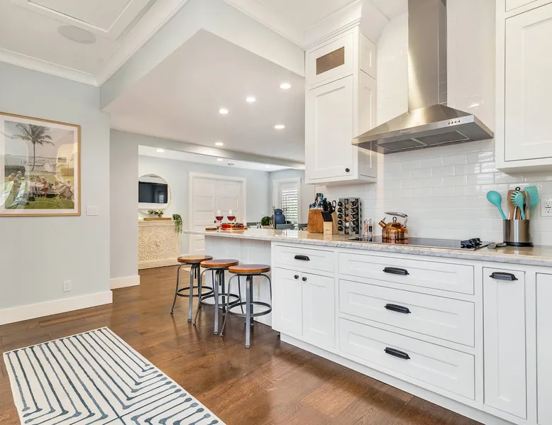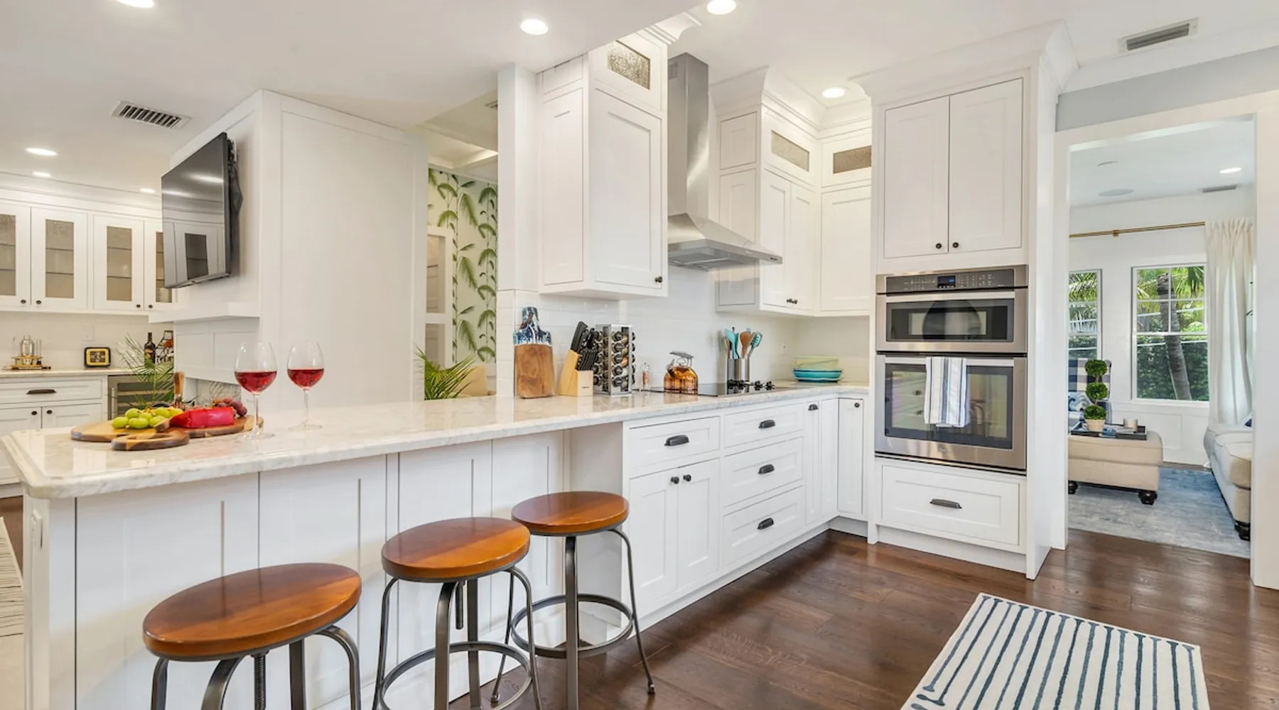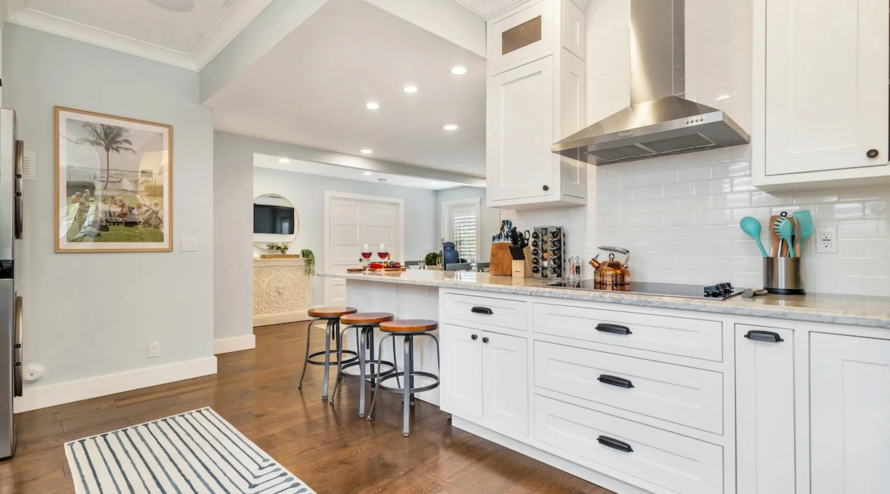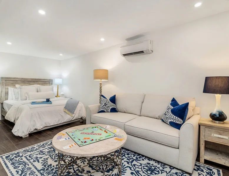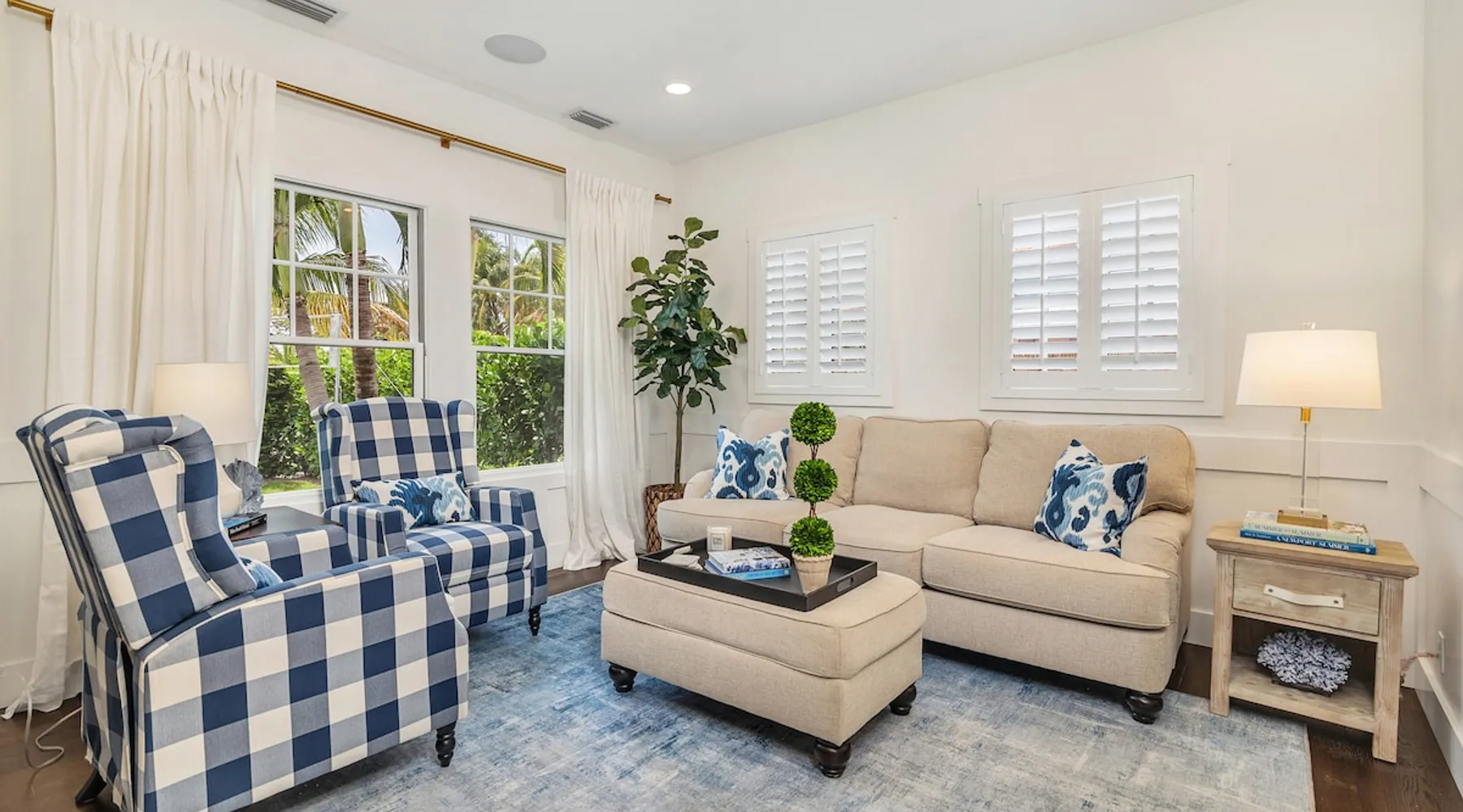 Feeling blessed! We have everything you need to feel right at home. Prayers go out to all of those devastated by the recent hurricanes. We look forward to being your home away from home, whatever your situation. Welcome to The Royal Palms Estate, providing top tier luxury accommodations to the most discerning clientele. This is the retreat your high standards have been waiting for. The space Welcome to The Royal Palms, another Hotel Home Stays stunning estate, in one of the most sought-after neighborhoods in West Palm Beach - SOSO! Located just a short walk from the Inter-Coastal shores and steps to Dixie Grill & Brewery. Take a short drive to all the best places to visit in Palm Beach Island. Less than 5 minutes to Mar-a-Lago, Howley's (a local favorite), Havana, Aioli's (my favorite coffee spot), Darbster's, Lynora's Kitchen and more! The gem of our property is the attention to detail and luxury finishes that make it truly a home away from home. From the moment you wake up, you'll be treated to gorgeous greenery all around. Soak up the sun in your private courtyard. And when you're ready to explore, you'll find plenty of outdoor adventures right at your fingertips. Swim in the ocean on Palm Beach Island, enjoy a round of golf at one of the nearby resorts, or relax in the backyard oasis. Highlights! - SOSO West Palm Beach Neighborhood - High-Speed Internet – Ideal “work-cation spot” - Smart TVs with access to all your favorite Apps - Separated Guest House/Private Suite (Sleeps 4) - Outdoor and Indoor Games for the family, including a full-size Badminton court! - Crib and Highchair provided free of charge - Heated pool with loungers - Outdoor Living Room - Outdoor Dining & BBQ Grill Inside, our estate is equally as impressive. The designer modern paradise has an open floor plan which allows for plenty of space to relax and unwind, while the gourmet kitchen is a chef's dream come true. With top-of-the-line appliances and plenty of counter space, you'll have everything you need for an incredible meal. Guest Occupancy: Max 10 Local Attractions: - 8 Minutes to Swimming on Palm Beach Island - 8 Minutes to Shopping on Famous Worth Avenue - 10 Minutes to The Breakers on Palm Beach Island - 10 Minutes to Palm Beach International Airport - 5 Minutes to Palm Beach Golf Course Enjoy Complimentary Concierge Service Elevate your vacation rental experience with our exclusive complimentary concierge service. Our bookings include a complimentary concierge who can recommend transportation, book spa services, recommend a private chef, book the unpacking of groceries delivered by InstaCart, recommend babysitters and so much more. BEDROOMS Master Bedroom King Bed with en-suite bathroom and gorgeous modern glass shower Walk-in closet. Tons of space! Queen Guest Bedroom Luxury Bed with reach-in closet and smart TV Twin Bedroom (2 Twins) Fabulously comfortable twin beds with reach-in closet Guest House Luxury Queen Bed Comfortable pull-out sofa couch (queen size) Kitchenette / Games / TV & Private Bathroom Total sleeping options: 1 King, 2 Queens, 1 Queen-size sofa-bed, 2 Twins, 1 Travel Crib DINING OPTIONS Kitchen Dining Room - Seats 8 Kitchen Bar - Seats - Seats 3 Guest House Kitchenette - Seats 2 Outdoor Dining - Seats 4 at the main table and 2 at the bistro table LIVING ROOMS Front Living Room - Seats 5 Family Room - Seats 5 Guest House Living Room - Seats 3 A little bit about us... You are about to book with Hotel Home Stays, the best of luxury home vacation experiences. Our team prides themselves on ensuring our guests experience PEACE for the soul. Our hotel standards ensure the highest level of care throughout your stay. While our luxury-designed homes ensure the comforts you just can’t live without. (wink, wink) PROTECTION – With mattress encasements, pillow protectors, hypoallergenic bedding options, and COVID cleanliness standards, we go the extra mile in every home. EFFORTLESS – No guesswork, we text and email the check-in details. No looking for keys, the door code allows 24-hour access. Electronic guest books are provided prior to and during your stay. AMMENITIES – Arrive to Starbucks coffee, a phenomenally outfitted kitchen that includes coffee bar, mixology bar, kids plates, cups, etc. Along with the necessities, like Insta-Pot and blender. CLEAN – Our housekeepers are fantastic. But we never leave anything to chance, so our managers check the home before you arrive to ensure all the details were handled. EXCELLENCE – Throughout your stay, you will have ongoing communication from our amazing team who can provide local insights, take care of special requests, and handle any issues that arise during your stay swiftly. CHECK-IN AND CHECK-OUT: - Early check-in or late check-out can be at an extra fee depending on availability. - You will receive simple and easy-to-follow check-out instructions upon your arrival. - A rental contract will emailed for electronic signature before check-in. Before checking into the property we must collect a credit card and photo ID to verify your identity and cover any incidentals (as we do not charge a security deposit). Guest must provide CC and ID that match for the reservation. Keep in mind, if you are choosing to book our home using a 3rd party website and not booking directly, not all third parties share your information with us. When you book, you are agreeing to submit a copy of your photo ID, email address, and credit card to us after you book. This is standard procedure for professional property managers, just like hotels. Age minimum 21, and no pets are allowed without permission in advance and applicable fees. Security: Please note, that there is a camera out front pointed towards the front yard and one in the back yard pointed toward the pool for liability purposes. Pool Heating Details - Pool heating is optional and available for an additional nightly rate of $100 per night. - The pool can be heated during winter months when the natural 