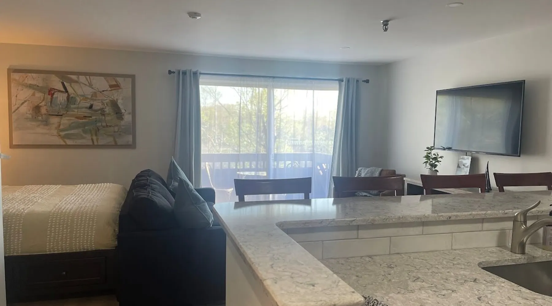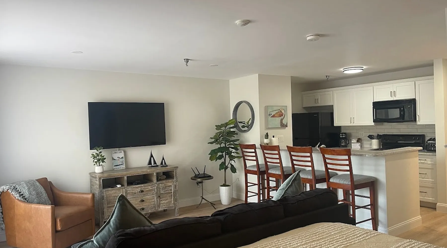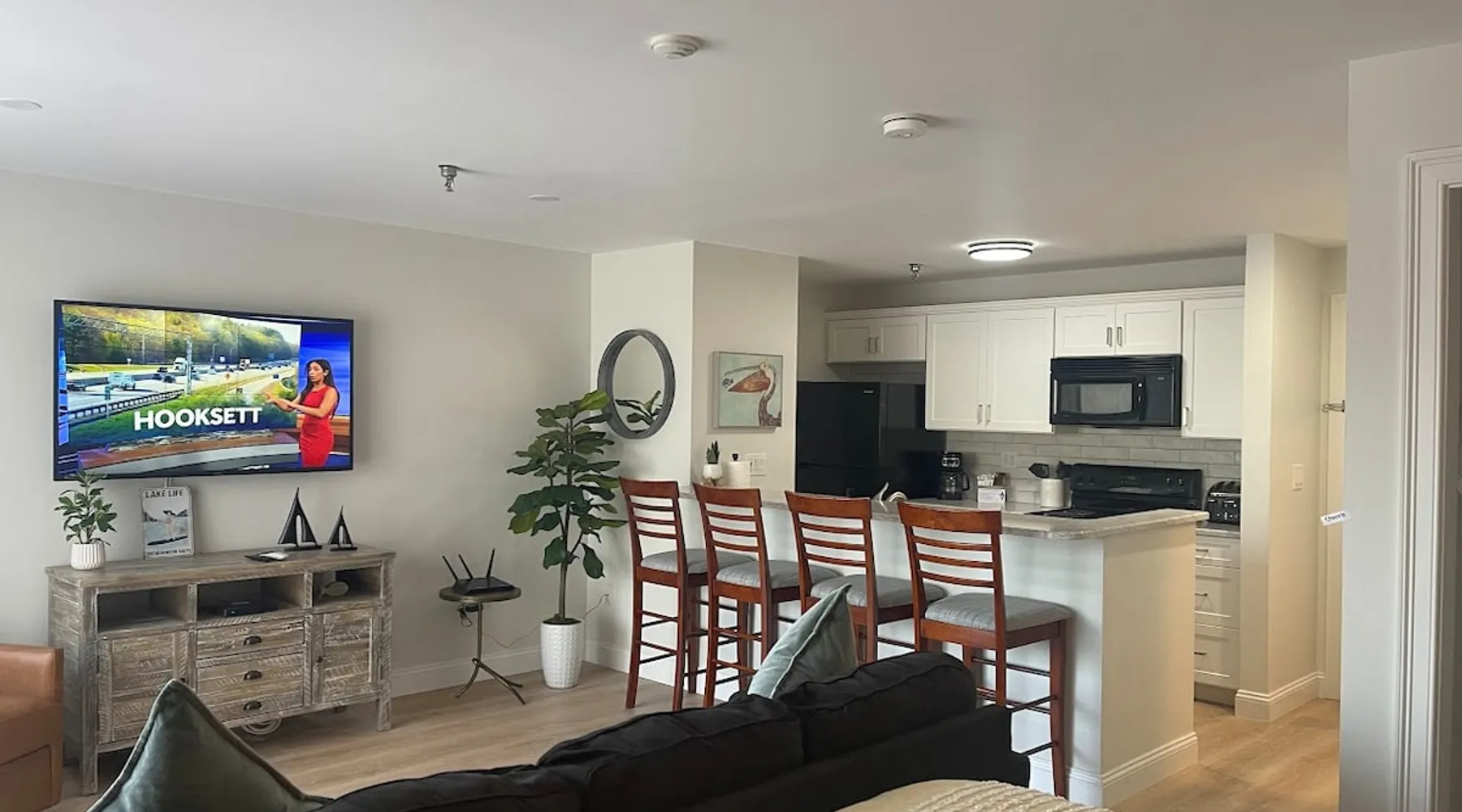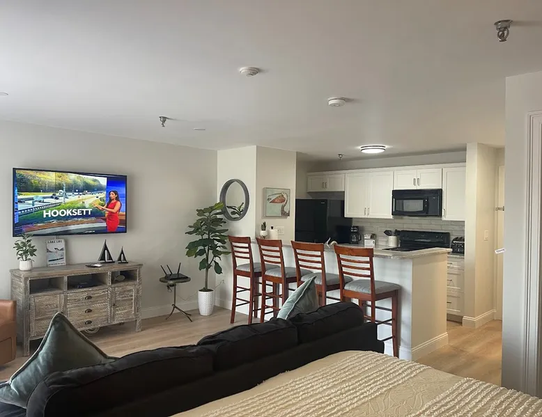 Enjoy aThis condo suite is located at Condominium Suites at Lake Winnipesaukee - voted #1 vacation rental in the Lakes Region in the 2020 Best of the Lakes Region contest and second place in 2021 2022 and 2023! Though the building is an older brick building, the condo suites are all very tastfully decorated, and comfortable. Although we are across the street from the lake, we do not have direct access. Weirs Beach is 12 minutes down the street. Weirs Beach has shops, eateries and arcades. The space This condo suite is located at Condominium Suites at Lake Winnipesaukee - voted #1 vacation rental in the Lakes Region in the 2020 Best of the Lakes Region contest and second place in 2021 and 2022! Though the building is an older brick building, the condo suites are all very tastfully decorated and comfortable. There is no elevator in the building. Two flights of stairs are needed to access this unit. We are located 3.3 miles to the back parking lot of Bank of NH Pavilion and 4.5 miles to the main entrance. Don't want to drive? Call Bah Hoppah! They are a shuttle service and will pick you up in the parking lot and take you right to the concert venue and then bring you home! Ride Gannon has also been used by many guests who have been very happy with their ride service. Although we are across the street from the lake, we do not have direct access. Weirs Beach is 12 minutes down the street. Weirs Beach has shops, eateries and arcades. Weirs Beach Go-Kart Track has bumper boat rentals, a climbing wall, and several miniature golf courses like Pirate’s Cove. Also nearby is Gunstock Mountain Resort, with outdoor fun all four seasons of the year in their Adventure Park Funspot, the largest arcade in the world, is located right up the street from Weirs Beach! Kellerhaus is also just up the road from Weirs Beach. They have homemade candy and homemade ice cream as well as a fabulous gift shop. You can choose to have your ice cream with no toppings, with sprinkles only, or upgrade to a sundae and make a pass through the toppings smorgasbord, which includes hot fudge, butterscotch, strawberries, chocolate sauce, homemade whipped cream, marshmallow, pineapple, macaroon crunch, banana chips, M&M's, sprinkles, and more. Pile on as much as you can! When you are done creating your masterpiece, instead of a cherry, top it off with an American flag. Ellacoya State Park is 9 minutes away. You can make a beach reservation 30 days in advance. There are two gas grills located in the pool area for guests to use during your stay. Plenty of parking for boats, trailers and jetskis! Bring the toys! Downstairs you will find shops, yoga, massage, a billards hall and simulated golf! Fabulous on-site restaurant! Myrna's Classic Cuisine open for dinner at 4:00. They are closed on Sunday and Monday. Taste of Legacy Cafe is also located in the building and serve breakfast and lunch. They are closed Sunday and Monday. Great WIFI in the building! Smart TV only. Also around the corner are several restaurants, TJMaxx, Homegoods, Walmart and Dunkins! Check out our guidebook for so many great attractions in the area!