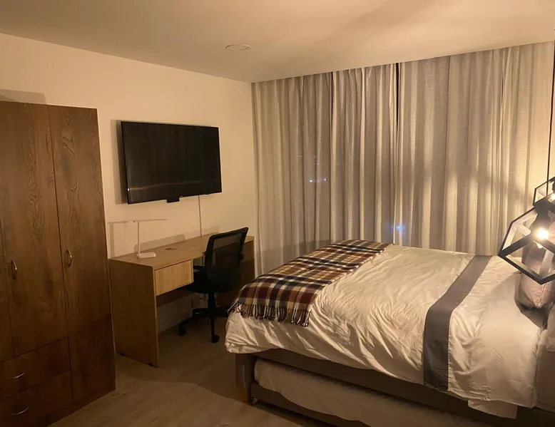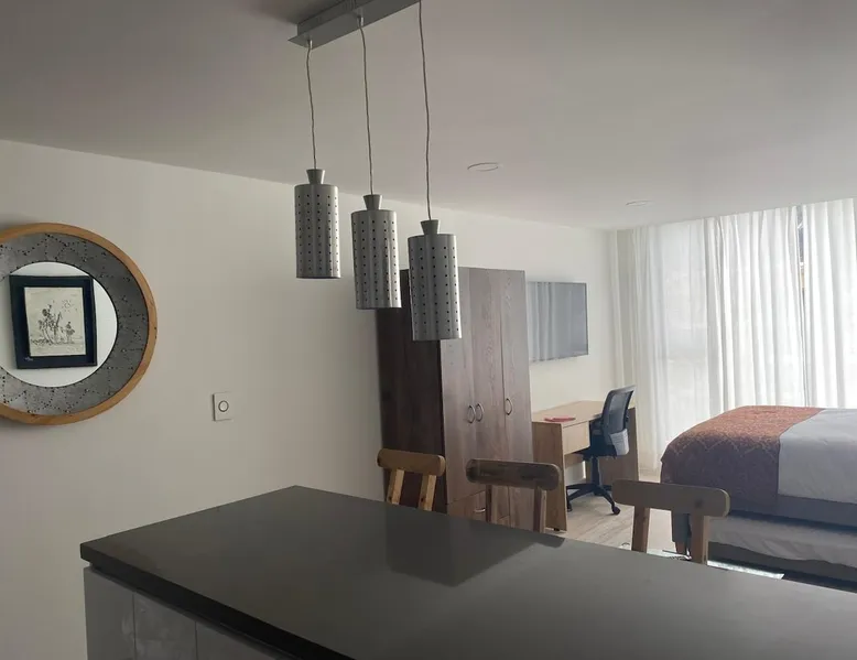 ✔️ Superhost Verified Your stay will be in the best hands! Apartamento en Bogotá, Colombia 📍Excellent location 🏡 Clean, comfortable and safe space. 💬 I am available to assist you throughout your stay. 🔑 Book today and make yourself at home in Colombia! 👨👧👧 Ideal for tourists, executives, couples, families or groups of friends. The apartment offers: 🌐 Wi-Fi. 📺 TV 🍳 Kitchen Work 💻area 🚗Parking 👕Iron 🔥Grill The space ✨ Enjoy a quiet and elegant space in a prime location. 📍 A few steps from Unicentro, with shops🛍️, cinemas🎬, bowling alley🎳, restaurants 🍴 and much more. 🏥 Close to clinics, universities, banks and museums. 🛏️ Studio apartment with double bed + extra bed, with excellent lighting and natural ventilation 🌿. Ideal for resting with the family or after your day. 🌆💫 Guest access kitchen equipped with induction stove and kitchen battery, microwave, sandwaker, blender, coffee maker, juicer, iron and ironing table Other things to note When booking, remember that for registration and security policies we request: ID 🆔 photo of all guests (can be License or Passport). ✔️ Your safety and comfort is our priority! Registration Details 185942