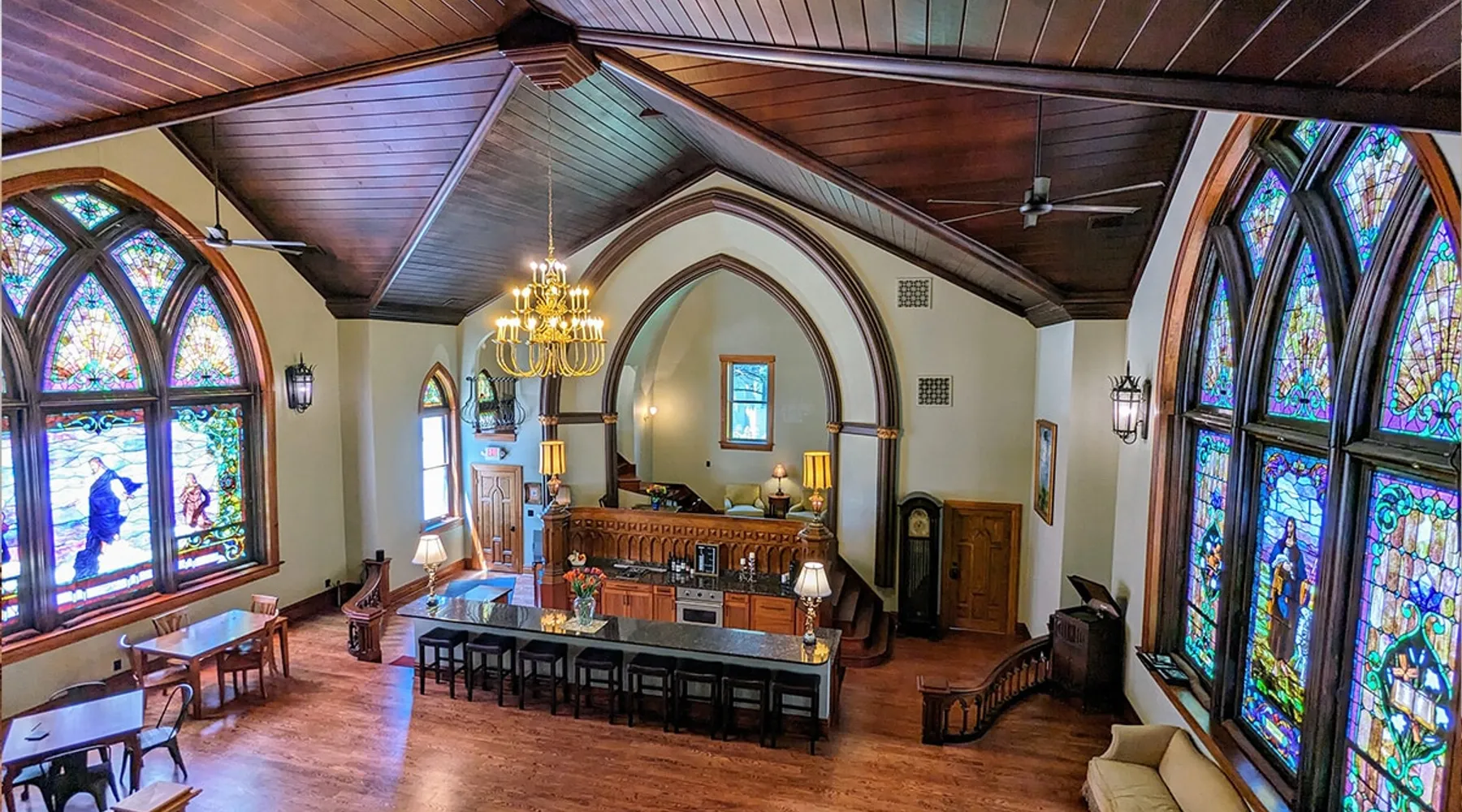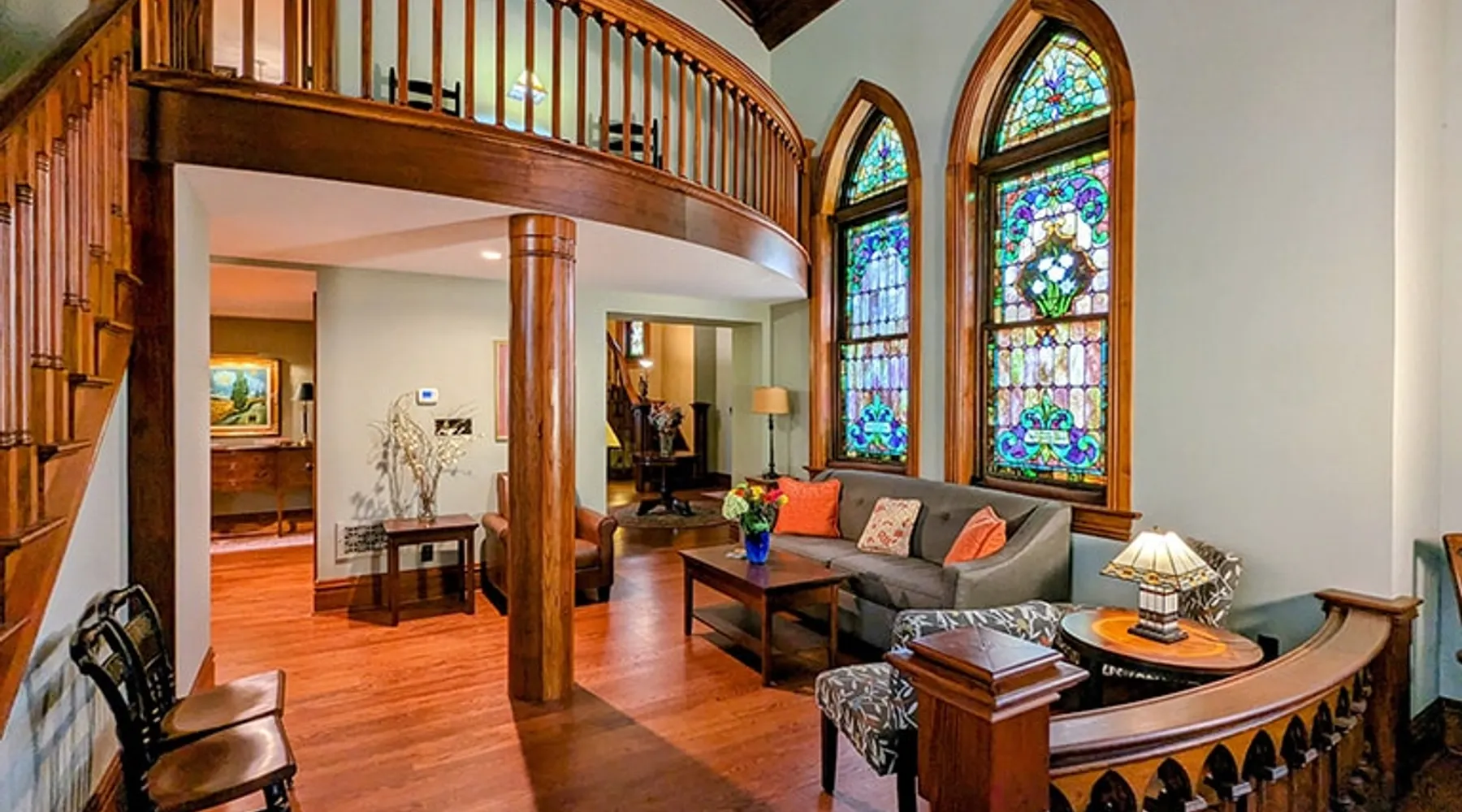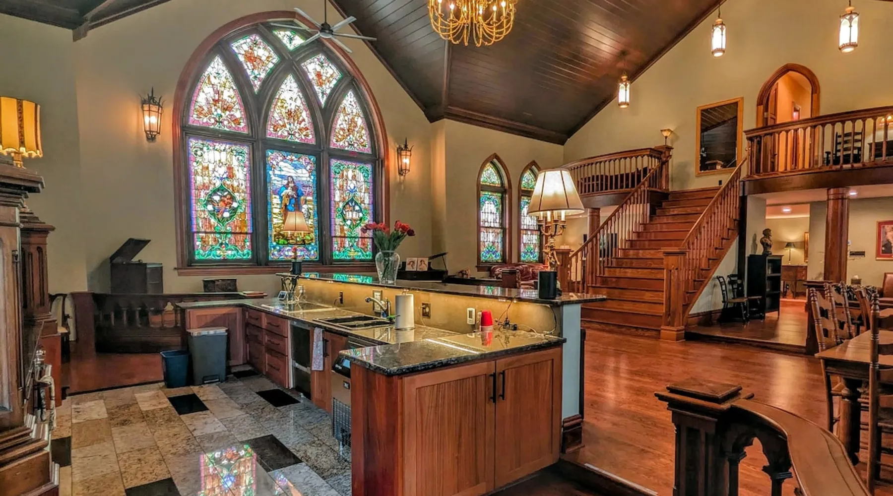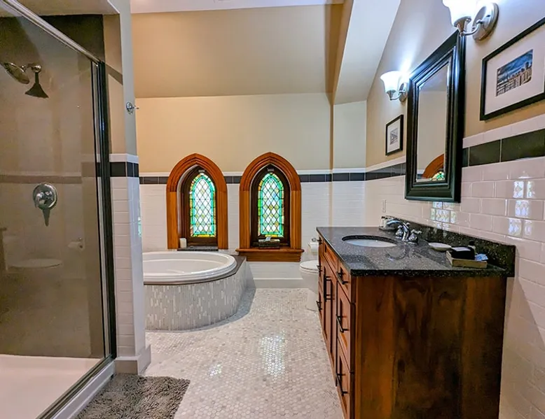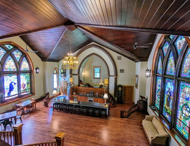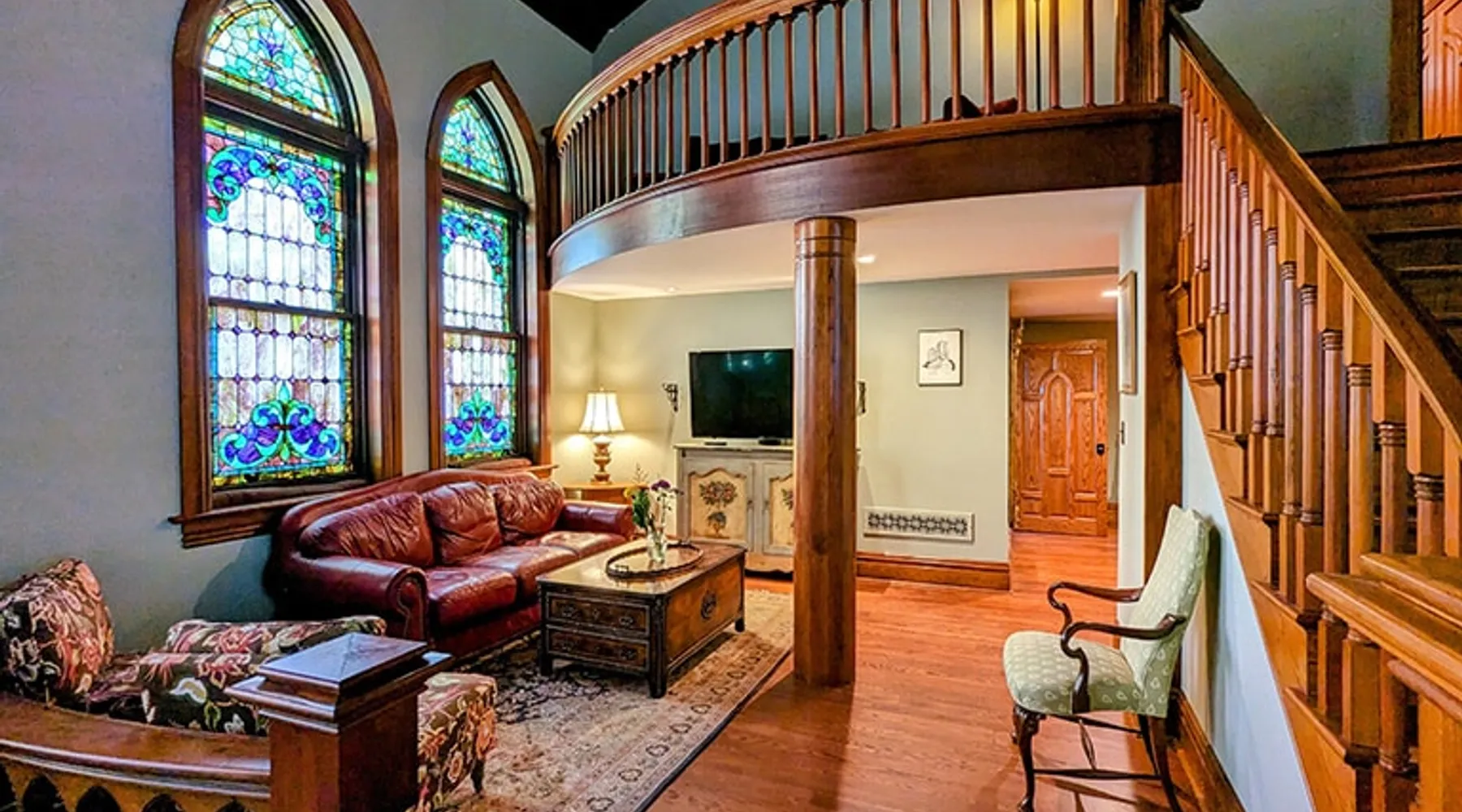 Discover refined elegance in The Riverfront Suite, where Gothic grandeur meets contemporary comfort. This distinctive retreat showcases original stained glass windows and exotic wood finishes . A plush queen bed and ambient electric fireplace create an intimate atmosphere, while the luxurious en-suite bathroom features heated floors, designer tile work, and a 2-person soaking tub. Take in panoramic city views from the shared rooftop hot tub. Perfect for couples seeking a romantic escape. The space Discover a Truly Divine Stay in St. Louis - A Historic Gothic-Style Church Transformed into Luxury Boutique Inn. Step into an architectural masterpiece where historical grandeur meets contemporary luxury. Our meticulously restored early 1900s Gothic-style church offers an extraordinary hospitality experience that goes beyond the ordinary. DISTINCTIVE FEATURES: • Breathtaking rooftop hot tub in the former bell tower, offering panoramic 360° views of St. Louis, including the iconic Gateway Arch, Forest Park, and the Central West End • Two monumental stained glass windows from 1905 grace the former gathering space, masterworks of artisanal craftsmanship featuring intricate details and vibrant colors that rank among St. Louis's finest examples of turn-of-the-century stained glass artistry. Throughout the building, original stained glass windows of varying sizes create an ever-changing dance of colored light, from intimate gothic windows in the suites to dramatic arched pieces in common areas, each telling its own part of the building's artistic legacy • Four luxurious guest rooms, each uniquely designed with romantic touches including ambient electric fireplaces that create a cozy glow. All rooms feature heated bathroom floors, rainfall showers, and indulgent soaking or jetted tubs, perfect for relaxation after exploring the city • Tranquil secret garden perfect for morning coffee or evening wine • Fully equipped shared kitchen featuring modern appliances, coffee station, and ample space for meal preparation • Multiple elegant common spaces throughout the building for relaxation and socializing • Convenient self check-in and dedicated host support throughout your stay • Free on-site parking PERFECT FOR: • Romantic getaways • Honeymoons and babymoons • Unique business travel accommodation • Special occasions and celebrations • Luxury staycations PRIME LOCATION: Nestled in safe, serene Clifton Heights, our location offers the perfect balance of peaceful seclusion and urban convenience. Just steps away: • 1-block walk to Clifton Park's serene pond and fountains • 0.3 miles to the Historic Hill neighborhood's renowned Italian restaurants • 1.5 miles to Forest Park attractions (St. Louis Zoo, Science Center, The Muni) • 2.0 miles to Historic Downtown Maplewood • 3.4 miles to Missouri Botanical Gardens • 3.5 miles to Washington University • 3.8 miles to The Cathedral Basilica & Central West End • 4 miles to The Pageant and Delmar Loop • 5 miles to The Fabulous Fox Theater • 6 miles to Busch Stadium Conveniently located with easy access to major highways, our inn is no more than 10 minutes from most of St. Louis’s top attractions. Whether you're seeking a peaceful retreat or planning to explore the city, our converted former Methodist church offers an unforgettable stay where historic charm blends seamlessly with modern comforts. Experience the magic of a space where every corner tells a story and every amenity has been thoughtfully curated to create an exceptional hospitality experience. Welcome to your sanctuary in the heart of St. Louis. Guest access You will have access to your private room with an en-suite bathroom as well as shared access to multiple living areas including: a shared kitchen, living and dining spaces, reading nooks, balcony, grand staircase, outdoor patio, secret garden, bell tower and roof-top hot tub. Other things to note The Riverfront Suite is one of four rooms in our boutique inn. Guests have access to shared spaces including the kitchen, dining area, former sanctuary, and rooftop hot tub. Per City of St. Louis regulations, a government-issued ID must be provided before check-in. Guests using the hot tub must complete a waiver and agreement. Security cameras with audio are installed at all exterior entrances. For guest safety, interior cameras are also present in shared areas including the check-in location of the kitchen & dining in the former sanctuary. Registration Details Exempt