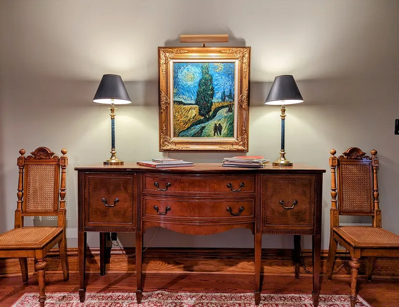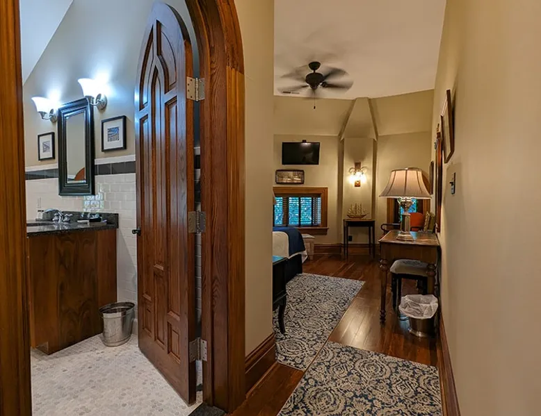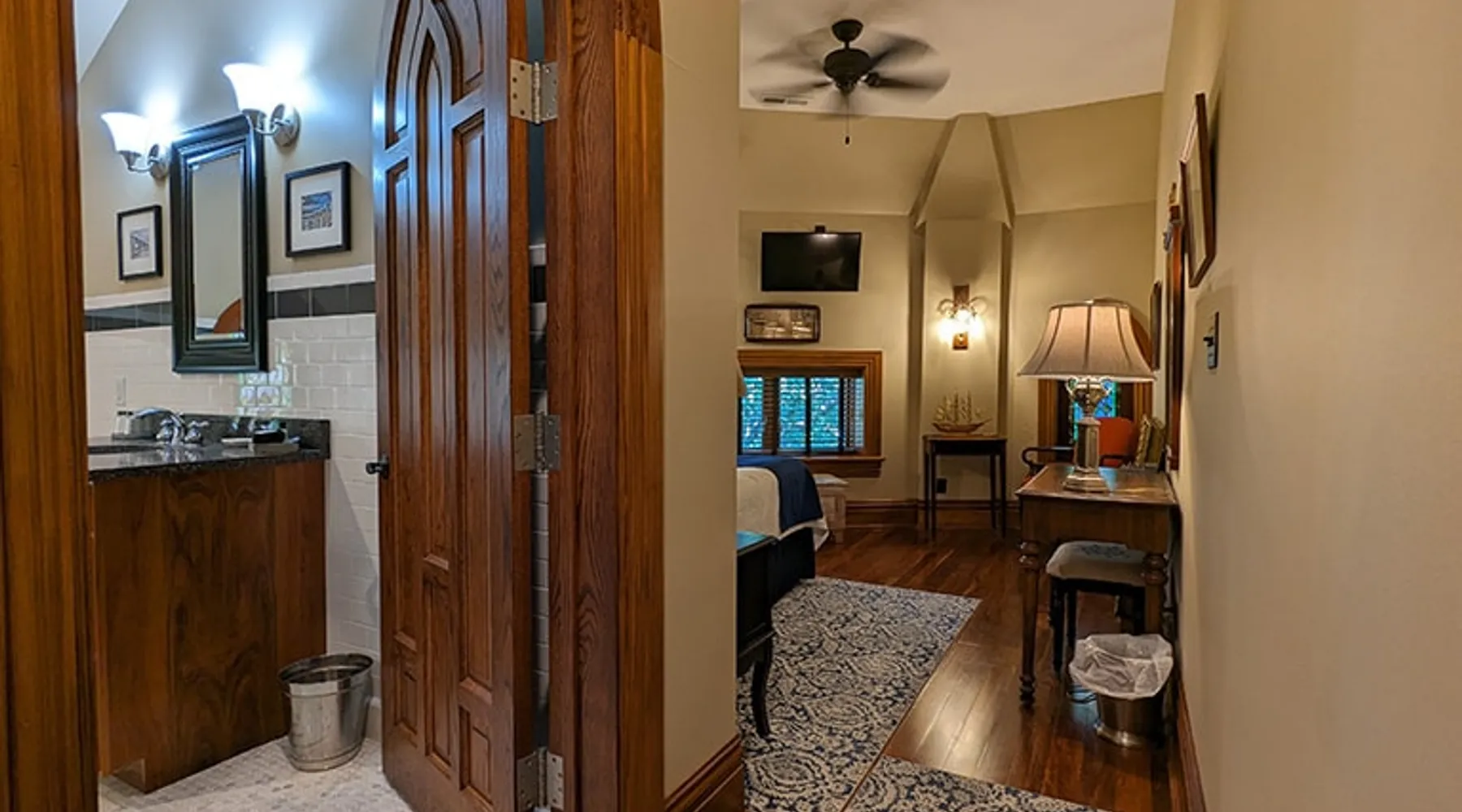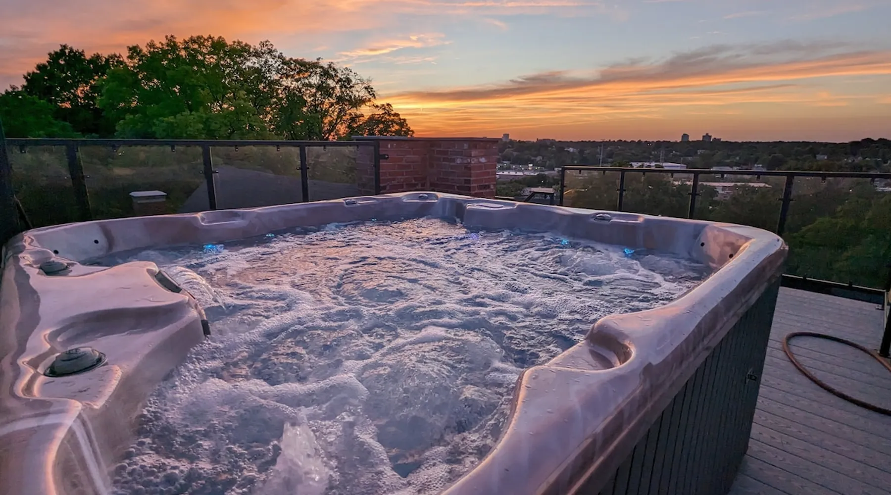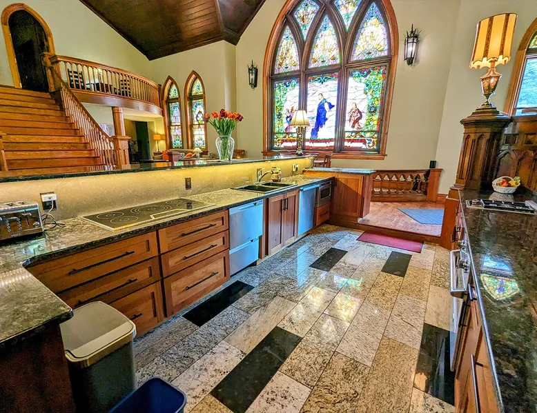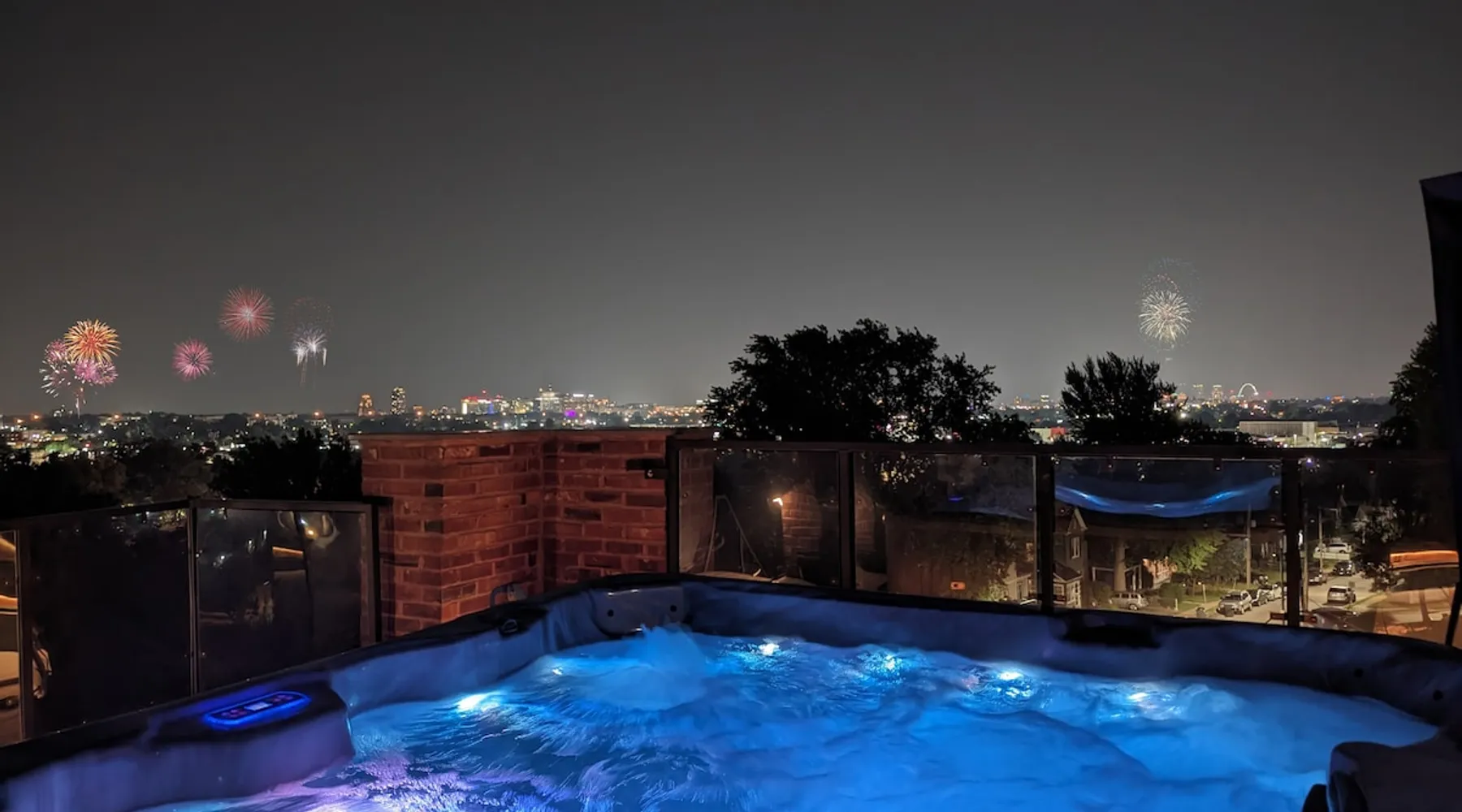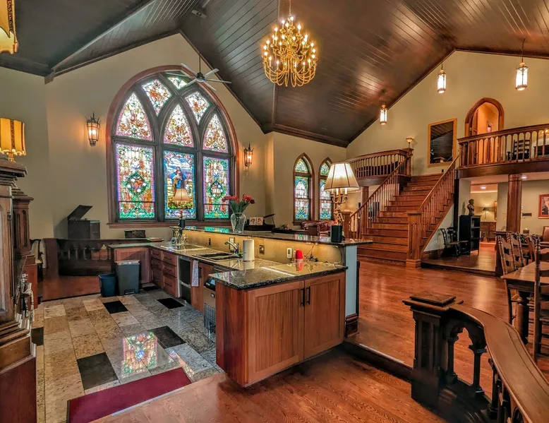 Discover refined elegance in The Riverfront Suite, where Gothic grandeur meets contemporary comfort. This distinctive retreat showcases original stained glass windows and exotic wood finishes . A plush queen bed and ambient electric fireplace create an intimate atmosphere, while the luxurious en-suite bathroom features heated floors, designer tile work, and a 2-person soaking tub. Take in panoramic city views from the shared rooftop hot tub. Perfect for couples seeking a romantic escape. The space Discover a Truly Divine Stay in St. Louis - A Historic Gothic-Style Church Transformed into Luxury Boutique Inn. Step into an architectural masterpiece where historical grandeur meets contemporary luxury. Our meticulously restored early 1900s Gothic-style church offers an extraordinary hospitality experience that goes beyond the ordinary. DISTINCTIVE FEATURES: • Breathtaking rooftop hot tub in the former bell tower, offering panoramic 360° views of St. Louis, including the iconic Gateway Arch, Forest Park, and the Central West End • Two monumental stained glass windows from 1905 grace the former gathering space, masterworks of artisanal craftsmanship featuring intricate details and vibrant colors that rank among St. Louis's finest examples of turn-of-the-century stained glass artistry. Throughout the building, original stained glass windows of varying sizes create an ever-changing dance of colored light, from intimate gothic windows in the suites to dramatic arched pieces in common areas, each telling its own part of the building's artistic legacy • Four luxurious guest rooms, each uniquely designed with romantic touches including ambient electric fireplaces that create a cozy glow. All rooms feature heated bathroom floors, rainfall showers, and indulgent soaking or jetted tubs, perfect for relaxation after exploring the city • Tranquil secret garden perfect for morning coffee or evening wine • Fully equipped shared kitchen featuring modern appliances, coffee station, and ample space for meal preparation • Multiple elegant common spaces throughout the building for relaxation and socializing • Convenient self check-in and dedicated host support throughout your stay • Free on-site parking PERFECT FOR: • Romantic getaways • Honeymoons and babymoons • Unique business travel accommodation • Special occasions and celebrations • Luxury staycations PRIME LOCATION: Nestled in safe, serene Clifton Heights, our location offers the perfect balance of peaceful seclusion and urban convenience. Just steps away: • 1-block walk to Clifton Park's serene pond and fountains • 0.3 miles to the Historic Hill neighborhood's renowned Italian restaurants • 1.5 miles to Forest Park attractions (St. Louis Zoo, Science Center, The Muni) • 2.0 miles to Historic Downtown Maplewood • 3.4 miles to Missouri Botanical Gardens • 3.5 miles to Washington University • 3.8 miles to The Cathedral Basilica & Central West End • 4 miles to The Pageant and Delmar Loop • 5 miles to The Fabulous Fox Theater • 6 miles to Busch Stadium Conveniently located with easy access to major highways, our inn is no more than 10 minutes from most of St. Louis’s top attractions. Whether you're seeking a peaceful retreat or planning to explore the city, our converted former Methodist church offers an unforgettable stay where historic charm blends seamlessly with modern comforts. Experience the magic of a space where every corner tells a story and every amenity has been thoughtfully curated to create an exceptional hospitality experience. Welcome to your sanctuary in the heart of St. Louis. Guest access You will have access to your private room with an en-suite bathroom as well as shared access to multiple living areas including: a shared kitchen, living and dining spaces, reading nooks, balcony, grand staircase, outdoor patio, secret garden, bell tower and roof-top hot tub. Other things to note The Riverfront Suite is one of four rooms in our boutique inn. Guests have access to shared spaces including the kitchen, dining area, former sanctuary, and rooftop hot tub. Per City of St. Louis regulations, a government-issued ID must be provided before check-in. Guests using the hot tub must complete a waiver and agreement. Security cameras with audio are installed at all exterior entrances. For guest safety, interior cameras are also present in shared areas including the check-in location of the kitchen & dining in the former sanctuary. Registration Details Exempt