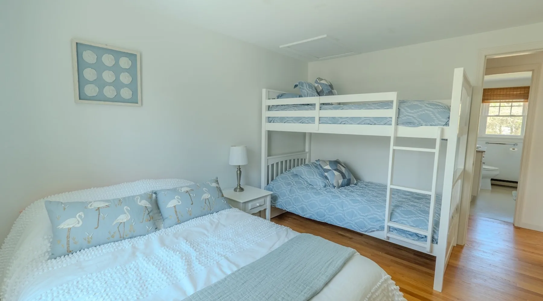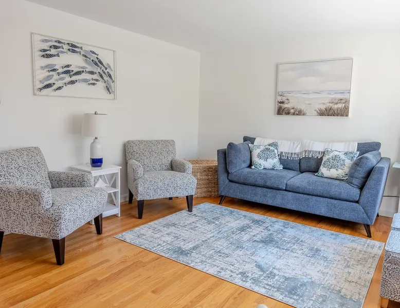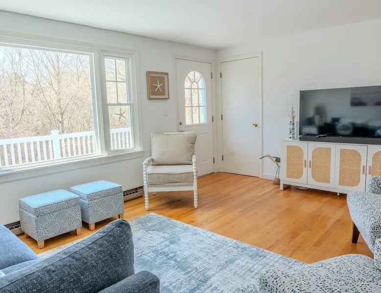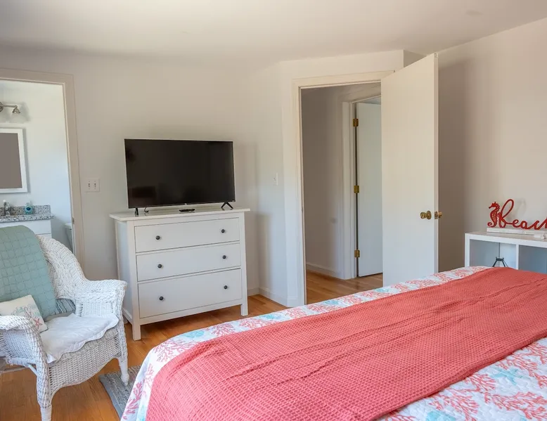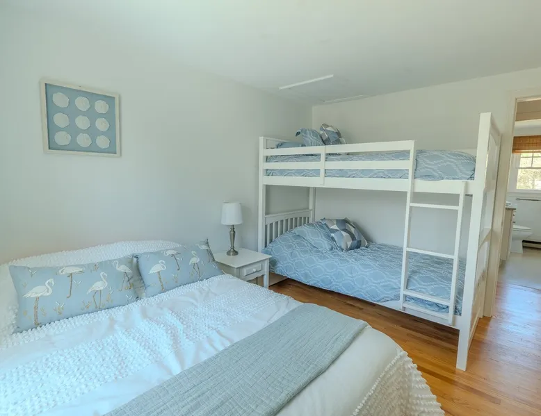 Visit “The Sand Pearl”- a beautiful beach house nestled about a mile away from Charlestown Beach with a salt water pond just a short walk away. Enjoy a summer getaway in this charming escape with nearby kayak rentals and boat launches, local seafood, coffee spots and ice cream shops. Just a short drive to Narragansett beaches, Newport and shopping at Watch Hill. This cottage is tucked away on a large private lot perfect for relaxing and entertaining. Plenty of room for two families to enjoy. The space Spacious three bedroom, 2 bath home. Sleeps 8-10! Bedroom 1/primary with on-suite: King Bed Foldable full size crib with mattress located in closet and available to guests if needed Bedroom 2: Queen bed and twin day bed with trundle Bedroom 3: Full bed and twin bunk bed Bed rails for small children available upon request. These are the inflatable ones and guests will be responsible for inflating before use. Other things to note Beach pass included! Parking in main lot. Registration details RE.05502-STR, expiry date: 2026-04-18T13:14:12Z