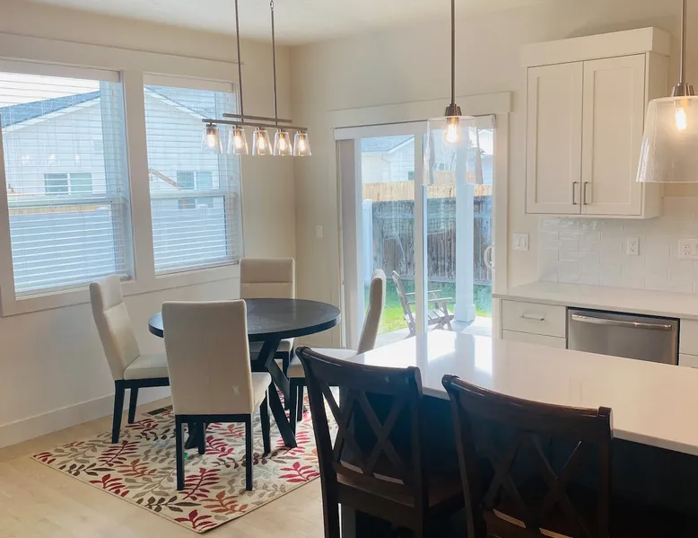 Experience the luxury of a spacious new home during your stay. Entire three bedroom, 2.5 bath, in-house washer and dryer. Keep your car out of the elements and in the two car garage. Private fenced backyard with a patio. A beautiful, clean and brand new bright home with lots of natural sunlight. Centrally located in between The Village (outdoor shopping mall, bowling, cinema) and the Boise Towne Square (indoor mall). Close to two coffee shops (Dutch Bros and Starbucks). Guest access Entire house for guests private use. Plus two car garage and backyard. Other things to note This house shares a driveway with another house. If you don’t park in garage, please park on the street so the driveway isn’t blocked. :)