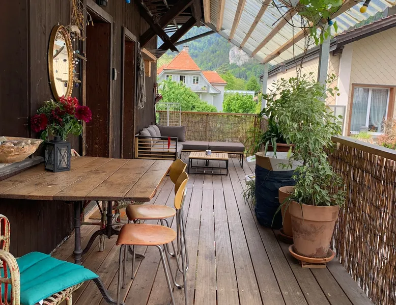 Welcome to Areal 58B, a modern and spacious loft apartment located just a 5–7 minute walk from Interlaken West train station—your gateway to the stunning Swiss Alps. Whether you're here for scenic train rides, adventurous mountain experiences, or peaceful lake views, this centrally located apartment puts everything within easy reach. 🛍️ Supermarkets, restaurants, and local shops are all within a short walking distance, and you’ll have free private parking for your convenience. The space This beautiful apartment is designed for comfort and relaxation—perfect for families or groups of friends. 🛏️ 2 spacious bedrooms with cozy bedding 🍽️ Fully equipped kitchen with everything you need to cook your favorite meals 🛋️ Comfortable living room with a sofa, dining table, TV & Wi-Fi 🛁 2 bathrooms, one with a shower and one with a bathtub—great for families 🌄 Two balconies offering mountain views in both east and west directions 🧺 Private washing machine inside the apartment 🍖 Outdoor BBQ area behind the building—ideal for spring and summer evenings Whether you're planning to relax or explore, this apartment gives you a cozy home base with all the amenities. Guest access A private washing machine is available for your convenience in the apartment. Behind the building, you’ll find an outdoor BBQ area—perfect for enjoying summer evenings. ✨ Extra Perks for Guests 🚘 We offer private guided car tours to exclusive destinations in the region. Perfect for travelers who want to experience Switzerland in comfort. 🪂 Paragliding and adventure activities can be arranged directly through us—ask for details upon booking! 💬 We’re Here for You We speak your language and are happy to help with trip planning, local tips, and personalized services. Just reach out—we’ll ensure your stay is both comfortable and unforgettable.