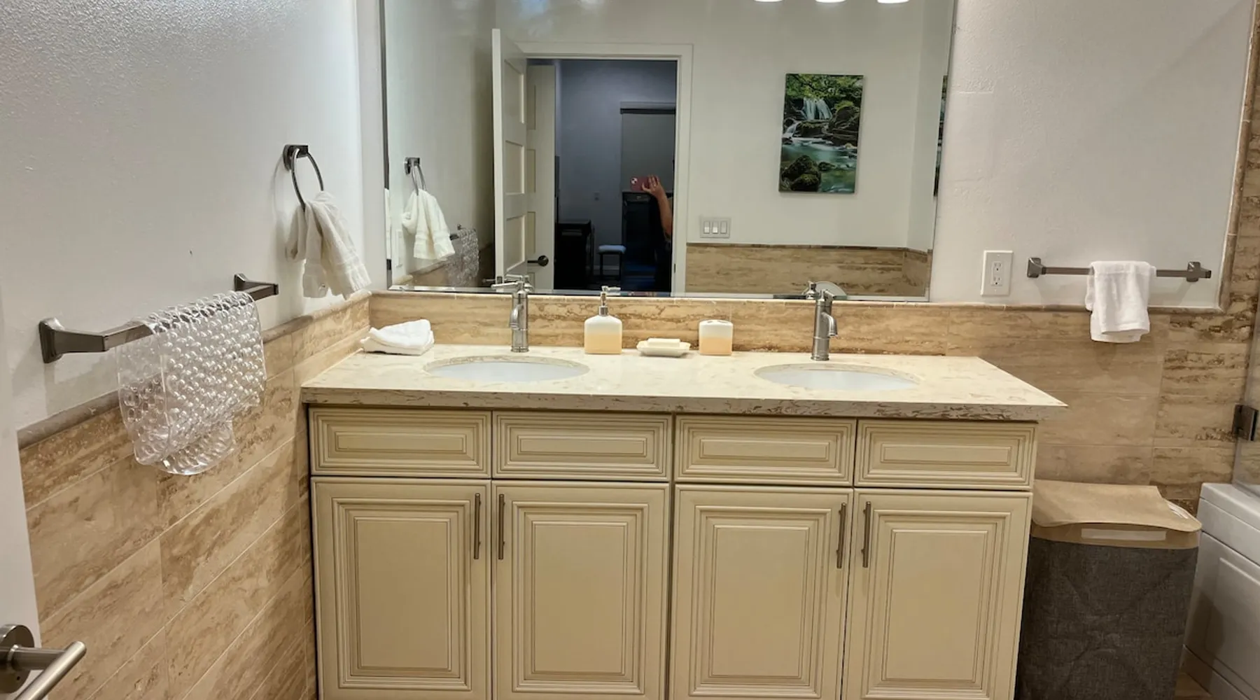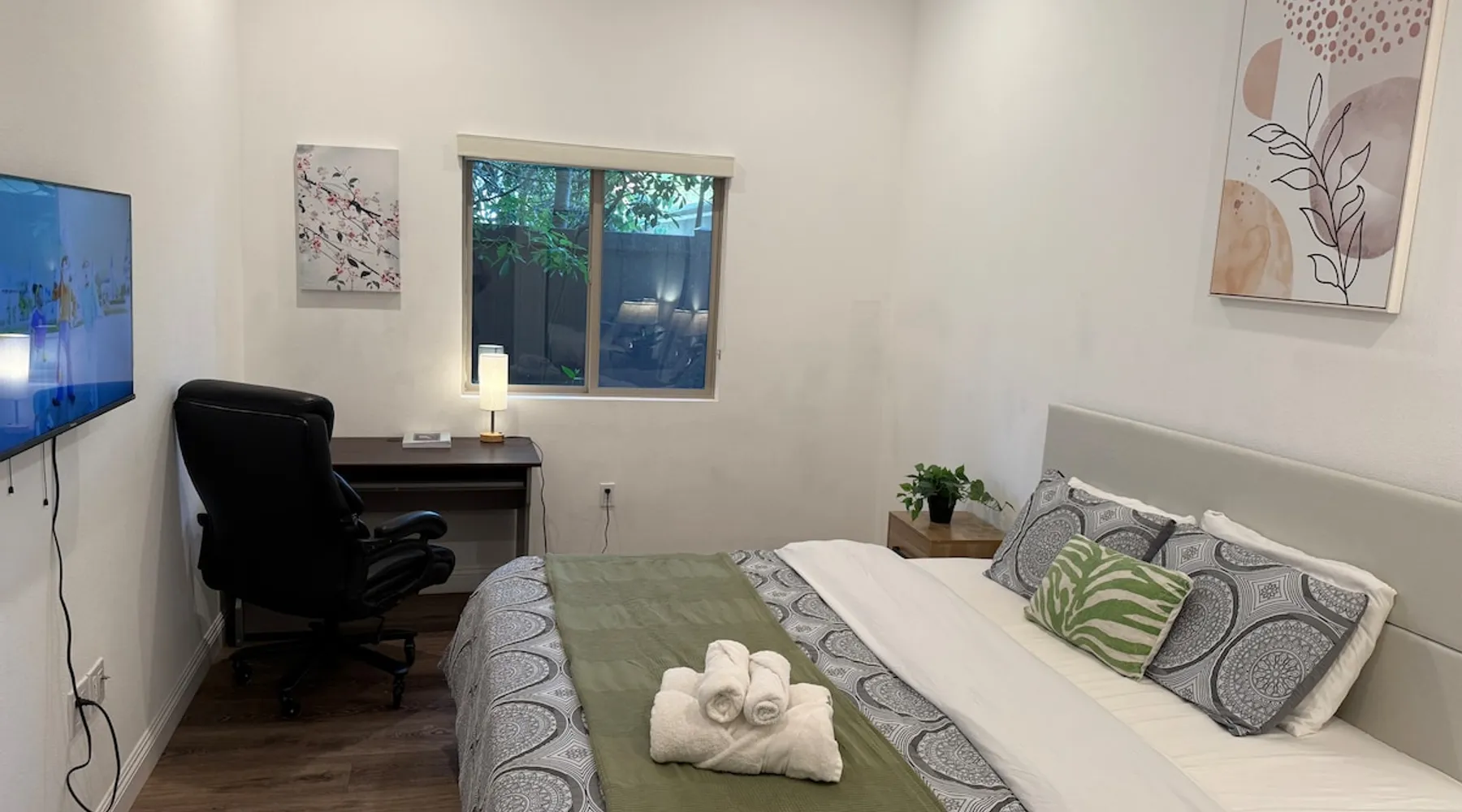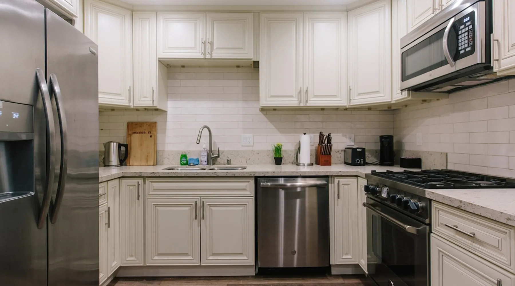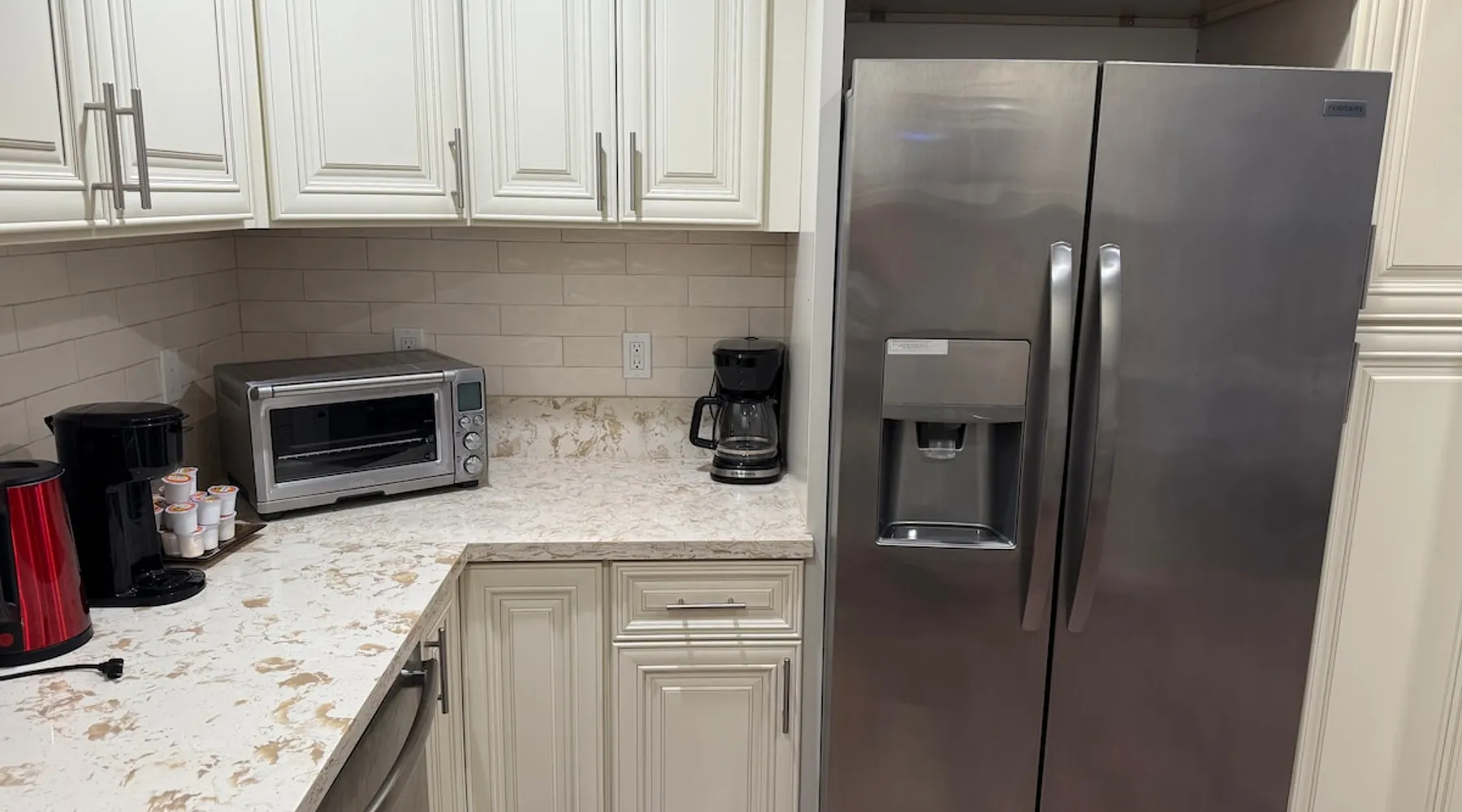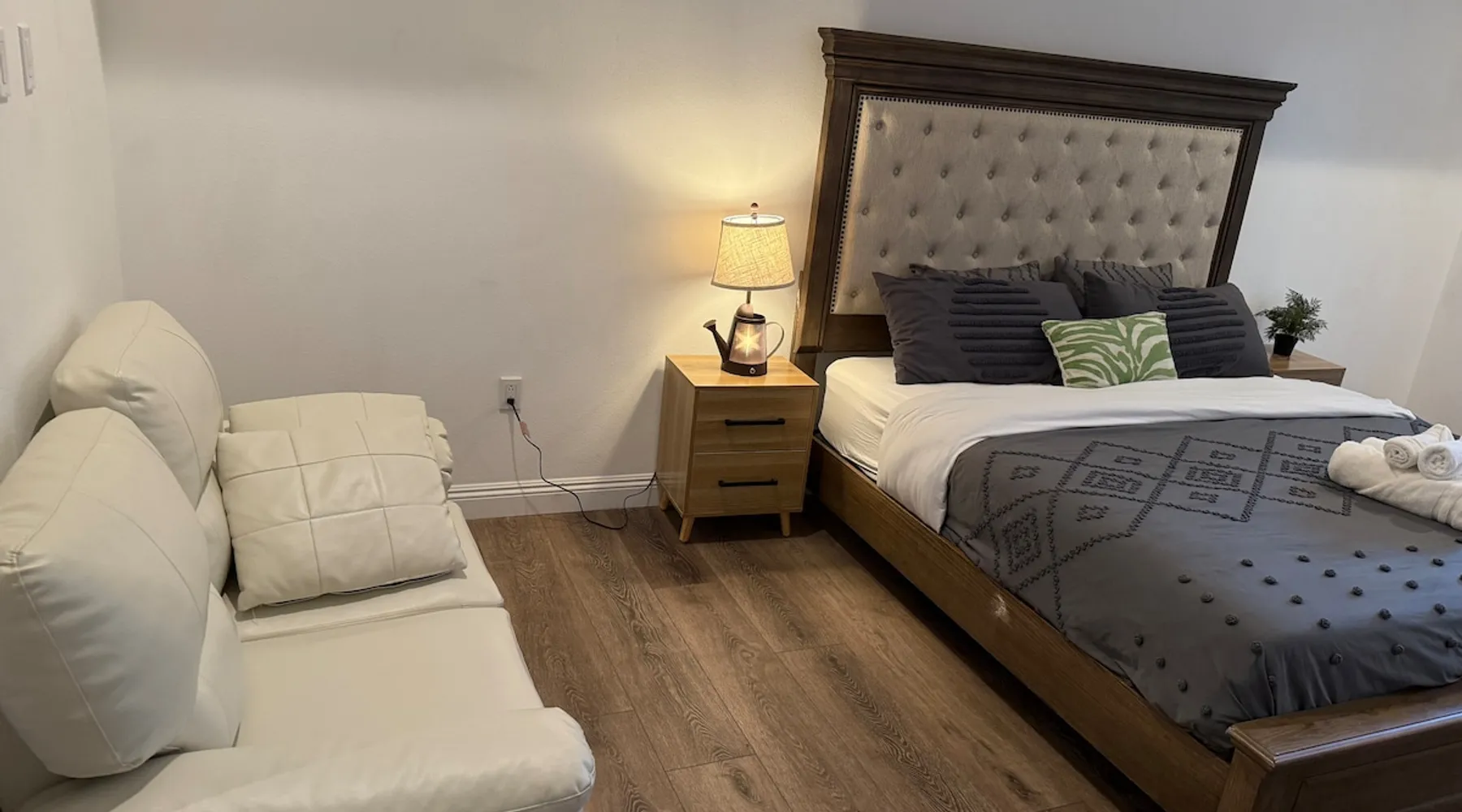 The 2B2B house has a king-size bed and a full-size bed in one bedroom, and two queen-size beds, a queen-size inflatable mattress, and a sofa bed in the other bedroom, which can accommodate up to 10 people!
