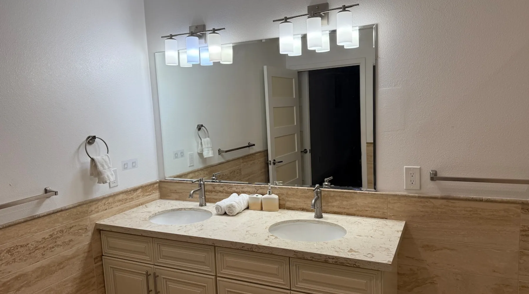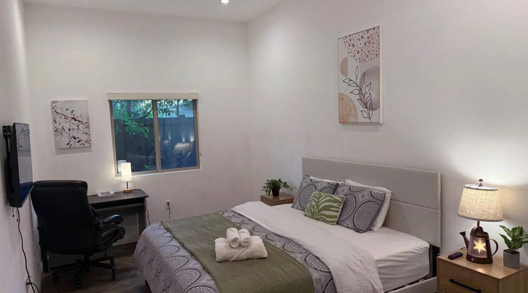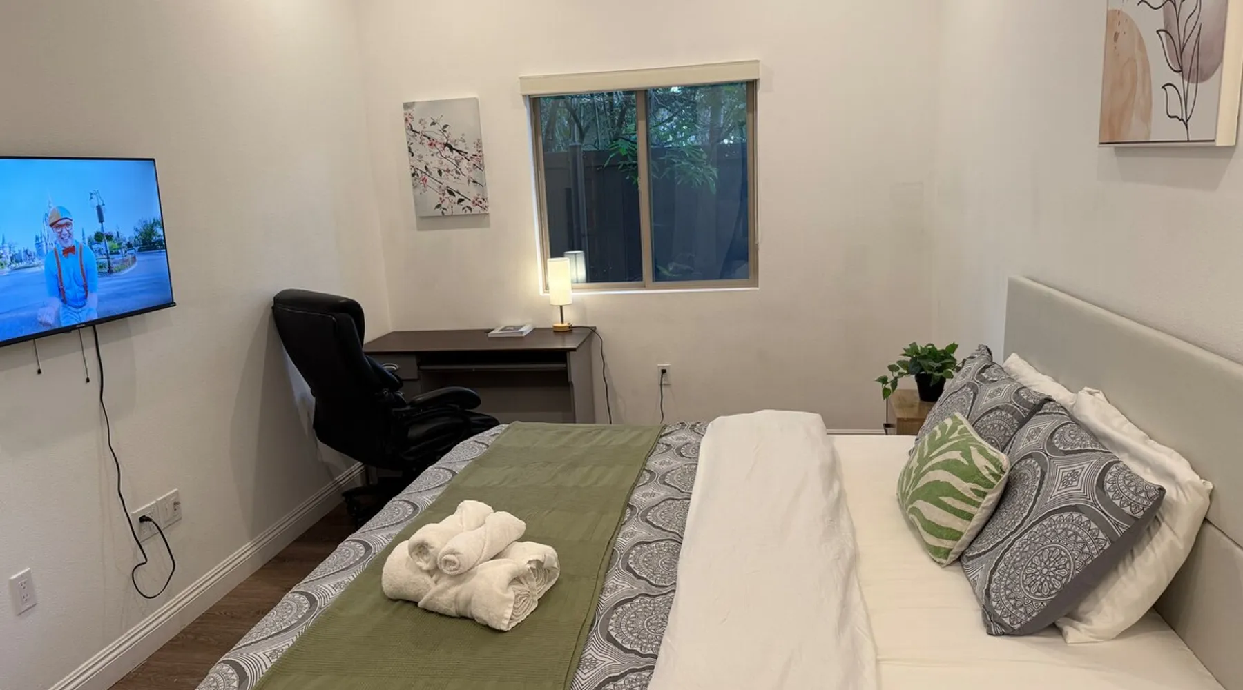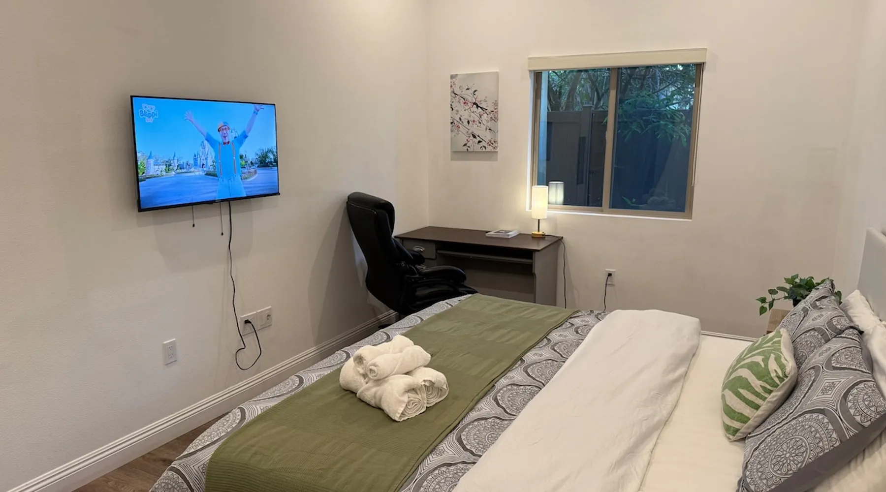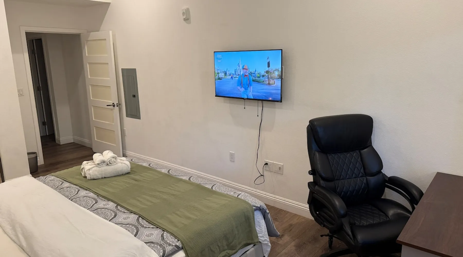 The 2B2B house has a king-size bed and a full-size bed in one bedroom, and two queen-size beds, a queen-size inflatable mattress, and a sofa bed in the other bedroom, which can accommodate up to 10 people!