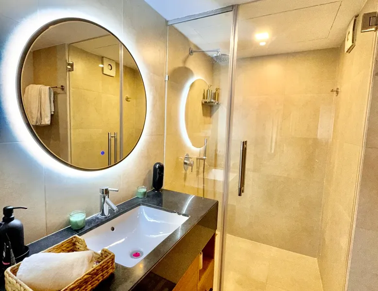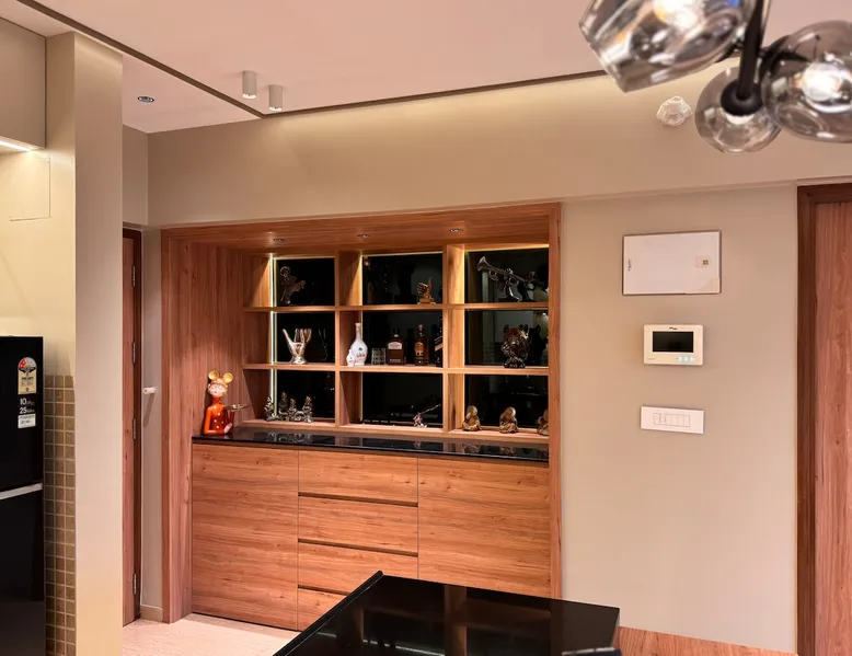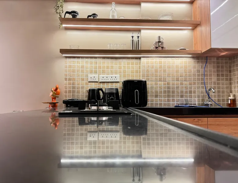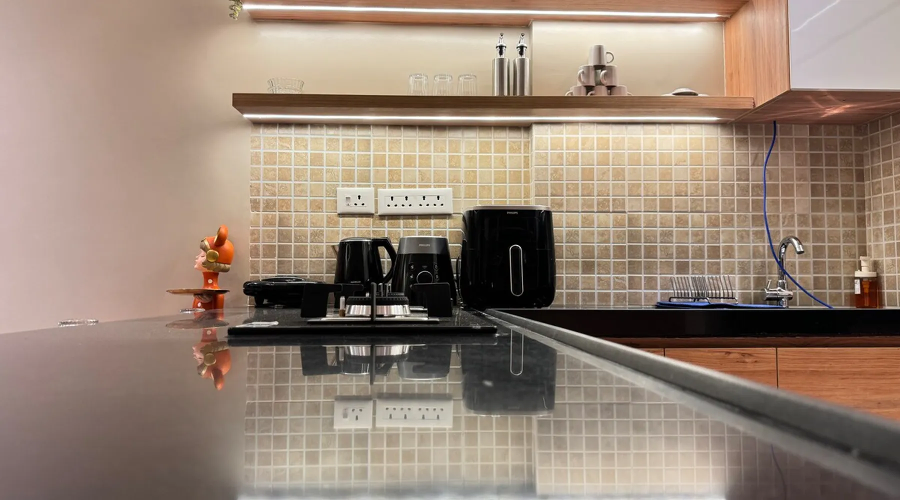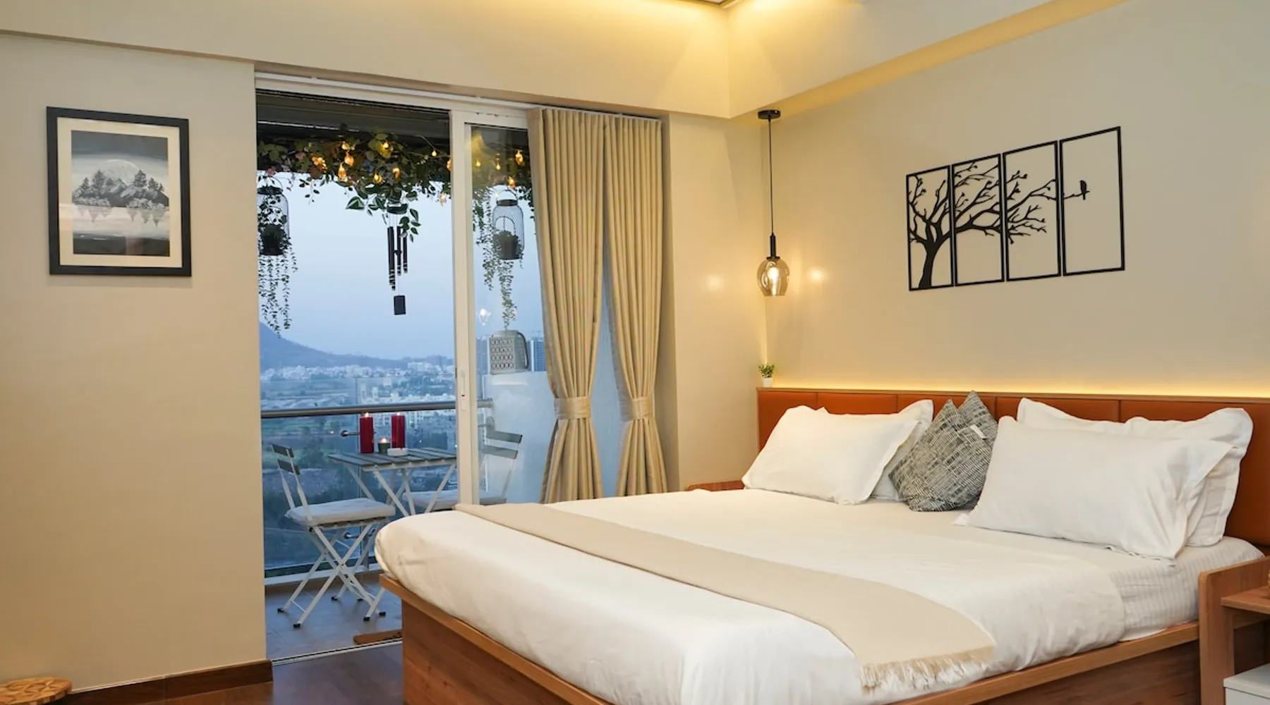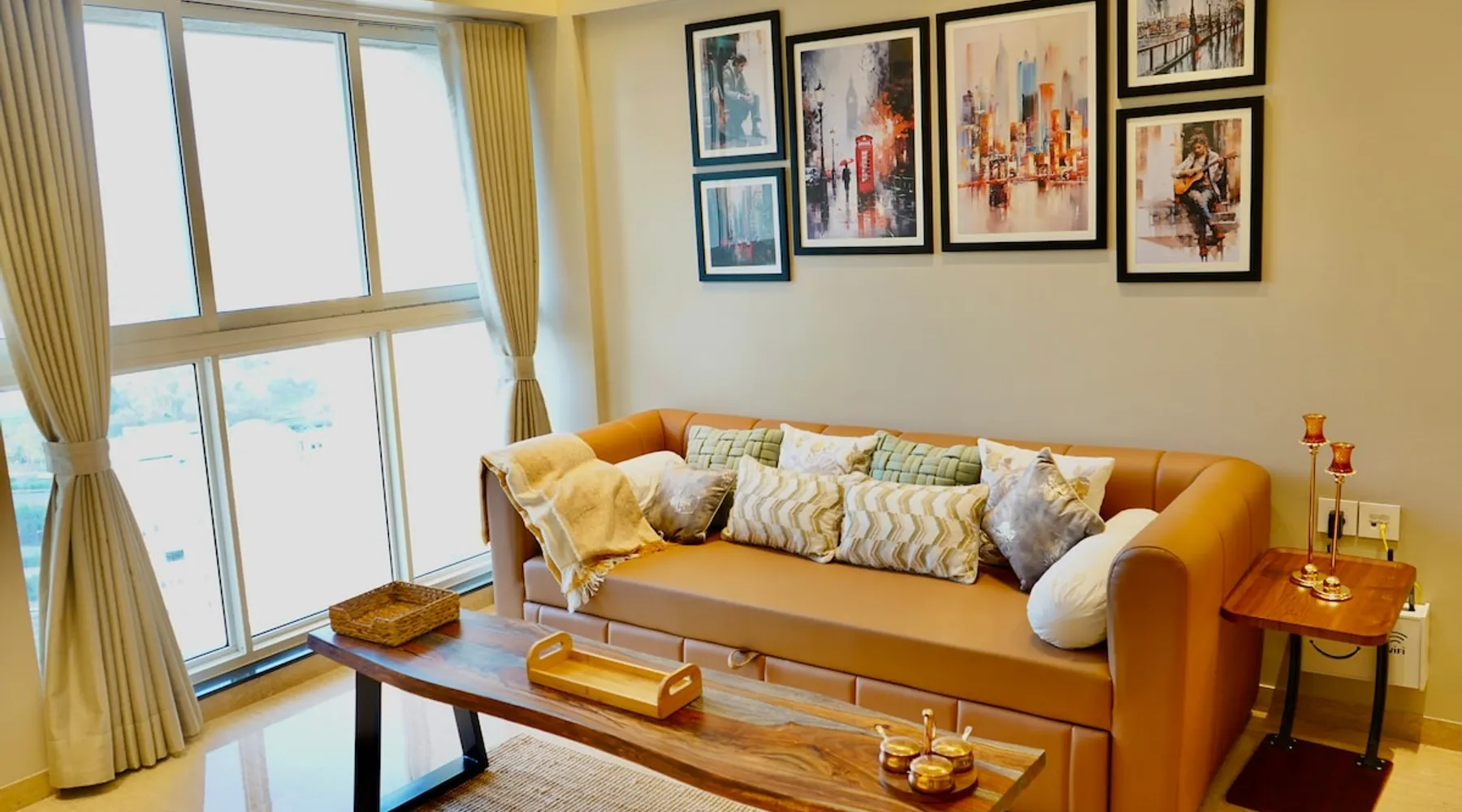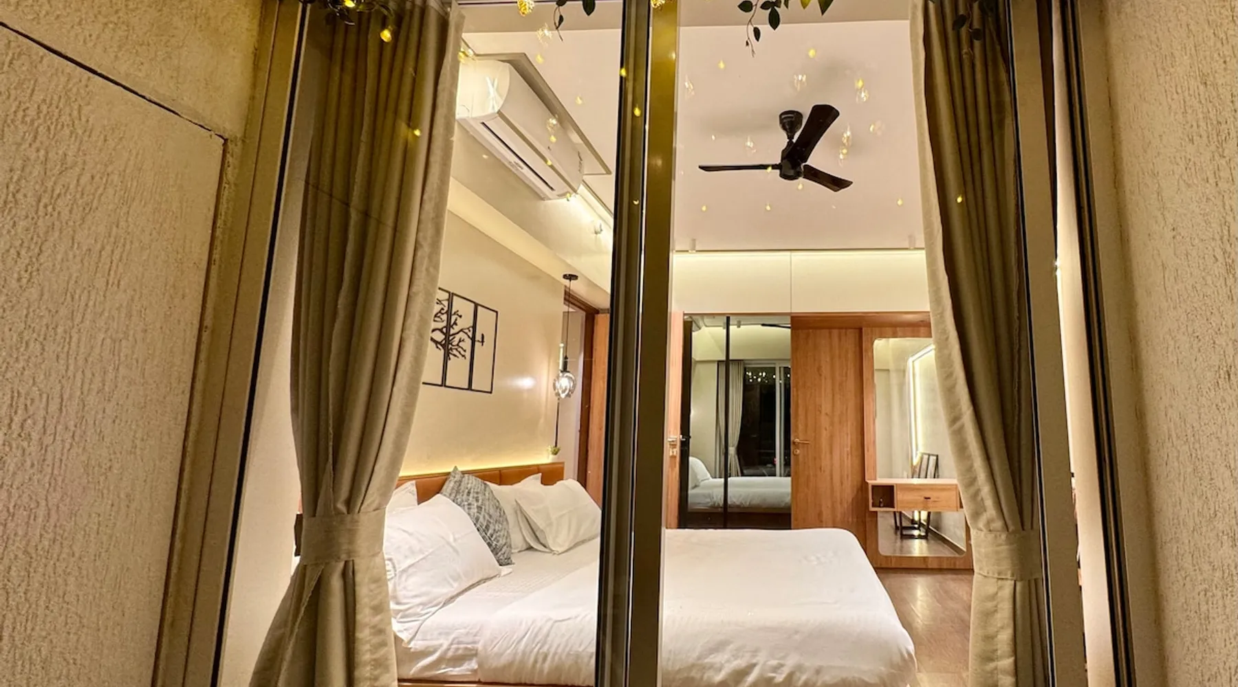 Step into a world of peace and serenity as you open doors to “The Manor” Nestled admist serene garden our charming studio apartment offers a perfect blend of modern comfort and rustic charm, providing you with a home away from home during your travel. We invite you to experience the luxury of stay with all modern facilities and cozy balcony adorned with seating, lush green plants & warmlights to savor the moment in absolute tranquility. Every detail is thoughtfully curated to enhance your stay! The space The studio is thoughtfully designed overlooking open skyline view, on the 20th floor with a serene balcony. At the foyer area inside, a sleek bar unit featuring a mirrored back panel to reflect the glimmering bottles of various liquors. Its design adds elegance, while wooden shelves showcase antique artifacts. LED lighting accents the display, casting a warm glow over the sophisticated setting. A spacious island serves as both a functional workspace and a stylish focal point, adorned with a cascading chandelier overhead , lead you to a luxury dining table set with fine dining and sparkling crystal glassware. A luxurious kitchen exudes opulence with its expansive marble countertops, complemented by rich, dark wood cabinetry and gold accents. State-of-the-art appliances seamlessly integrate into the design; provides all amenities you need to whip up a delicious meal, with modern appliances like microwave, fridge, toaster, sandwich maker, electric kettle,mixer grinder,air fryer, 2 burner auto ignition hob along with essential cookware & serveware. A spacious living room adorned with tasteful furnishings, featuring a large, plush tan sofa adorned with throw, pillows in rich tones, complemented by a cozy area rug beneath the centre table. Tall, arched windows allow natural light to illuminate the space, enhancing the warmth of the room. Adorning the walls are captivating paintings of people wondering, lost in different cities, story of love and longing in its own right, adding depth and character to the room. Sink into the embrace of our plush, king-sized bed, enveloped in crisp, high-thread-count linens that promise a restful night’s sleep. Soft, ambient lighting casts a warm glow across the room, accentuating the elegant decor. While a carefully curated balcony draws the eye and sparks conversation. Cozy seating invite relaxation, and a table in the center provides a perfect spot for gatherings or quiet moments of contemplation. Book your stay with us today and embark on an unforgettable journey filled with comfort, convenience, and unforgettable memories.” Guest access Guests will have exclusive access to the entire apartment along with access to OTT platforms - Netflix, PrimeVideo. Also Spa services can be availed at the discounted rates. Please check with the host for the same. The complex has well-maintained beautiful walking paths dotted with benches to take in the lush tranquil surroundings. The complex has a 9 hole golf course for which paid access is available. Golf kits and caddies are also available for hire. Beginners can avail of coaching with the in-house coach. The golf course is closed on Tuesdays and certain designated holidays. The clubhouse is functional from 8 a.m. to 10 p.m. on all days EXCEPT Tuesday and certain designated holidays. Entry to the clubhouse is chargeable @Rs.250 per person per day(8 am to 10 PM).Club passes are only issued to the apartment owners. Therefore, if you wish to use the clubhouse facilities you will need to inform our local host in advance. Below is a partial list of amenities at the clubhouse: • Swimming pools for adults and kids • Gym • Table tennis, pool table and other indoor games • Kids arena (up to 12 years) with rock climbing, Playstation, etc. • Steam, sauna, and jacuzzi • Tennis court and basketball court • 30 yard lush green T20 cricket ground • Playground for kids with slides, seesaw, etc. Guests can avail of the following additional facilities located in the clubhouse which are chargeable on actuals: • Salon and spa • All-day cafe serving vegetarian fare. • Multi-cuisine vegetarian restaurant serving lunch and dinner. Other things to note 1. Clubhouse facilities(Boating,gym,pool,kids play zone,horse riding) are chargeable per person per day and are not available on Tuesdays. 2. Swimming costume is a must to get into the pool. 3. We have many leading restaurants delivering food at the home via ZOMATO. 4. There are 3 to 4 tiffin services available, where homemakers are cooking food at their home and delivering at nominal costs. 5. BIG BASKET, JIO MART, DMART online apps are functional 6. OLA and UBER both are operational 7. Amazon considers this as PRIME location along side Flipkart. 8. WIFI has a superfast 50 MBPS speed and is dedicated for the guests. 9.Home is facing the Grand MCA stadium and the Mumbai Pune expressway. 10.Local shopping complex with salon, gym, grocery shops, vegetable vendors and supermarkets are available just outside building main gate. having said all of that, we have all modern day apps available for the perfect resort WFH staycation, weekend getaway or just to simply chill.