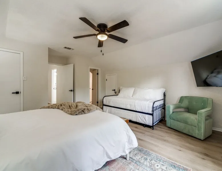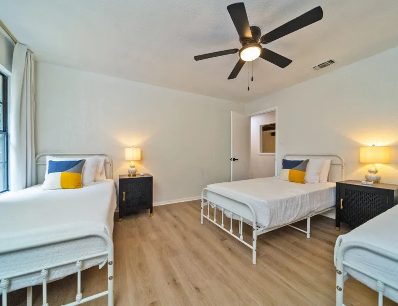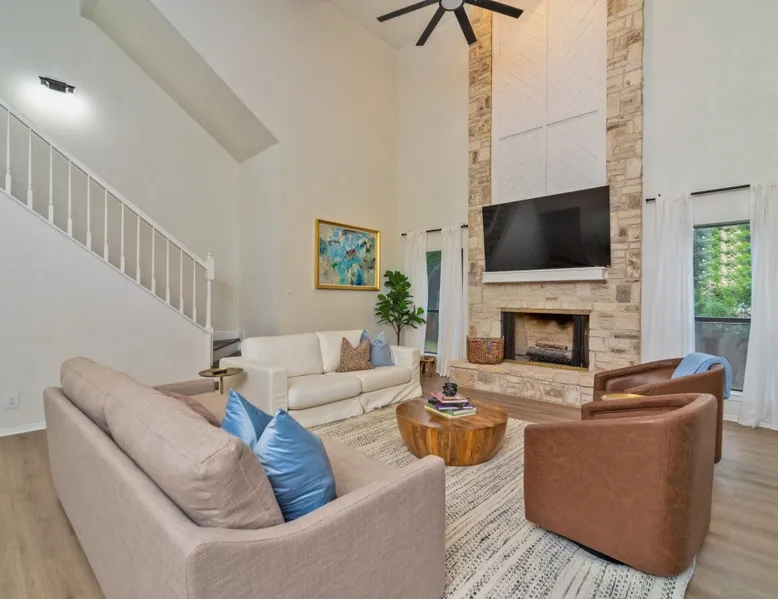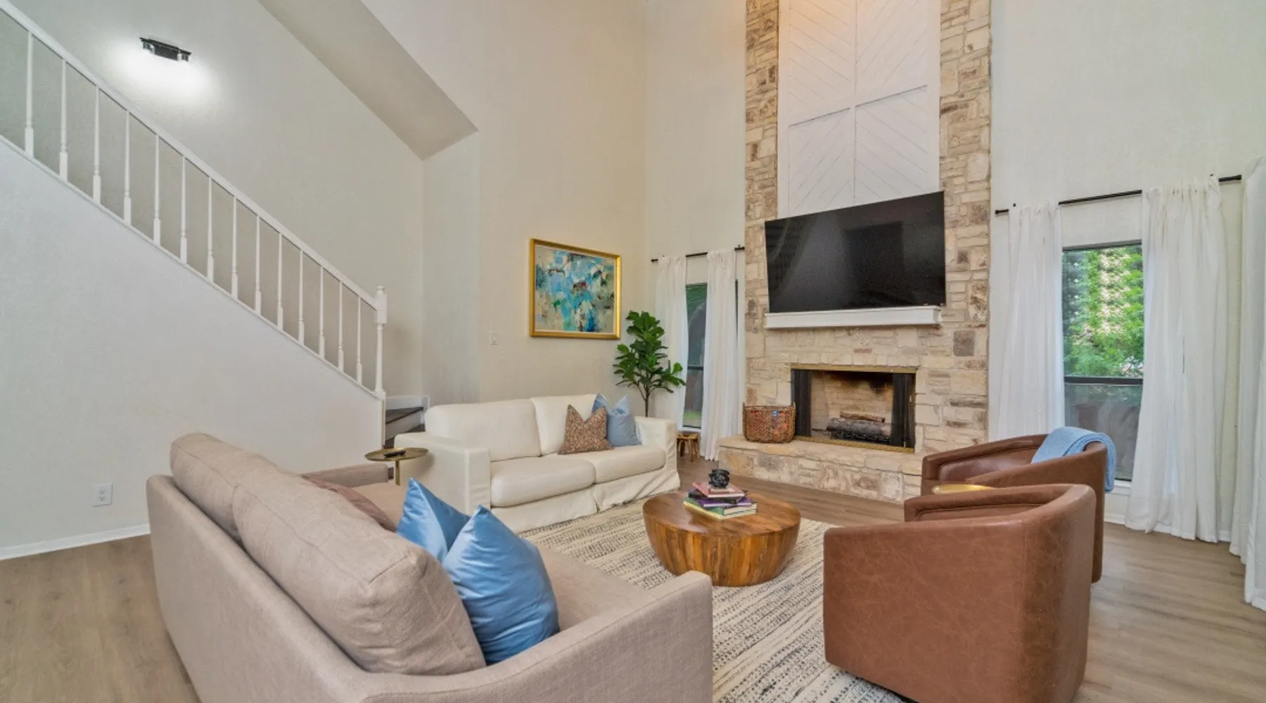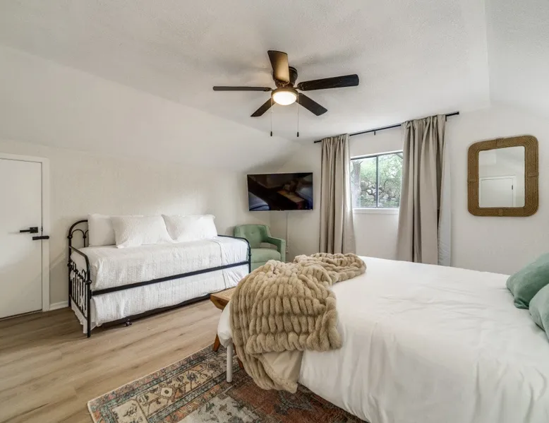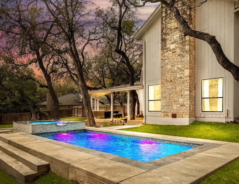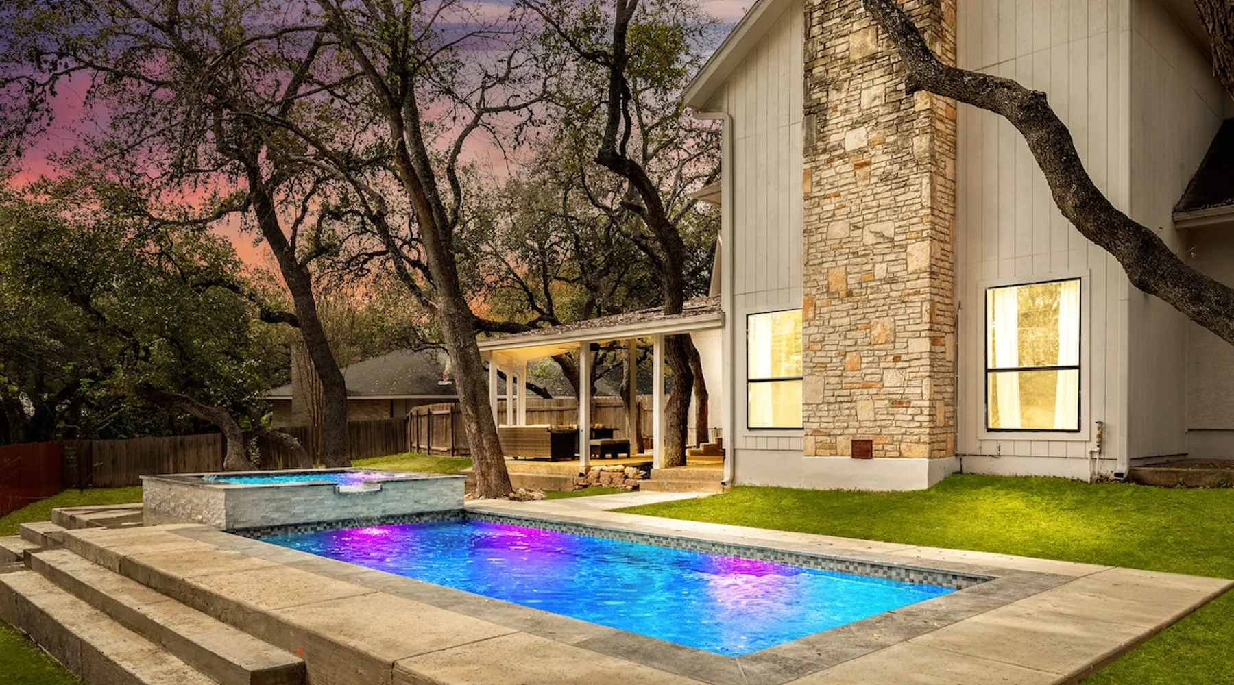 Welcome to our stylish home w/ a NEW heated pool and hot tub! Prepare delicious meals with ample dining seating and a fully loaded kitchen. The expansive poolside patio is an idyllic spot for morning coffee or BBQ. Book now for an exciting San Antonio adventure! Our home offers: - Heated pool w/ jacuzzi - Spacious open floor plan - Fully stocked kitchen - Fast WiFi - Many top spots <20 min- Riverwalk, Alamo & Pearl - Short drive- Ft. Sam, Parks, Zoo, family-friendly destinations. The space KEY FEATURES: ☀ Large *Heated Pool and Jacuzzi ☀ En suite bathroom with full size separate tub and rainfall shower ☀ Secluded and private fully fenced back yard ☀ Sleeps 14; 5 bedrooms, 1 king, 1 queen, 2 full, 6 twin ☀ 3 Bathrooms; 2 full and 2 half ☀ Open modern and well-equipped kitchen with seating for 10 guests and large island ☀ Formal dining room with more seating for 10 ☀ Great room with wet bar/coffee bar on the main floor with access to back yard and pool ☀ Fast Wifi Internet with smart HD TVs throughout the home ☀ Board games ☀ Dog-friendly ☀ Quiet neighborhood on secluded cul de sac ☆☆ BEDROOMS ☆☆ This gorgeous suburban hideaway accommodates 14 guests in 5 bedrooms plus an additional sleeping area on the great room couches. The primary bedroom is located on the bottom floor with its own sitting area and door leading to the pool and hot tub in our fully fenced and private back yard. Also on the main floor you'll find a bedroom with a queen bed and TV. On the second floor you'll find the 2nd of 2 living rooms along with 3 other bedrooms with a 2 queens and 3 twins total. In total, there are 9 beds in the home. Many guests tend to book with other families and enjoy the space and layout. ☆☆ BATHROOMS ☆☆ There are two full and two half bathrooms in the home, each of them stocked with all the essentials you need for the duration of your stay. One full and one half each are located on the 1st floor and second floor. ☆☆ KITCHEN, DINING, GREAT ROOM ☆☆ The bright and airy kitchen flows into the dining area and great room. It is fully equipped with all the appliances, utensils and cookware you need to feel at home in the giant space. This thoughtfully-designed home provides a separate complementary laundry area with room to wash and fold. Both the dining area and formal dining room seat 8 guests, so there's plenty of room for everyone, or make an adult and kid's table. ;-) The great room is situated on the main level of the home and is prepared with an HDTV allowing full access to your favorite streaming services. There's another access door to the patio and pool area too. The secondary living room on the second floor is also equipped with a large HDTV and a balcony. There is a wet bar with sink and glassware in the living room so you'll never be far from your next cold drink. ☆☆ OUTSIDE SPACE ☆☆ Step into our welcoming suburban sanctuary, where the fully fenced backyard calls you to relax by the sparkling, brand-new heated pool and Jacuzzi—perfect for unwinding and making memories. From the modern kitchen and great room, step out onto the back patio, a cozy spot for sharing meals and firing up the grill on pleasant evenings. Our property promises a warm and unforgettable getaway for all! **ABOUT OUR HEATED POOL** Our heated pool offers a delightful way to enjoy the water year-round! While it won’t reach hot-tub temperatures, the pool is consistently maintained about 15-20 degrees warmer than the outside air November to April/May. Our pool team comes to take care of the home on Thursday or Friday. On colder days (<65 degrees), our pool and spa may not reach set temperature as our electric pool heater relies on ambient air. Most heat pumps do not function when outside temperature is less than 55 degrees. We’re happy to provide this added comfort at no extra charge, so you can focus on enjoying your stay. Please note that pool temperatures will vary slightly based on weather conditions. *** ✅ This property follows local compliance standards and uses a simple, secure platform called Happy Guest to streamline the check-in process. You don’t need to download an app or create an account — it’s just a quick and secure website that gives you everything you need for a smooth arrival. You’ll also get access to your personalized guest portal, where you can find all the info about the home and some of our favorite local spots. The portal also offers optional upgrades to help you customize your stay: • Extra Guest – $50 • Late Checkout – $50 • Stock the Fridge – $100 ★☆ Book Today & Let Us Take Care Of You In San Antonio! ☆★ Guest access This is a dog-friendly home as long as your dog is 24+ months, well trained, and housebroken. The home is fitted with a smart door lock and free parking for up to 5 vehicles is available on the premises or free street parking. Easy Check-In Process🏡 It’s just like when you check in at a hotel and give your ID to the front desk, except our front desk is online! It's super easy to complete on your phone! We use a web-based system called Happy Guest, and you’ll receive a personalized rental agreement to sign in order to receive your arrival instructions. It’s simple: finish these steps, and you’re all set to enjoy your stay! Note: arrival info won’t be sent without completing these steps, and refunds aren’t possible if skipped. Your personalized guidebook will give you all the info about the home, our favorite local spots, automatic early check-in notifications, and sometimes even late checkout! You can even share it with friends and family! Got questions? Just message us anytime! Other things to note Unexpected circumstances happen - we HIGHLY recommend purchasing travelers insurance. **ABOUT OUR HEATED POOL** Our spa can be heated year round, however it is more difficult to heat during January and February's coldest temperatures. Thank you for understanding. While the pool won