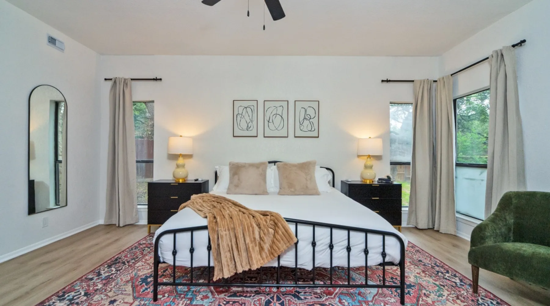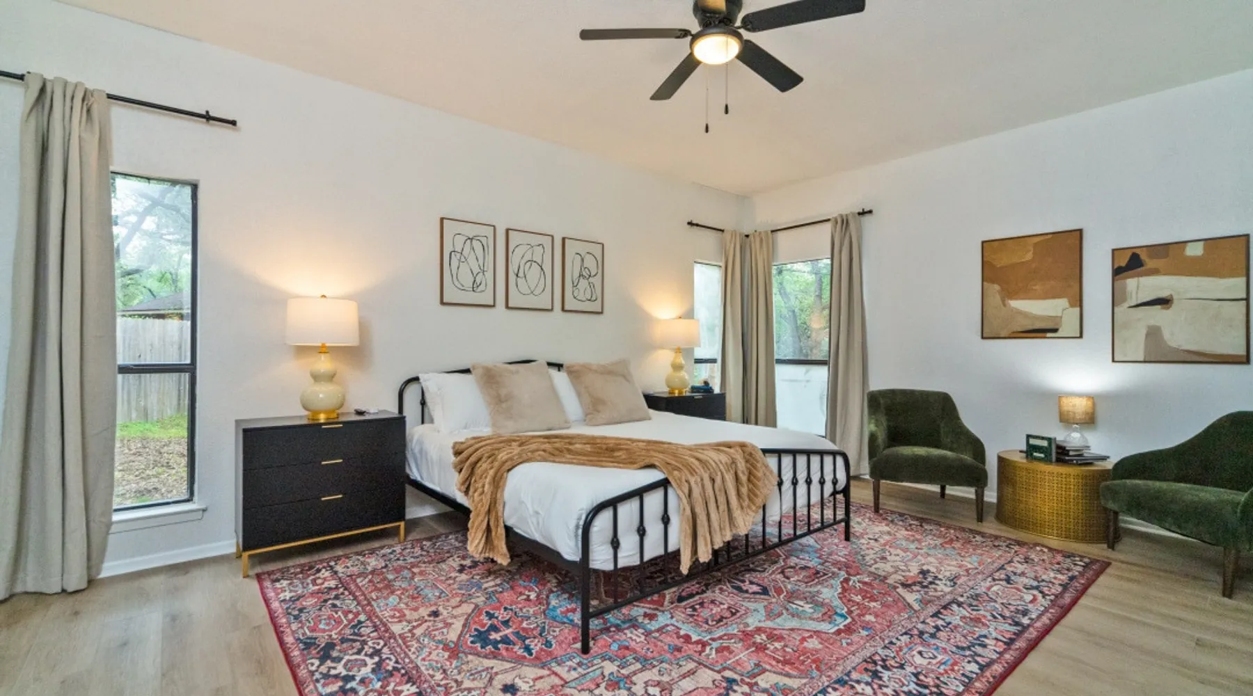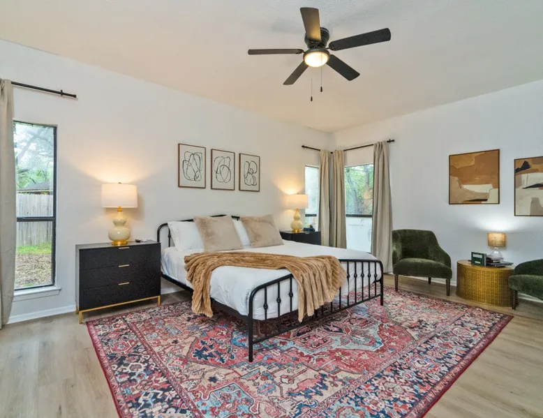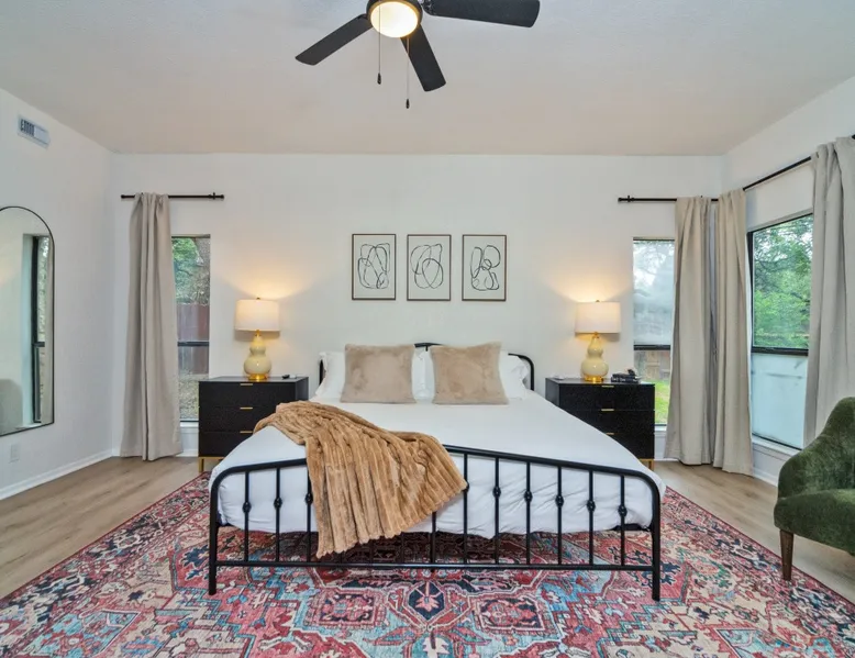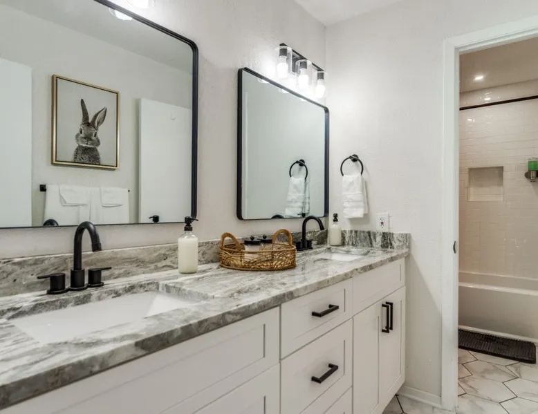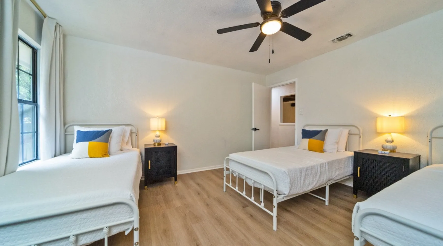 Welcome to our stylish home w/ a NEW heated pool and hot tub! Prepare delicious meals with ample dining seating and a fully loaded kitchen. The expansive poolside patio is an idyllic spot for morning coffee or BBQ. Book now for an exciting San Antonio adventure! Our home offers: - Heated pool w/ jacuzzi - Spacious open floor plan - Fully stocked kitchen - Fast WiFi - Many top spots <20 min- Riverwalk, Alamo & Pearl - Short drive- Ft. Sam, Parks, Zoo, family-friendly destinations. The space KEY FEATURES: ☀ Large *Heated Pool and Jacuzzi ☀ En suite bathroom with full size separate tub and rainfall shower ☀ Secluded and private fully fenced back yard ☀ Sleeps 14; 5 bedrooms, 1 king, 1 queen, 2 full, 6 twin ☀ 3 Bathrooms; 2 full and 2 half ☀ Open modern and well-equipped kitchen with seating for 10 guests and large island ☀ Formal dining room with more seating for 10 ☀ Great room with wet bar/coffee bar on the main floor with access to back yard and pool ☀ Fast Wifi Internet with smart HD TVs throughout the home ☀ Board games ☀ Dog-friendly ☀ Quiet neighborhood on secluded cul de sac ☆☆ BEDROOMS ☆☆ This gorgeous suburban hideaway accommodates 14 guests in 5 bedrooms plus an additional sleeping area on the great room couches. The primary bedroom is located on the bottom floor with its own sitting area and door leading to the pool and hot tub in our fully fenced and private back yard. Also on the main floor you'll find a bedroom with a queen bed and TV. On the second floor you'll find the 2nd of 2 living rooms along with 3 other bedrooms with a 2 queens and 3 twins total. In total, there are 9 beds in the home. Many guests tend to book with other families and enjoy the space and layout. ☆☆ BATHROOMS ☆☆ There are two full and two half bathrooms in the home, each of them stocked with all the essentials you need for the duration of your stay. One full and one half each are located on the 1st floor and second floor. ☆☆ KITCHEN, DINING, GREAT ROOM ☆☆ The bright and airy kitchen flows into the dining area and great room. It is fully equipped with all the appliances, utensils and cookware you need to feel at home in the giant space. This thoughtfully-designed home provides a separate complementary laundry area with room to wash and fold. Both the dining area and formal dining room seat 8 guests, so there's plenty of room for everyone, or make an adult and kid's table. ;-) The great room is situated on the main level of the home and is prepared with an HDTV allowing full access to your favorite streaming services. There's another access door to the patio and pool area too. The secondary living room on the second floor is also equipped with a large HDTV and a balcony. There is a wet bar with sink and glassware in the living room so you'll never be far from your next cold drink. ☆☆ OUTSIDE SPACE ☆☆ Step into our welcoming suburban sanctuary, where the fully fenced backyard calls you to relax by the sparkling, brand-new heated pool and Jacuzzi—perfect for unwinding and making memories. From the modern kitchen and great room, step out onto the back patio, a cozy spot for sharing meals and firing up the grill on pleasant evenings. Our property promises a warm and unforgettable getaway for all! **ABOUT OUR HEATED POOL** Our heated pool offers a delightful way to enjoy the water year-round! While it won’t reach hot-tub temperatures, the pool is consistently maintained about 15-20 degrees warmer than the outside air November to April/May. Our pool team comes to take care of the home on Thursday or Friday. On colder days (<65 degrees), our pool and spa may not reach set temperature as our electric pool heater relies on ambient air. Most heat pumps do not function when outside temperature is less than 55 degrees. We’re happy to provide this added comfort at no extra charge, so you can focus on enjoying your stay. Please note that pool temperatures will vary slightly based on weather conditions. *** ✅ This property follows local compliance standards and uses a simple, secure platform called Happy Guest to streamline the check-in process. You don’t need to download an app or create an account — it’s just a quick and secure website that gives you everything you need for a smooth arrival. You’ll also get access to your personalized guest portal, where you can find all the info about the home and some of our favorite local spots. The portal also offers optional upgrades to help you customize your stay: • Extra Guest – $50 • Late Checkout – $50 • Stock the Fridge – $100 ★☆ Book Today & Let Us Take Care Of You In San Antonio! ☆★ Guest access This is a dog-friendly home as long as your dog is 24+ months, well trained, and housebroken. The home is fitted with a smart door lock and free parking for up to 5 vehicles is available on the premises or free street parking. Easy Check-In Process🏡 It’s just like when you check in at a hotel and give your ID to the front desk, except our front desk is online! It's super easy to complete on your phone! We use a web-based system called Happy Guest, and you’ll receive a personalized rental agreement to sign in order to receive your arrival instructions. It’s simple: finish these steps, and you’re all set to enjoy your stay! Note: arrival info won’t be sent without completing these steps, and refunds aren’t possible if skipped. Your personalized guidebook will give you all the info about the home, our favorite local spots, automatic early check-in notifications, and sometimes even late checkout! You can even share it with friends and family! Got questions? Just message us anytime! Other things to note Unexpected circumstances happen - we HIGHLY recommend purchasing travelers insurance. **ABOUT OUR HEATED POOL** Our spa can be heated year round, however it is more difficult to heat during January and February's coldest temperatures. Thank you for understanding. While the pool won