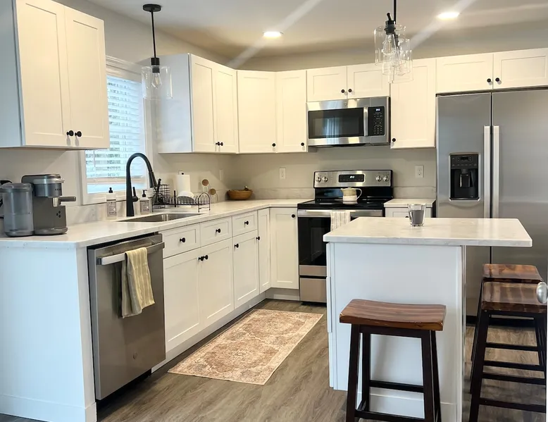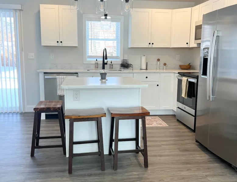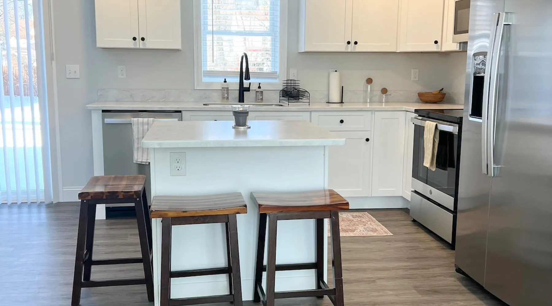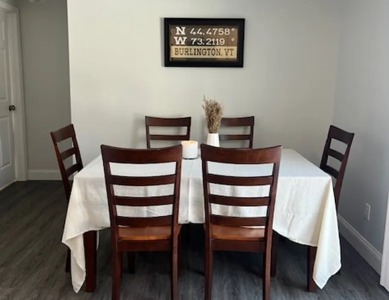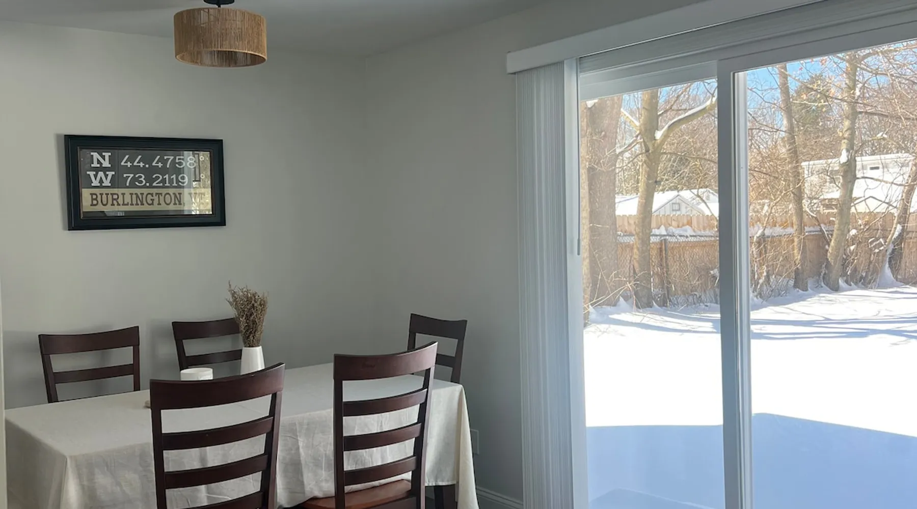 Welcome to your ideal Vermont getaway! Situated in a quiet neighborhood in the New North End of Burlington this beautiful home was recently renovated from the ground up and offers a comfortable, stylish, & spacious place to stay while enjoying everything VT has to offer. It is centrally located and is 1 block away from the bike path/Lake Champlain as well as minutes away from downtown, breweries, restaurants, shops, ect. The only thing this home is missing is the memories that will be made here! The space There are no details spared in this tasteful home as it has been completely remodeled featuring a new open floor plan, a second story addition, and new large windows that flood every room with natural light. It is furnished with comfort in mind and styled with a minimalist, clean approach. Overall, this home is tidy, in a family friendly neighborhood, conveniently located, and makes for a perfect getaway for families and/or friends! And for the warmer months - there is a big backyard to enjoy the beautiful summer nights. SURROUNDING AREA - Less then a mile from the house - you can find a local shopping plaza that has a coffee & bagel shop, grocery store, liquor store, and a few restaurants. There is also a popular vegan restaurant within a 5 minute walk. Downtown Burlington is 3 miles away and with the bike path being 1 block away, you have easy access to bike, rollerblade, ect. to the Burlington waterfront or Colchester causeway where you will find breathtaking views of Lake Champlain and the mountains. There is also multiple beaches close by (North Beach & Leddy Beach) and the green mountains are around a 30 minute drive away (depending on the mountain you are visiting). We are so delighted to share our space and are here if you have any questions at all! PROPERTY - 1st floor features: Mudroom with ample space to store winter gear Living room with tall ceilings and a sectional Full kitchen with brand new stainless steel appliances (fridge, stove, oven, microwave, and dish washer) plus everything you need to cook a homemade meal including dinnerware, glassware, cookware, bakeware, utensils, and more Half Bathroom Dining room Master Suite including a large ensuite bathroom with a double sink vanity, tub/shower, and a walk in closest with plenty of space to unpack and settle in 2nd floor features: Bedroom #2 with queen bed, a large closet, and office space Bedroom #3 with trundle bed including a queen bed and a full bed, baby crib, and a large closet Full bathroom upstairs with tub/shower Other amenities: High speed WiFi Washer & Dryer TV in living room and master suite with fire TV sticks connected for streaming Plenty of board games Driveway can fit 2 cars and there is street parking Professionally cleaned with care
