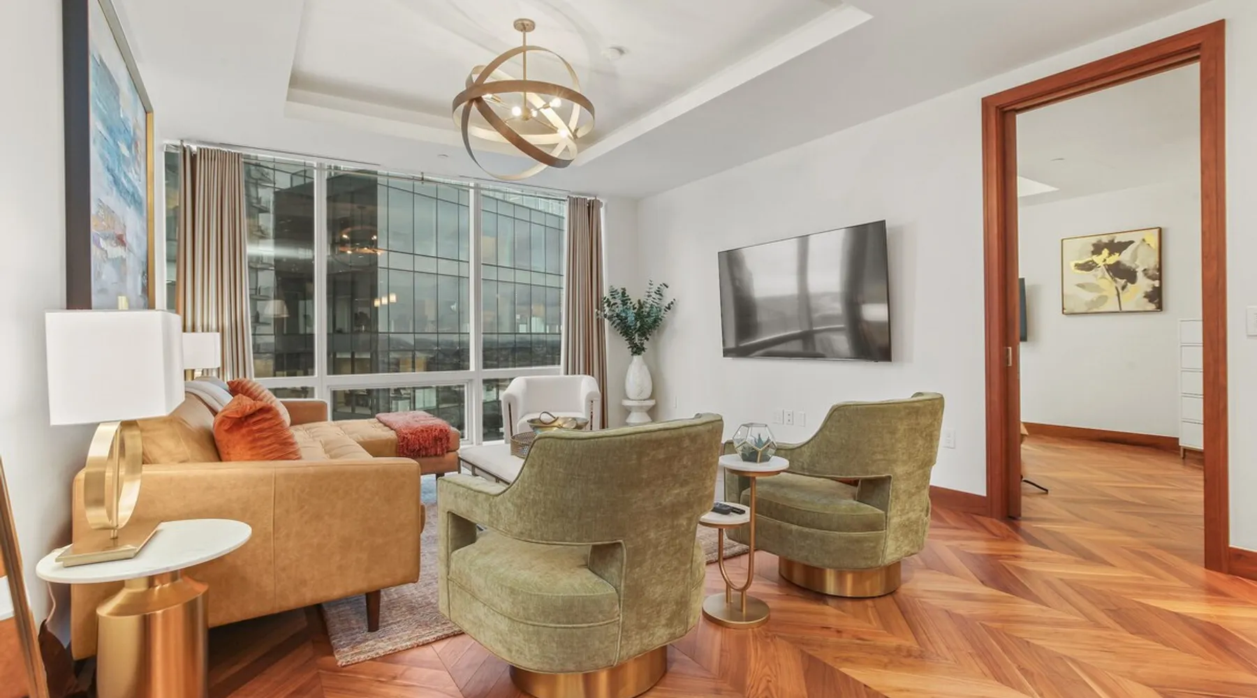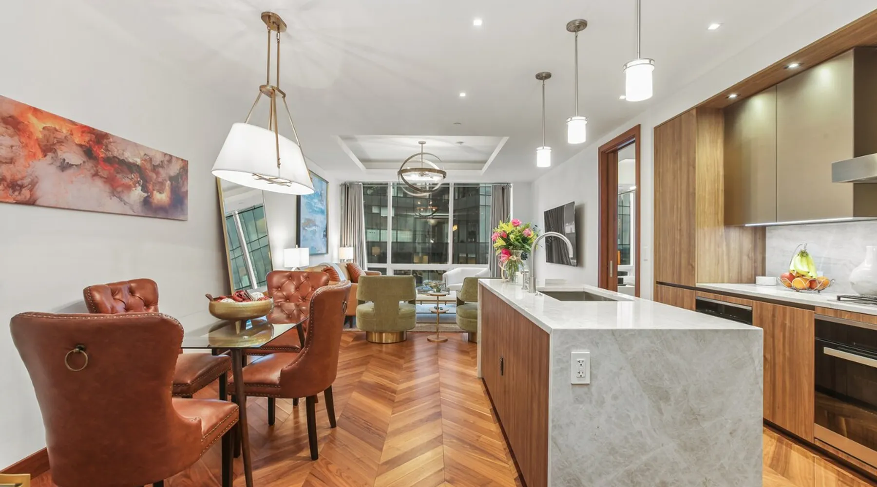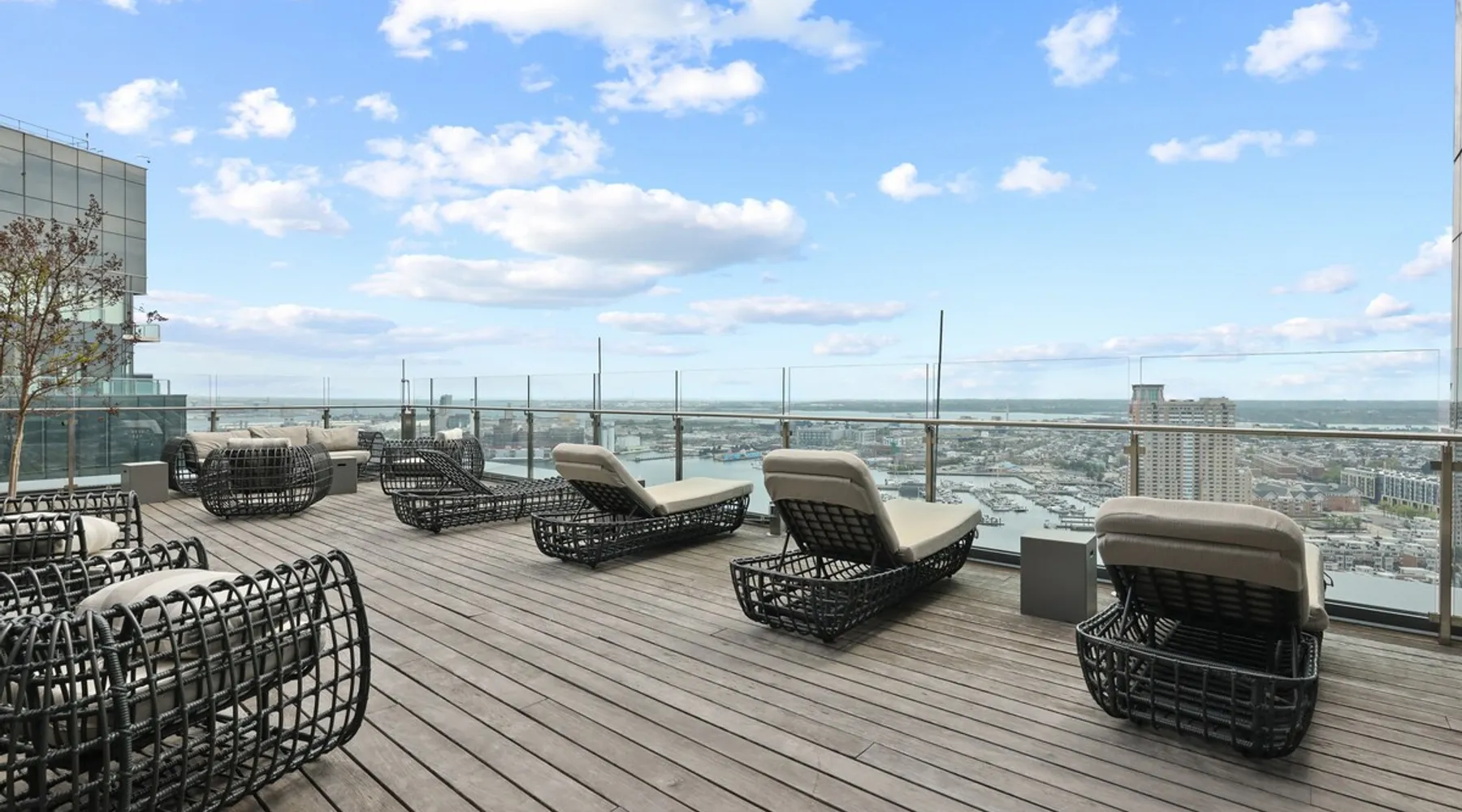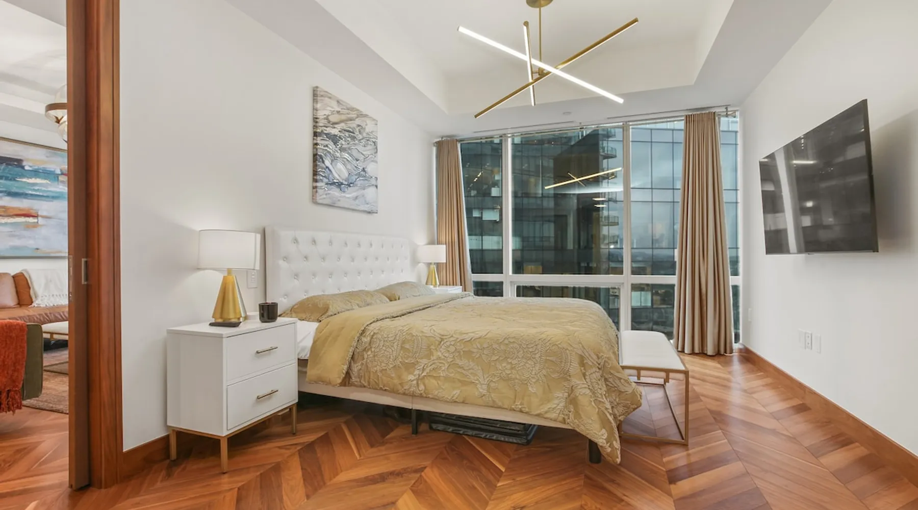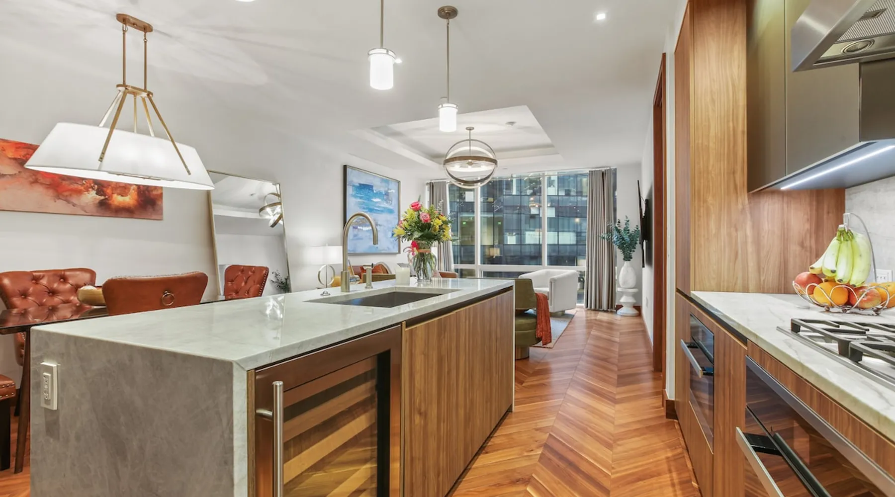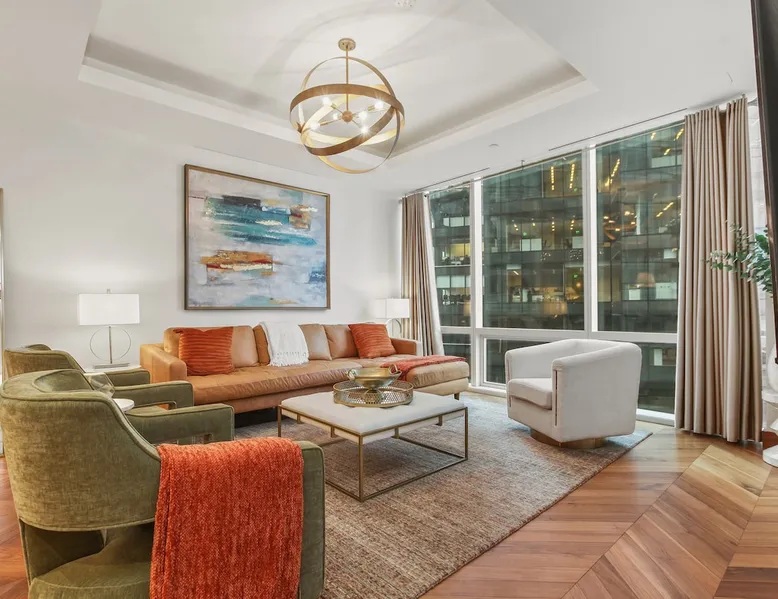 This spacious condo features all the indulgences of a chic home away from home: floor to ceiling windows, sophisticated furnishings, luxury bedding, and unparallel amenities. The space Indulge in the epitome of luxury living with this exquisite one-bedroom residence featuring a den, one and a half baths, and a master walk-in closet. The kitchen boasts Miele appliances, custom cabinetry, a built-in wine fridge, and a stunning waterfall kitchen island, creating a culinary haven that reflects sophistication and opulence. Elegance is evident throughout, with designer furnishings complementing the chevron walnut floors, creating a harmonious blend of style and comfort. Unwind in the owner's wing, where floor-to-ceiling windows frame captivating views. The spacious walk-in closet is your private retreat, and the ensuite is a masterpiece featuring a large rain walk-in shower adorned with designer marble tile, a double vanity for added convenience, and a luxurious stand-alone soaking tub—a sanctuary of tranquility and indulgence. This residence is not just a home; it's a statement of refined taste and exclusivity, offering an unparalleled lifestyle in every detail. Parking is seamlessly managed with a designated underground spot, exclusively reserved for residents. Enjoy the added convenience of residence-exclusive elevators. Outside your doorstep, you'll find some of the city's best shopping, dining, and cultural attractions just waiting to be explored. And with on-property amenities like a 24/7 concierge team, your every need will be taken care of to ensure a truly exceptional stay. Other things to note Building Amenities: Elevate your fitness routine in the well-appointed fitness center, complete with top-of-the-line workout equipment, a tranquil yoga room, and a sauna boasting captivating Inner Harbor views. Ascend to the rooftop outdoor lounge, where panoramic views of the Harbor and downtown Baltimore await. Unwind on sun loungers, relish the BBQ area, and showcase your culinary prowess in the outdoor kitchen. The residents' lounge beckons with an expansive communal area featuring fireplaces, billiards, a fully equipped kitchen, and a sweeping wraparound deck offering panoramic city views. The building also features the convenience of on-site restaurants, a 24-hour concierge, and an infinity edge outdoor pool with Harbor views.