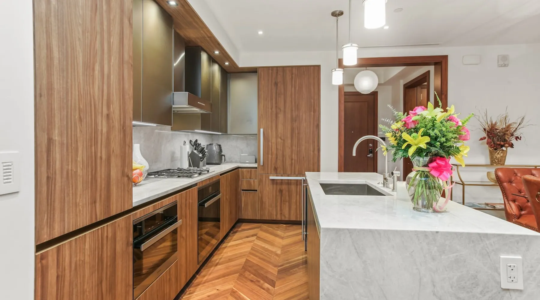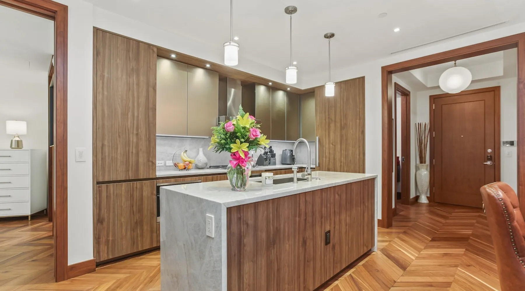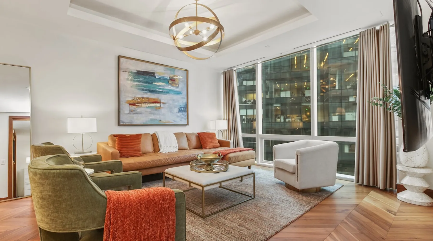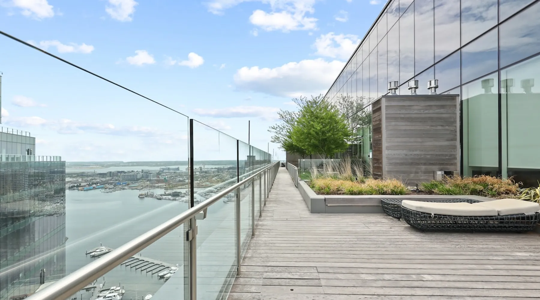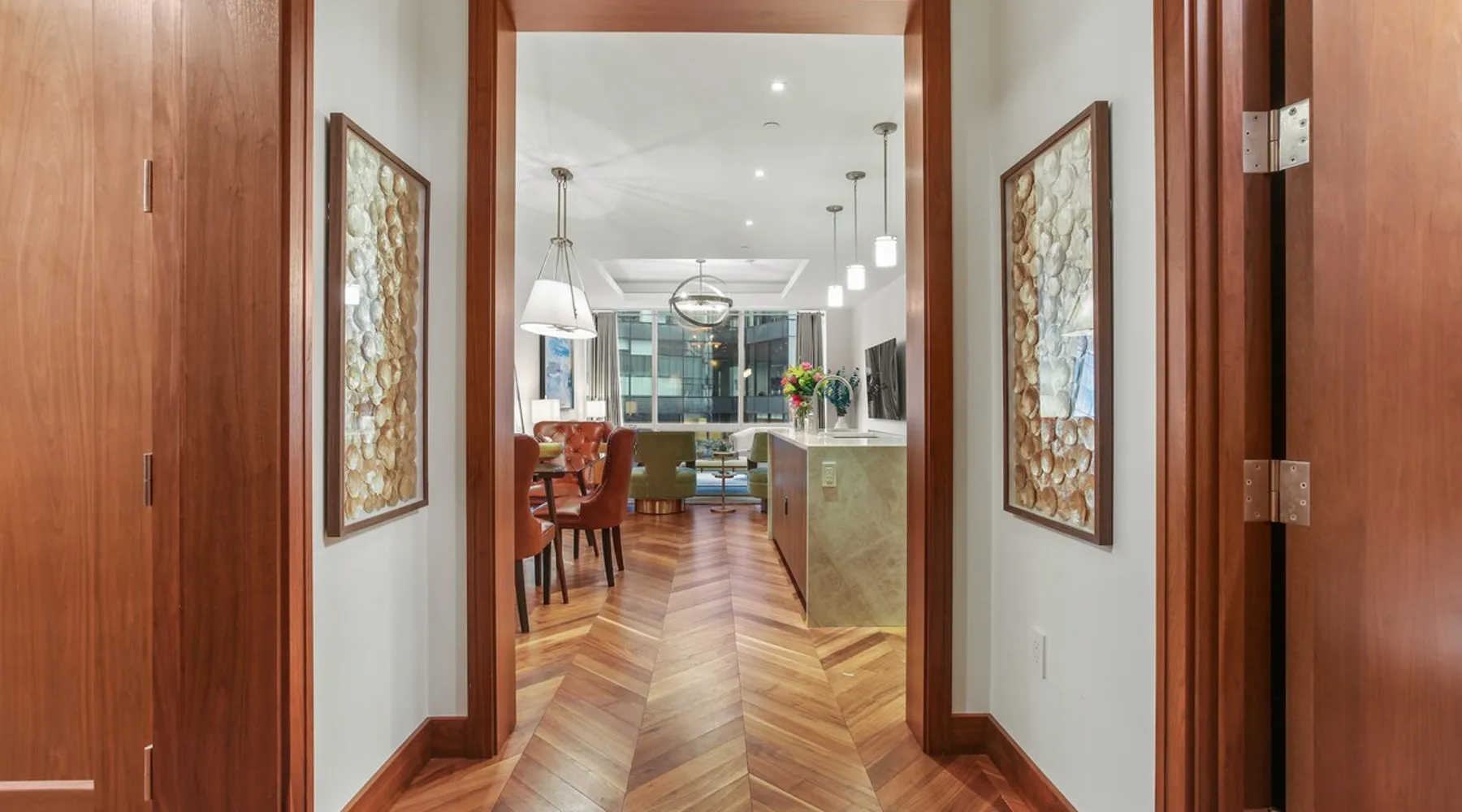 This spacious condo features all the indulgences of a chic home away from home: floor to ceiling windows, sophisticated furnishings, luxury bedding, and unparallel amenities. The space Indulge in the epitome of luxury living with this exquisite one-bedroom residence featuring a den, one and a half baths, and a master walk-in closet. The kitchen boasts Miele appliances, custom cabinetry, a built-in wine fridge, and a stunning waterfall kitchen island, creating a culinary haven that reflects sophistication and opulence. Elegance is evident throughout, with designer furnishings complementing the chevron walnut floors, creating a harmonious blend of style and comfort. Unwind in the owner's wing, where floor-to-ceiling windows frame captivating views. The spacious walk-in closet is your private retreat, and the ensuite is a masterpiece featuring a large rain walk-in shower adorned with designer marble tile, a double vanity for added convenience, and a luxurious stand-alone soaking tub—a sanctuary of tranquility and indulgence. This residence is not just a home; it's a statement of refined taste and exclusivity, offering an unparalleled lifestyle in every detail. Parking is seamlessly managed with a designated underground spot, exclusively reserved for residents. Enjoy the added convenience of residence-exclusive elevators. Outside your doorstep, you'll find some of the city's best shopping, dining, and cultural attractions just waiting to be explored. And with on-property amenities like a 24/7 concierge team, your every need will be taken care of to ensure a truly exceptional stay. Other things to note Building Amenities: Elevate your fitness routine in the well-appointed fitness center, complete with top-of-the-line workout equipment, a tranquil yoga room, and a sauna boasting captivating Inner Harbor views. Ascend to the rooftop outdoor lounge, where panoramic views of the Harbor and downtown Baltimore await. Unwind on sun loungers, relish the BBQ area, and showcase your culinary prowess in the outdoor kitchen. The residents' lounge beckons with an expansive communal area featuring fireplaces, billiards, a fully equipped kitchen, and a sweeping wraparound deck offering panoramic city views. The building also features the convenience of on-site restaurants, a 24-hour concierge, and an infinity edge outdoor pool with Harbor views.