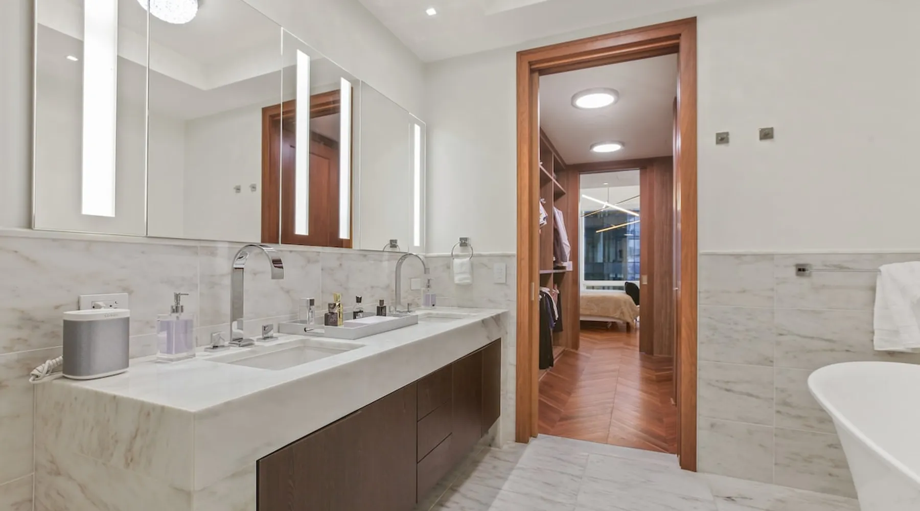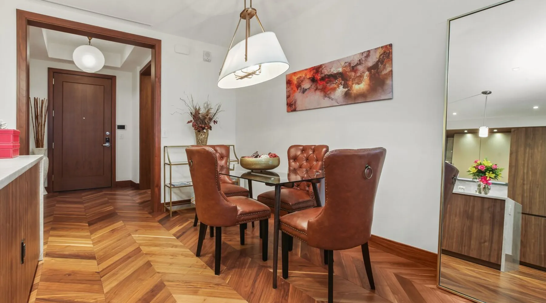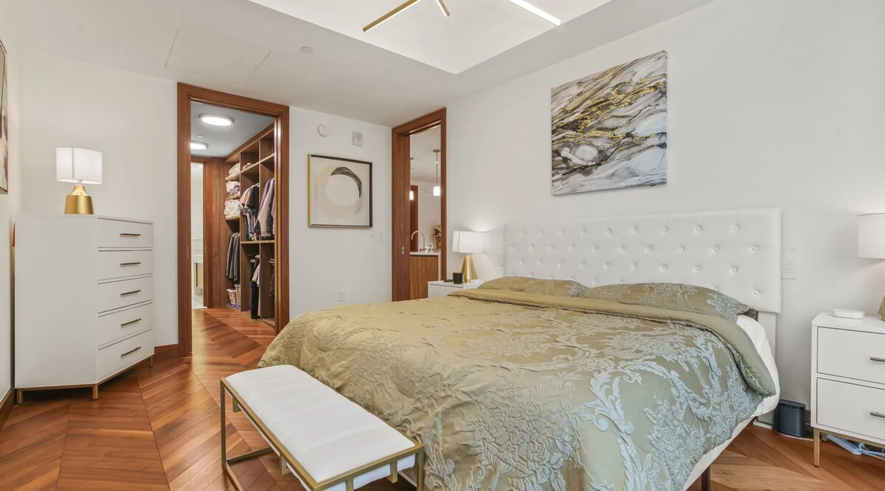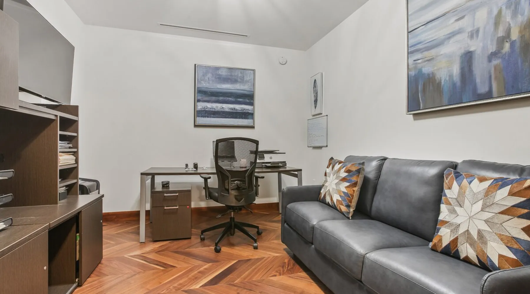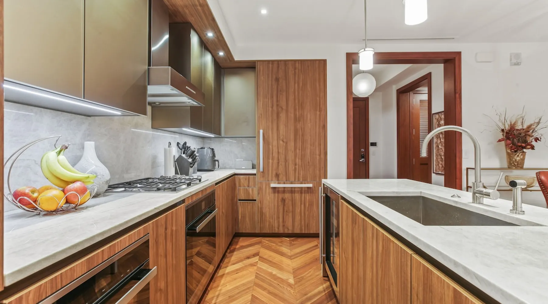 This spacious condo features all the indulgences of a chic home away from home: floor to ceiling windows, sophisticated furnishings, luxury bedding, and unparallel amenities. The space Indulge in the epitome of luxury living with this exquisite one-bedroom residence featuring a den, one and a half baths, and a master walk-in closet. The kitchen boasts Miele appliances, custom cabinetry, a built-in wine fridge, and a stunning waterfall kitchen island, creating a culinary haven that reflects sophistication and opulence. Elegance is evident throughout, with designer furnishings complementing the chevron walnut floors, creating a harmonious blend of style and comfort. Unwind in the owner's wing, where floor-to-ceiling windows frame captivating views. The spacious walk-in closet is your private retreat, and the ensuite is a masterpiece featuring a large rain walk-in shower adorned with designer marble tile, a double vanity for added convenience, and a luxurious stand-alone soaking tub—a sanctuary of tranquility and indulgence. This residence is not just a home; it's a statement of refined taste and exclusivity, offering an unparalleled lifestyle in every detail. Parking is seamlessly managed with a designated underground spot, exclusively reserved for residents. Enjoy the added convenience of residence-exclusive elevators. Outside your doorstep, you'll find some of the city's best shopping, dining, and cultural attractions just waiting to be explored. And with on-property amenities like a 24/7 concierge team, your every need will be taken care of to ensure a truly exceptional stay. Other things to note Building Amenities: Elevate your fitness routine in the well-appointed fitness center, complete with top-of-the-line workout equipment, a tranquil yoga room, and a sauna boasting captivating Inner Harbor views. Ascend to the rooftop outdoor lounge, where panoramic views of the Harbor and downtown Baltimore await. Unwind on sun loungers, relish the BBQ area, and showcase your culinary prowess in the outdoor kitchen. The residents' lounge beckons with an expansive communal area featuring fireplaces, billiards, a fully equipped kitchen, and a sweeping wraparound deck offering panoramic city views. The building also features the convenience of on-site restaurants, a 24-hour concierge, and an infinity edge outdoor pool with Harbor views.