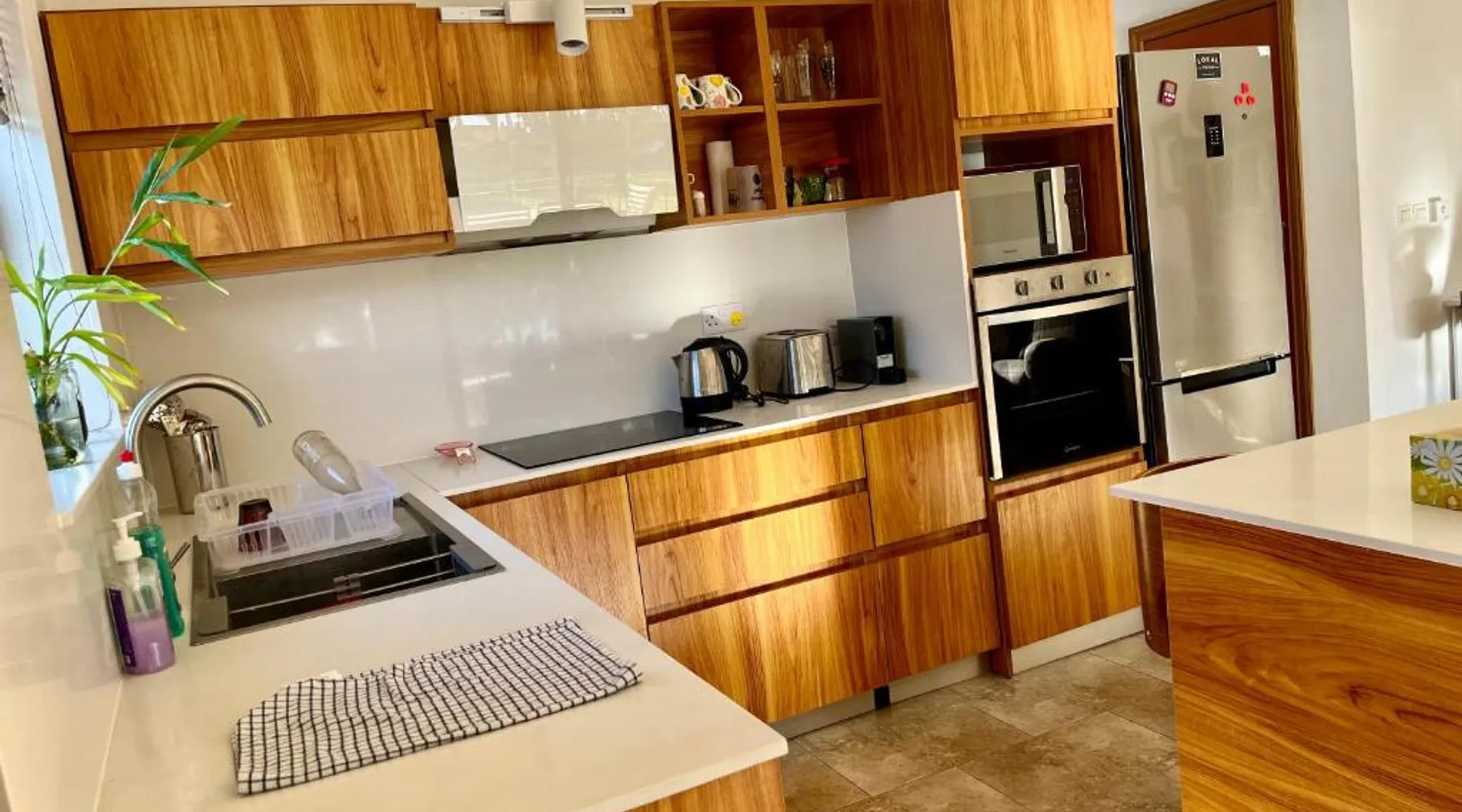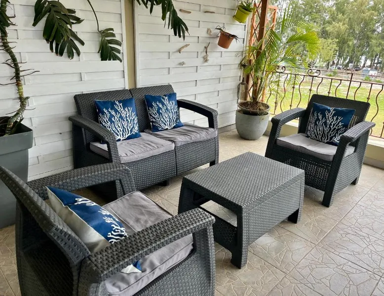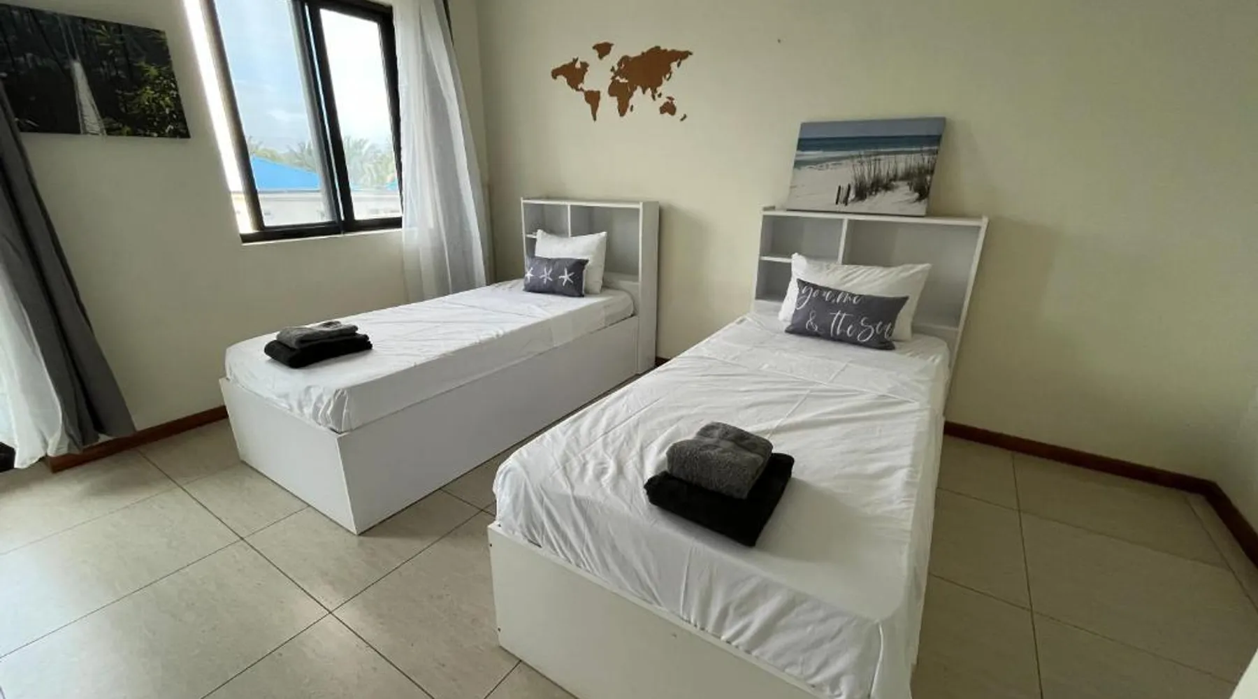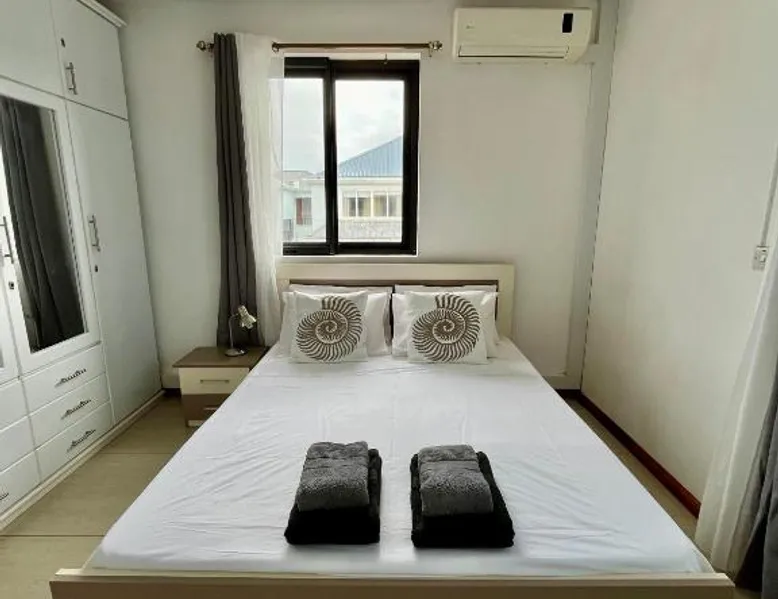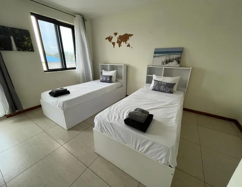 Comfortable Accommodations: Appartement Cozy Vue sur Mer in Flic en Flac offers a terrace, bar, and a year-round outdoor swimming pool. Free WiFi is available throughout the apartment. Modern Amenities: The property features family rooms, air-conditioning, a kitchenette, balcony, washing machine, and a private bathroom. Additional amenities include a work desk and free on-site private parking. Prime Location: Flic en Flac Beach is an 8-minute walk away. Sir Seewoosagur Ramgoolam Airport is 28 mi from the apartment. Nearby attractions include Tamarina Golf Course (5.6 mi) and Domaine Les Pailles (13 mi). Guest Favorites: Guests highly rate the apartment for its beach access and proximity to local attractions. This apartment's special feature is the private pool. This spacious apartment consists of 2 living rooms, 2 separate bedrooms and 2 bathrooms with a walk-in shower and free toiletries. The well-fitted kitchen features a stovetop, a refrigerator, a dishwasher and kitchenware. The air-conditioned apartment provides a flat-screen TV with cable channels, a washing machine, a tea and coffee maker, a seating area as well as sea views. The unit offers 3 beds.