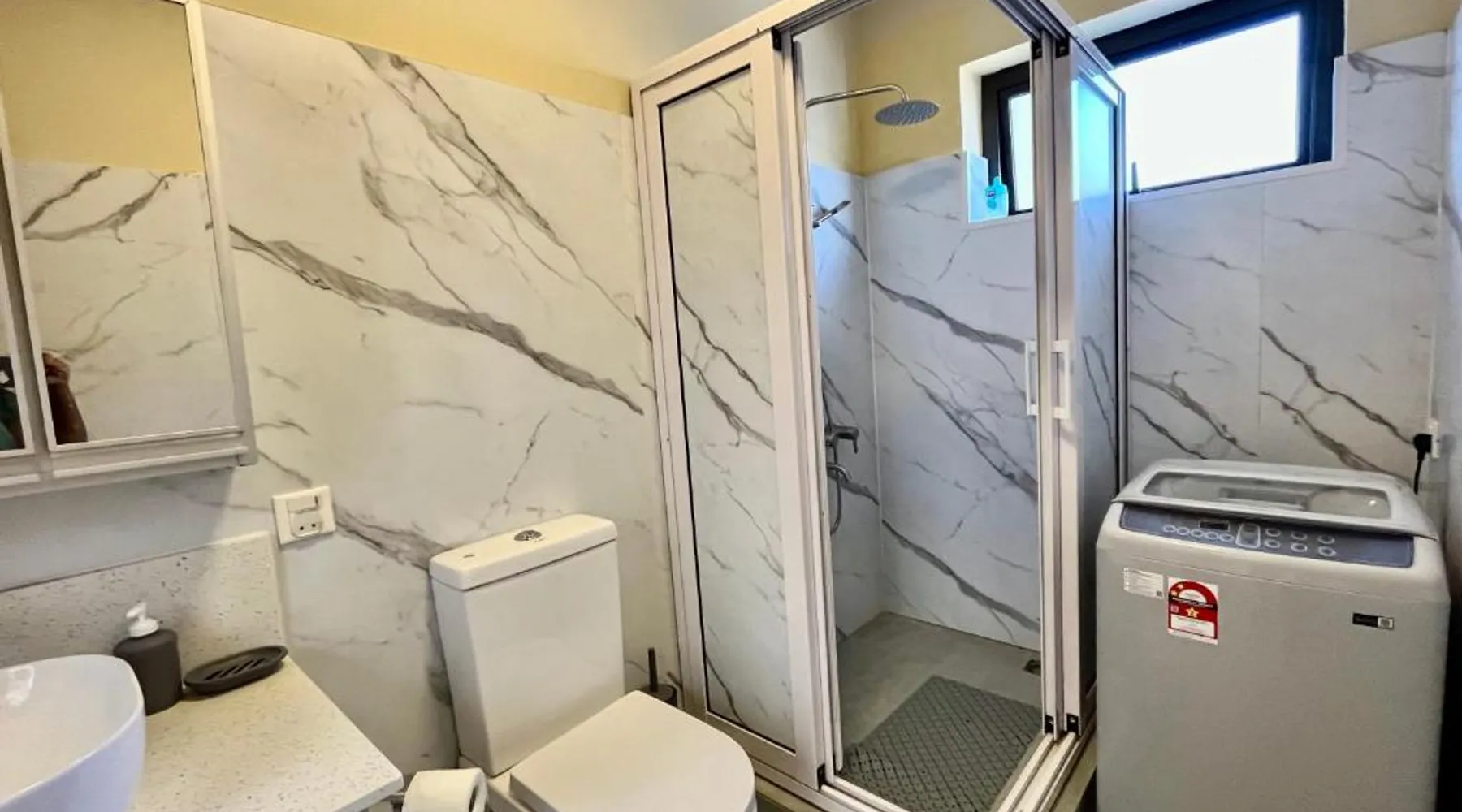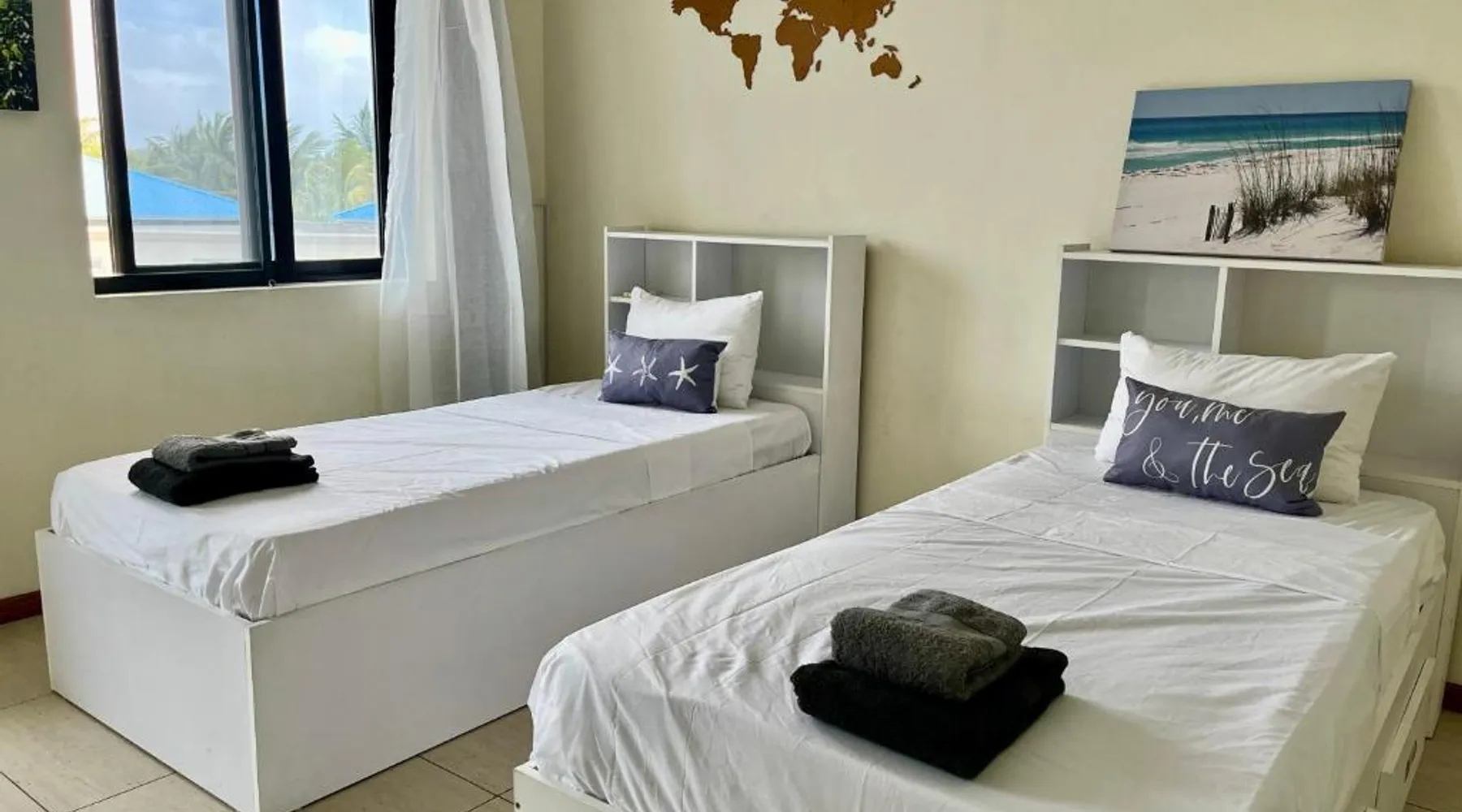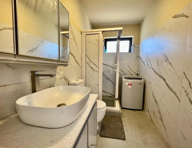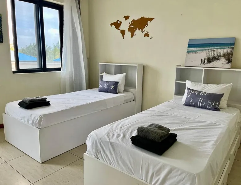 Comfortable Accommodations: Appartement Cozy Vue sur Mer in Flic en Flac offers a terrace, bar, and a year-round outdoor swimming pool. Free WiFi is available throughout the apartment. Modern Amenities: The property features family rooms, air-conditioning, a kitchenette, balcony, washing machine, and a private bathroom. Additional amenities include a work desk and free on-site private parking. Prime Location: Flic en Flac Beach is an 8-minute walk away. Sir Seewoosagur Ramgoolam Airport is 28 mi from the apartment. Nearby attractions include Tamarina Golf Course (5.6 mi) and Domaine Les Pailles (13 mi). Guest Favorites: Guests highly rate the apartment for its beach access and proximity to local attractions. This apartment's special feature is the private pool. This spacious apartment consists of 2 living rooms, 2 separate bedrooms and 2 bathrooms with a walk-in shower and free toiletries. The well-fitted kitchen features a stovetop, a refrigerator, a dishwasher and kitchenware. The air-conditioned apartment provides a flat-screen TV with cable channels, a washing machine, a tea and coffee maker, a seating area as well as sea views. The unit offers 3 beds.