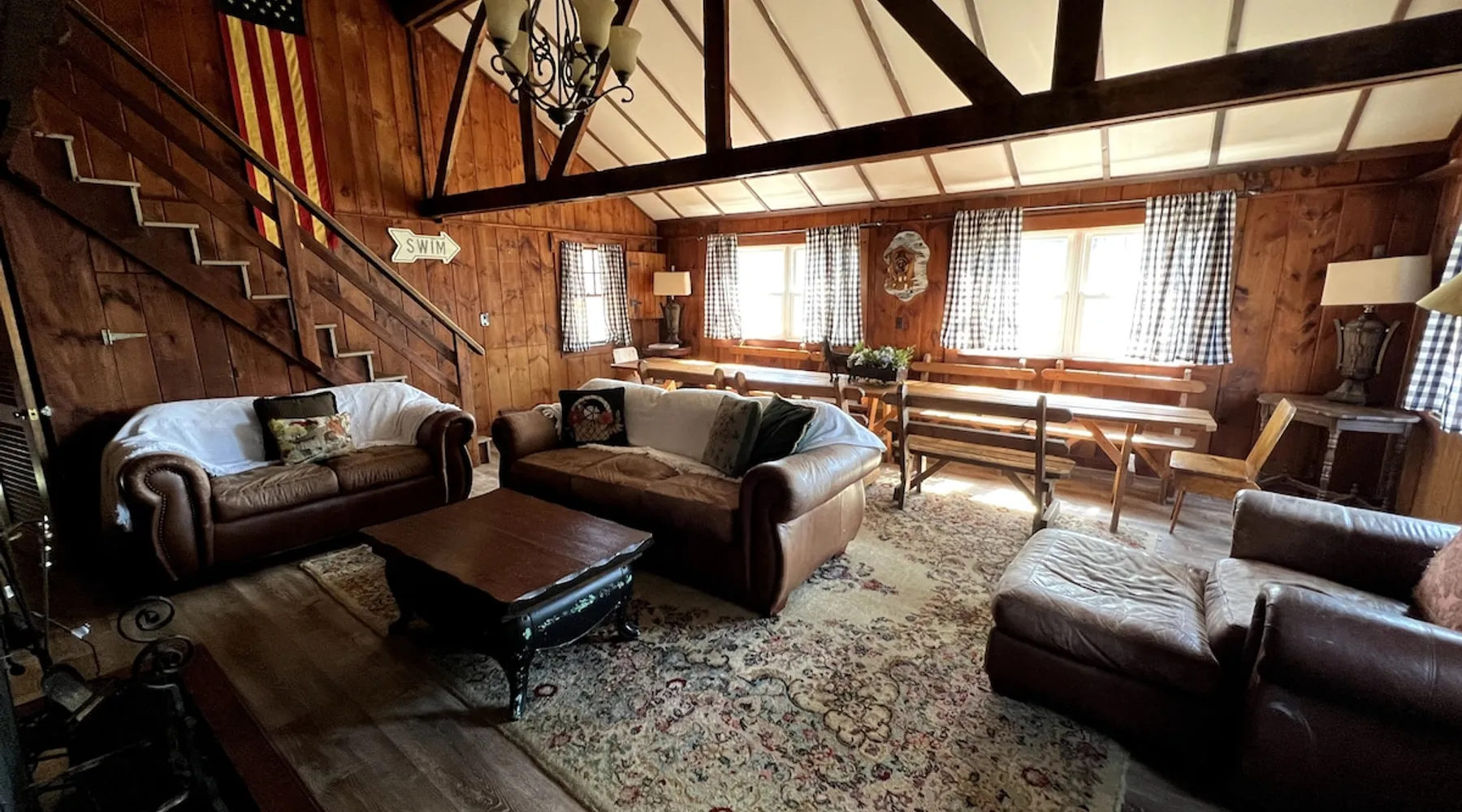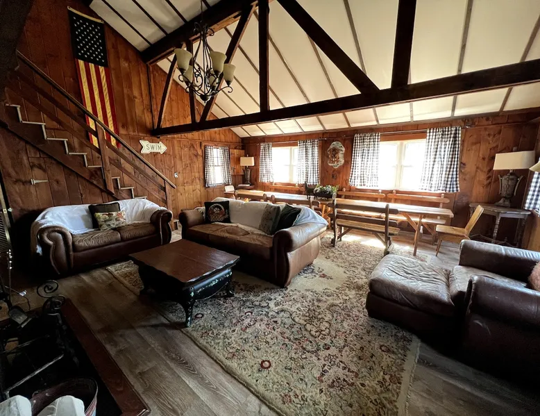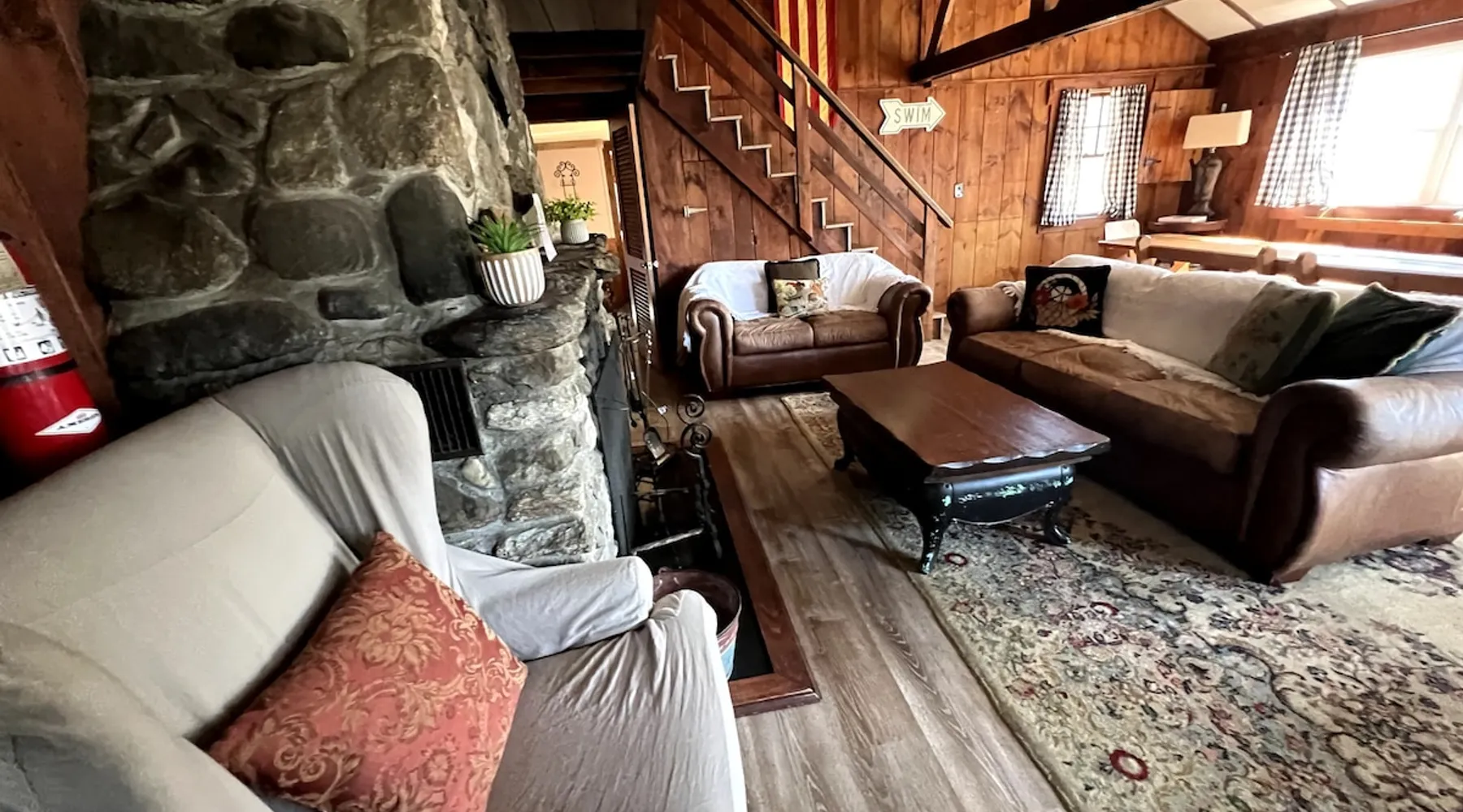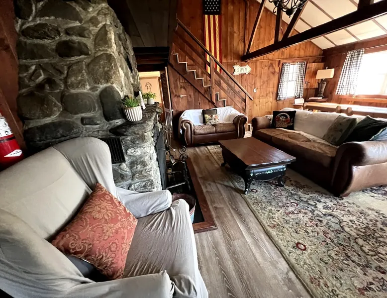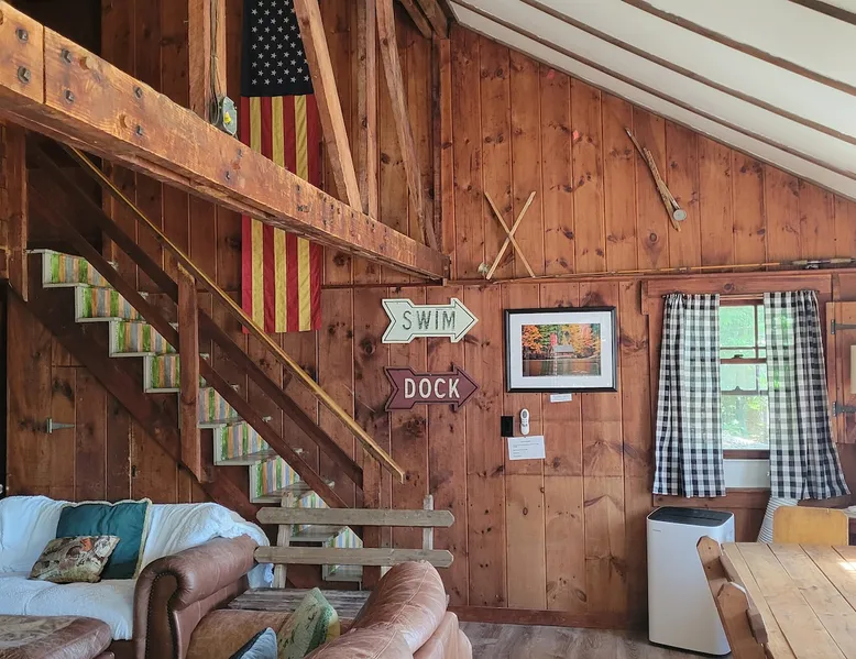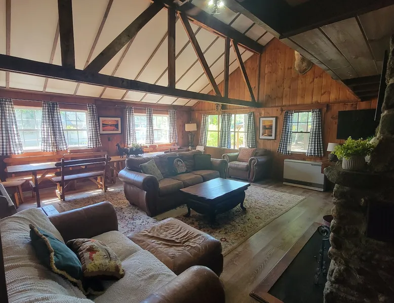 The Lake House Lodge is a private home within our lakeside boutique hotel, ideal for large families or groups. Offering a cozy living room with an electric fireplace stove, six bedrooms, two bathrooms,& a full-size kitchen. Perfect for family gatherings, anniversaries, birthdays, weddings, or retreats. Guests enjoy a private beach, playground, outdoor fire pit, BBQs, lawn games, & dock space upon request & addt'l fee. Explore Squam Lake with our kayaks, canoes, & SUP boards for a memorable stay. The space Our Lakehouse Lodge is the perfect destination for families and groups looking to enjoy the beauty of lakeside living. This spacious lodge can comfortably accommodate up to 15 guests, providing a wonderful blend of comfort, convenience, and adventure. Accommodations: Downstairs: Cozy living and dining area, perfect for gatherings and relaxation. Fully equipped kitchen for preparing delicious meals. Two connected bedrooms configured as a suite. Half bathroom with a shower. Sleeping arrangements include a queen bed and two double beds, ensuring a restful night's sleep. Upstairs: Two private bedrooms, each offering a rustic cabin feel. An additional suite with two connected bedrooms Half bathroom with a shower. Upstairs sleeping options include another queen bed, three double beds, and a twin bed. Outdoor Amenities: Private Fire Pit, Picnic Area and Grill: Just off the deck, perfect for evening gatherings and s'mores. Cedar Play Area: Close proximity for children and families to enjoy outdoor fun. Private Beach: Relax on the sandy shore or take out our kayaks, canoes, or stand-up paddleboards for lake adventures. 110 ft Dock: Ideal for fishing, jumping into the lake, or simply soaking in the views. Boat dock space is available for an additional charge (subject to availability; please inquire within). Activities: Water Sports: Kayaks, canoes, and paddleboards are available for guest use, offering exciting lake activities for all skill levels. Fishing: Try your luck from the dock or explore the lake’s fishing spots. Picnicking: Enjoy meals outdoors in the serene picnic area, surrounded by the natural beauty of the lake. Our Lakehouse Lodge is more than just a place to stay—it's an experience. With a variety of sleeping arrangements, it’s perfect for family reunions, group retreats, or any gathering that is looking for a cozy rustic cabin experience. Whether you’re enjoying the warm, inviting interior, or exploring the stunning outdoor surroundings, you’ll find the Lakehouse Lodge to be a wonderful retreat. We invite you to relax, unwind, and create lasting memories at our Lakehouse Lodge. Experience the perfect combination of tranquility and adventure, with access to all the amenities needed for a memorable lakeside getaway. Other things to note Pets are welcome for an additional fee of $30 per pet, per night. Use of Boat Slip is subject to availability and is an additional fee based on boat size @ $2ft.