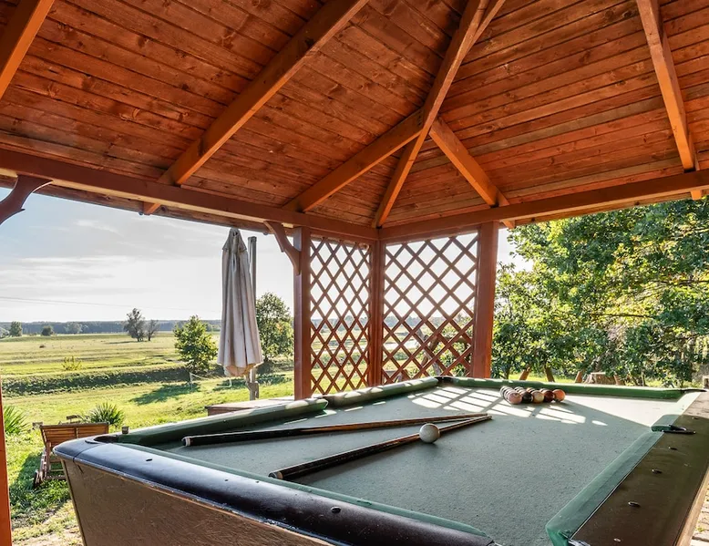 Agroturystyka nad Wartą is a beautiful agritourism farm in an even more beautiful area. From the top, the Notecka Forest, from the bottom, the Warta River, from the right, the paddocks and horses, and from the left, the shaggy wilderness. Peace and quiet, disturbed only by the singing of birds. The space Agritourism on the Warta River, a paradise for all who love fishing, mushroom picking, kayaking, and beautiful Polish nature. Nad Wartą is also an ideal place for hiking and cycling in the fields, meadows and forests of the Lubusz and Greater Poland regions. Agritourism on the Warta River is also the end, the end of the place for agritourism holidays for all those who are looking for peace and quiet. Guest access We offer: 3 double guest rooms 2 triple guest rooms 2 four-person guest rooms (including one with a kitchenette) spacious kitchen - separated in a separate cottage with a beautiful view of the Warta, where you can prepare meals yourself. We offer the possibility of catering. Agroturystyka nad Wartą offers a total of 20 beds. If you need accommodation for more people. We can arrange additional accommodation in the neighboring agritourism farm. The property is fenced. Guests have access to a fully equipped kitchen. Parking on the premises. The property also includes: a place for a bonfire, the possibility of barbecuing. For children: swings, sandpit. For active people: mushroom picking, fishing. Nearby: bat reserve, bird reserve, Międzyrzec fortified region, SAFARI ZOO.