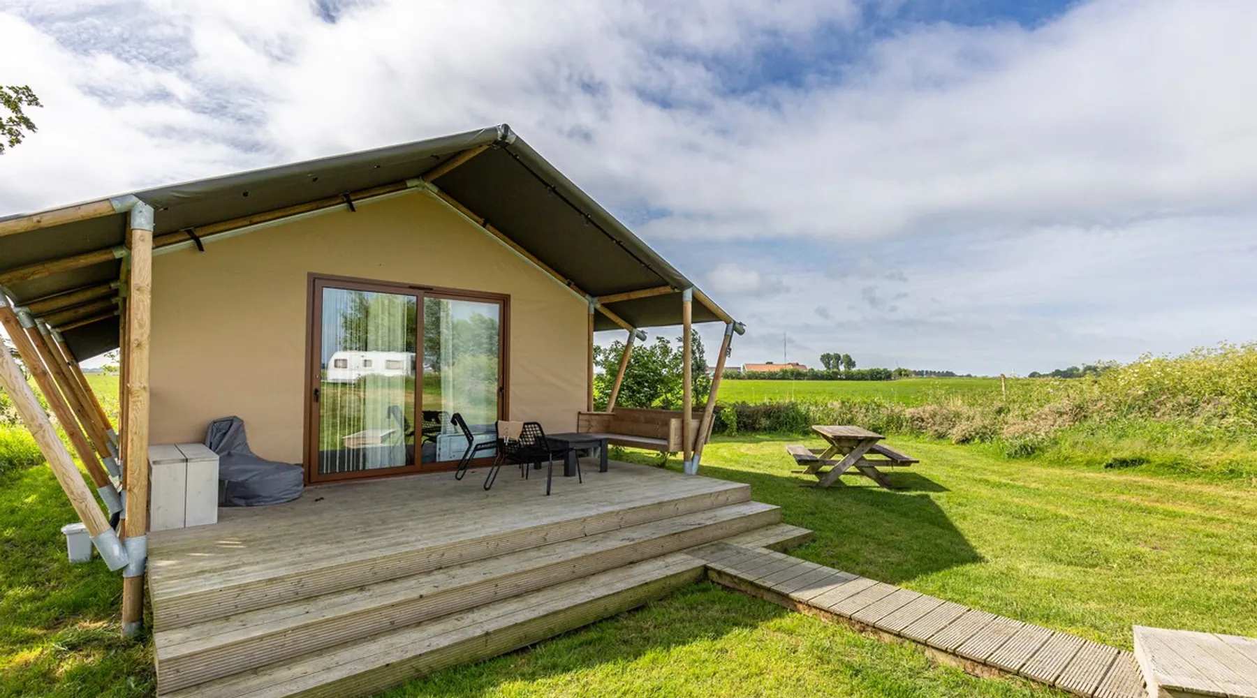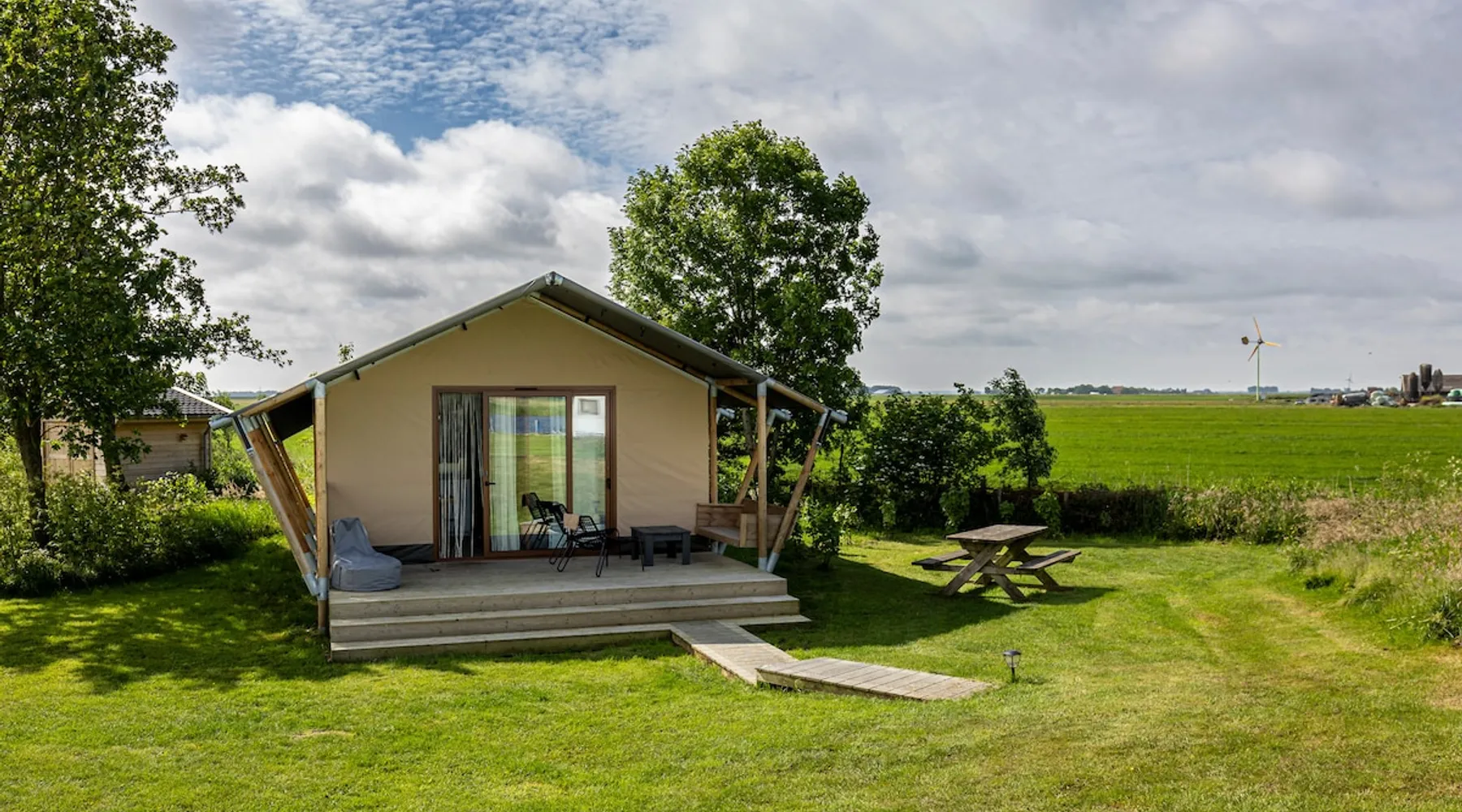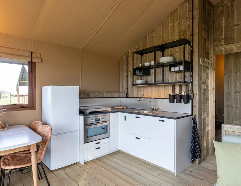The "Waarme tinte" is new in 2024, completely isolated and located on the water. For water sports and nature lovers, looking for privacy and tranquility, a walhalla. The space The tent is ideal for a family with children. There are two bedrooms, one with a bunk bed for 3 people.