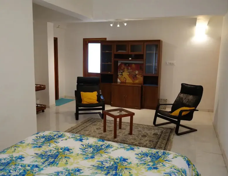 THE PENT HOUSE IS TOTALLY AIRCONDITIONED IT IS AN EXCLUSIVE RETREAT FOR EXCLUSIVE PEOPLE,ONCE THERE, IT IS SERENE AND PEACEFUL WITH ALL CREATURE COMFORT AND COMFORTABLE FURNITURE TO RELAX OR STEP OUT ON THE HUGE EXCLUSIVE TERRACE GARDEN WITH GREEN PLANTS AND BOTH BEDROOMS HAVE LARGE BATHROOMS WITH HOT AND COLD RUNNING WATER, AND QUALITY FITTINGS.THE OPEN KITCHEN IS EQUIPPED WITH A CHIMNEY, MICROWAVE, DOUBLE DOOR FRIDGE,R.O WATER PURIFIER AND BASIC CUTLERY AND CROCKERY.