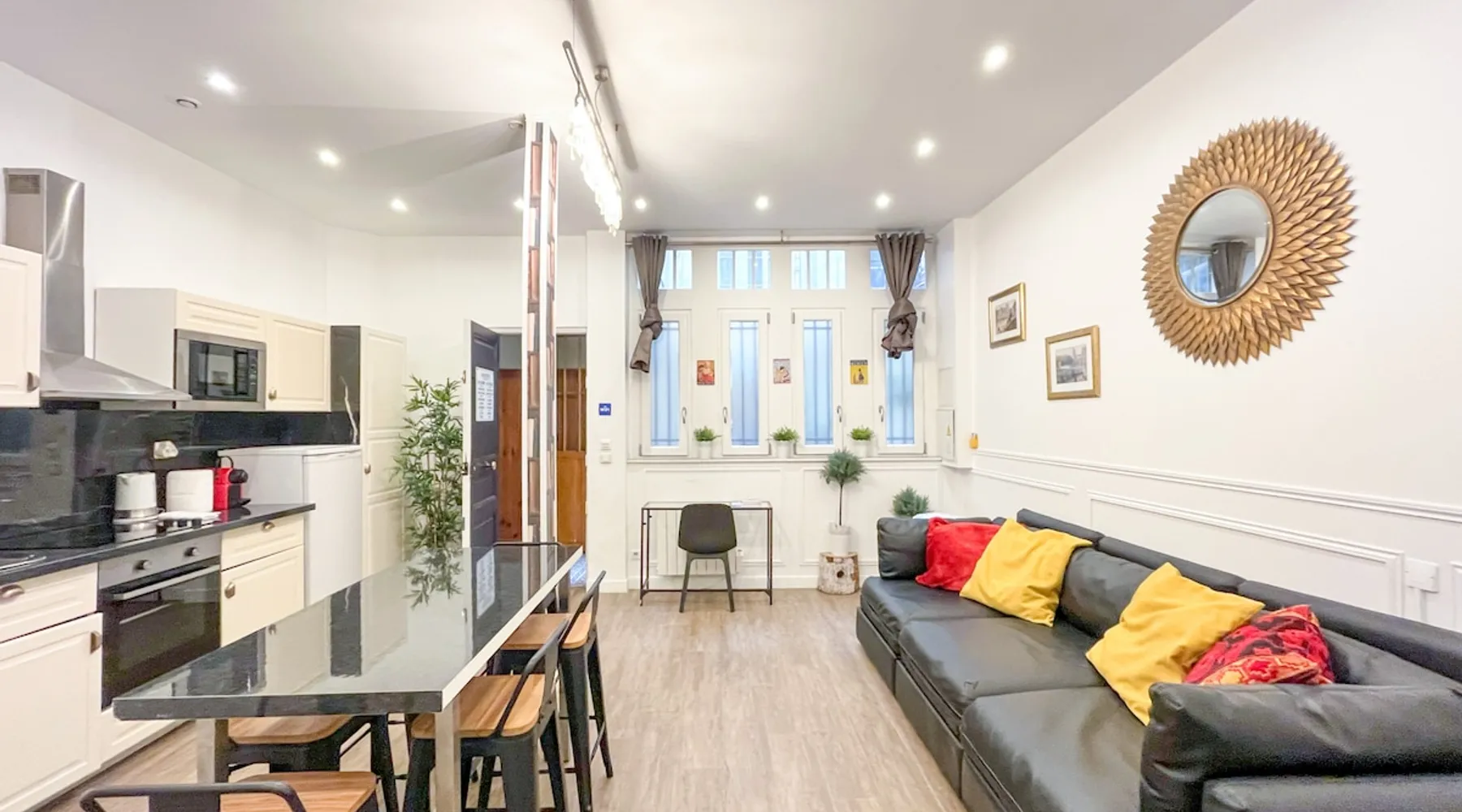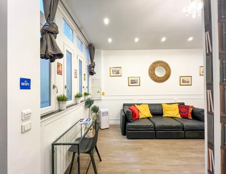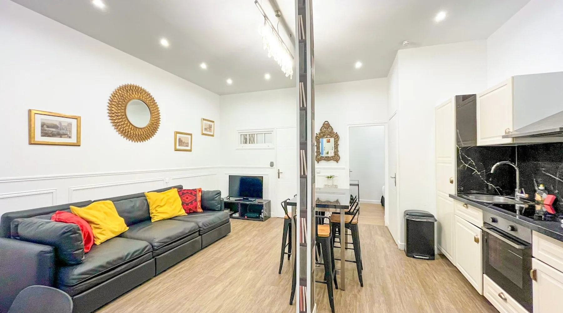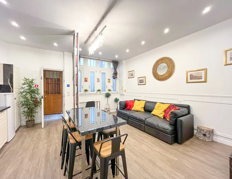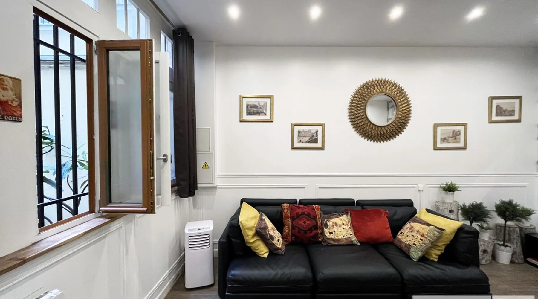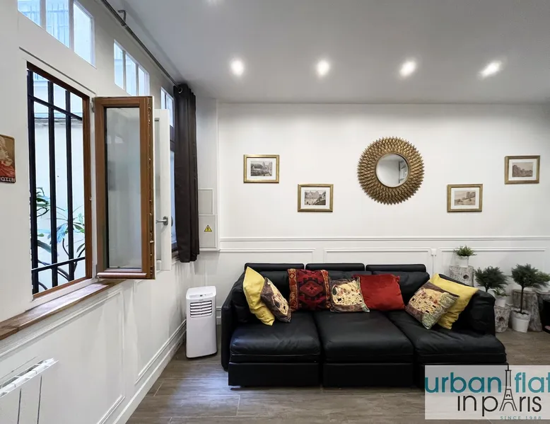 The Urban Flat In Paris team is happy to welcome you to this fully renovated old building with an area of 50m2 that can accommodate up to 7 people, ideally for 4 people. We are pleased to inform you that regardless of the number of people indicated in your booking, we will provide sheets and towels up to the maximum capacity of the apartment. The space The Urban Flat In Paris team is happy to welcome you to this fully renovated old building with an area of 50m2 that can accommodate up to 7 people, ideally for 4 people. We are pleased to inform you that regardless of the number of people indicated in your booking, we will provide sheets and towels up to the maximum capacity of the apartment. Architect's apartment completely renovated, ideally located in the Marais, situated at the back of a secure courtyard with an area of approximately 50m2 and located on a pedestrian street, ultra-modern thanks to its latest generation equipment, and traditional with its beautiful solid oak parquet flooring and exposed beams, this apartment will provide you with all the necessary comfort to feel like a true Parisian in his cosy nest. Ideally located, in the heart of Paris just steps away from major Parisian historical sites, (Le Marais, Bastille Square, Place des Vosges, Republic Square, Saint Martin Canal etc...) this apartment consists of a large and comfortable living room with Tv, a sofa bed that can accommodate 3 people with a truly comfortable bed. A fully equipped kitchen with cooker, oven, refrigerator, coffee machine, toaster, kettle, crockery etc... A first room with a double bed that can accommodate 2 people, with storage. A second bedroom with a double bed that can accommodate 2 people and storage spaces. The bathroom, newly equipped with a bathtub, a shower cabin, a washbasin and toilets. You will also have at your disposal everything necessary to stay connected to the world, namely a high-speed internet connection with free wifi, cable television, with all the major French channels and most international television channels. Ideally located near the Marais and Rue Montorgueil, appreciated by Parisians, it offers a peaceful escape in the heart of the city while allowing easy access to tourist attractions. You can explore iconic sites such as the Palais Royal, the Louvre Museum and Notre-Dame de Paris, while enjoying the nightlife, restaurants and shops of the Sentier district. Do not miss the vibrant experience of the Montorgueil Quarter and other Parisian treasures such as the Opéra Garnier, the Pompidou Centre, the Louvre, the Palais Royal and much more. Here are some approximate distances to main tourist attractions from this address: The Louvre: Approximately 1 km (approximately 13 minutes on foot) Notre-Dame de Paris: Approximately 2 km (approximately 22 minutes on foot) Palais Royal: Approximately 1.3 km (approximately 15 minutes on foot) Opéra Garnier: Approximately 1 km (approximately 12 minutes on foot) Centre Pompidou: Approximately 1.4 km (approximately 16 minutes on foot) If you wish, I can send you a private driver to pick you up from the airport and take you directly to the apartment, consult me for prices in a private message. Traveller Access Travellers will feel at home, with no particular restrictions apart from respecting the place and the neighbourhood. In order to welcome you in the best possible health conditions, our apart'hotels are meticulously cleaned and disinfected From your arrival, the Urban Flat in Paris team provides you with Afnor standard masks, gloves, hydroalcoholic gel, disinfectant wipes and soap. Your booking is protected. In the event of a technical incident before your arrival, we will offer you an upgrade or a comparable apartment. We offer Free access to our Urban flat gym in Paris, located at 5 rue du Ponceau 75002 and open every day from 9am to 6pm. Other things to note Included services - Heating - Bed linen Registration Details 7510314795868