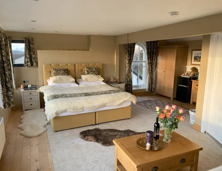 Quality relaxation in the heart of the Lakes. Spacious, tranquil loft with super king size bed, 55 inch TV and elegant bathroom with walk-in shower and sumptuous jacuzzi bath with complimented scented candles, bath foam salts & towels. Amazing panoramic views over the lake and Bowness village. Within walking distance of vibrant cafe's, restaurants, bars, pubs and specialty shops. Includes unlimited free use of the spa at the Beech Hill Hotel ( 3 miles from The Penthouse). Relax in luxurious hot tubs with to die for views over the Lake and central fells. Indoor swimming pool, sauna, steam room and loungers provide the perfect spa environment with many luxury treatments individually priced available via the hotel. The 50 square meter Penthouse offers large sofa and panoramic views to enjoy a range of teas & coffees as well as a fridge/freezer wine and mixer glasses, vanity table, hairdryer, iron & board. Free on street parking