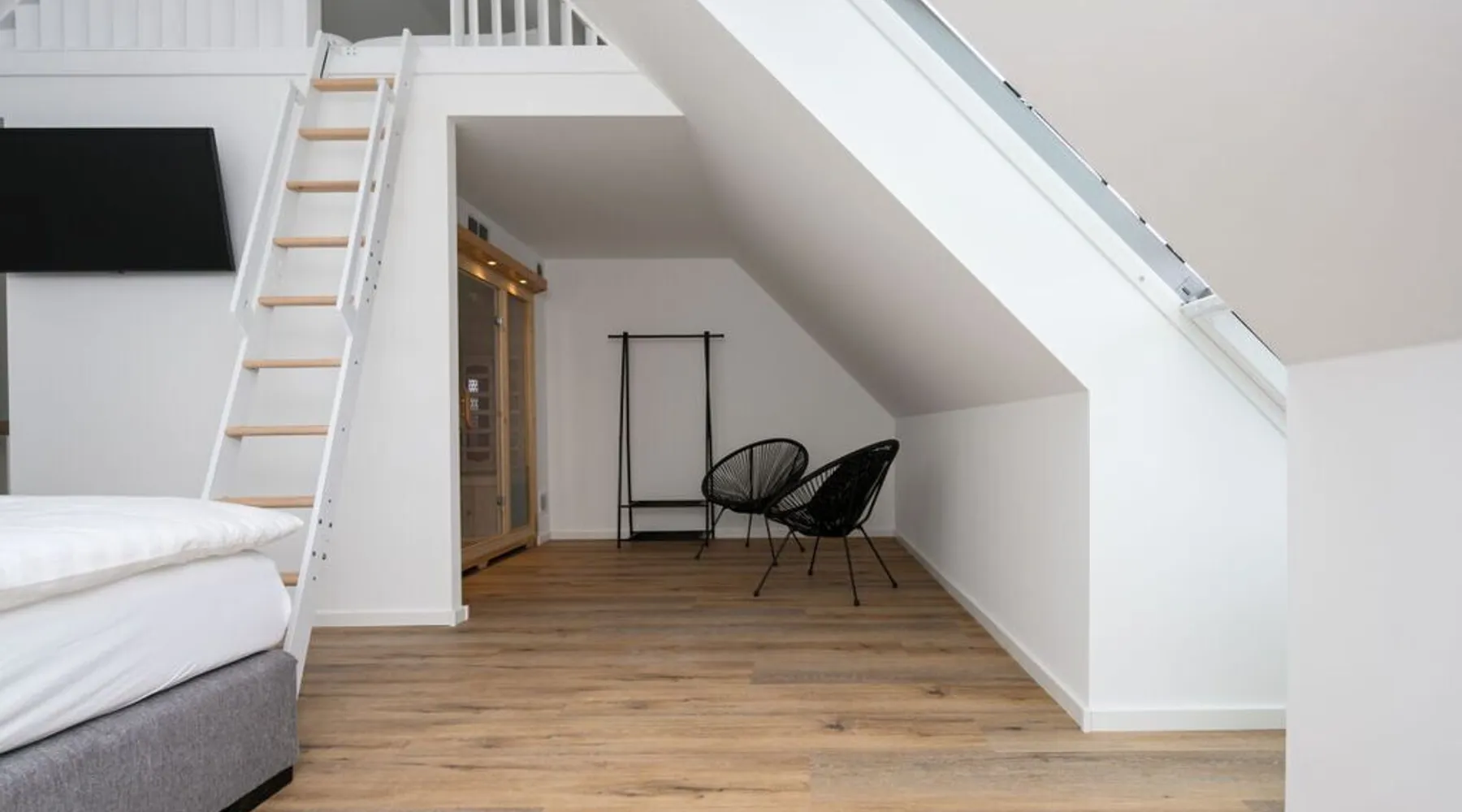 Zingst PURE - feel good all year round... The beautiful, modern apartment buildings are located behind the dike, 150m from the sandy beach of the Baltic Sea in a quiet location in Zingst. The apartments are flooded with light, spacious and comfortably furnished. The wonderful location is a suitable starting point for all leisure activities. Layout: Vacuum Cleaner, hallway(Mirror, Wardrobe Coatrack, heating), Kitchen(microwave), bedroom(Bed Linen, Wardrobe, double bed, double bed, heating), bedroom(Bed Linen, Wardrobe, single loft bed, single loft bed, double bed, double bed, TV, heating), bathroom(Mirror, toilet, shower, washbasin, heating), storage(Garden shed), Internet access, Internet access, balcony(balcony, awning), ironing board, iron, Laundry Package for a fee, parking (paying) These costs are mandatory and charged on site. They are not included in the rental price.: Pets; Not allowed Bed linen; Present Optional services that you can arrange on site: Bath towels; Present Wifi; Free