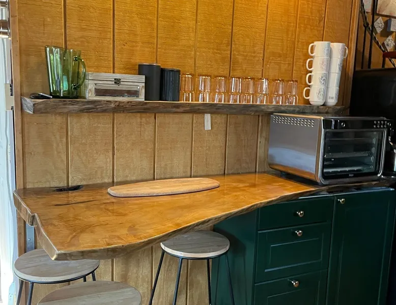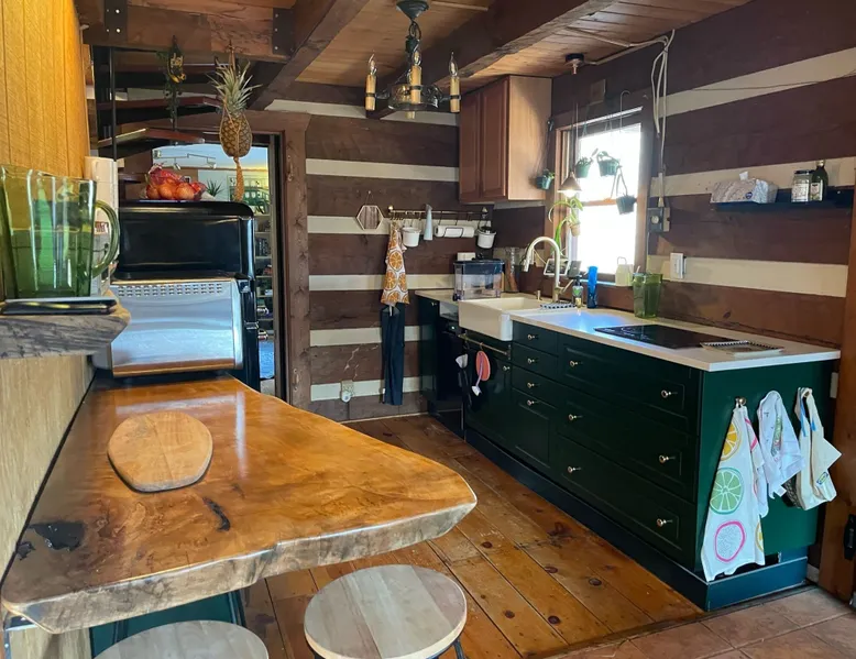 You need to get away from all the craziness, enjoy life, take time to be still and just be in the company of loved ones. look no further, and Welcome to our cozy Cabin. Nestled in Apple Mountain directly off I-66 you’ll embrace natural beauty between the Shenandoah River backdropped in the Blue Ridge mountains from the comfort of your ultra private cabin. A big red wooden door swings open into a great room with an uplit 20’ ceiling, fireplace, projector, and library and a well-equipped kitchen that flows into your dining table to feed 6+ with a rustic library atmosphere. The social space is open for wonderful social flow. Past this is a well-lit cozy bedroom just off the dining equipped with a TV desk and makeup area, the private suite, right next to the back patio, and a hot tub in a space that feels like a tiny village. Back in the main living room The laundry and bidet-equipped bathroom. Follow the spiral staircase with caution up to the loft where you can overlook the space below