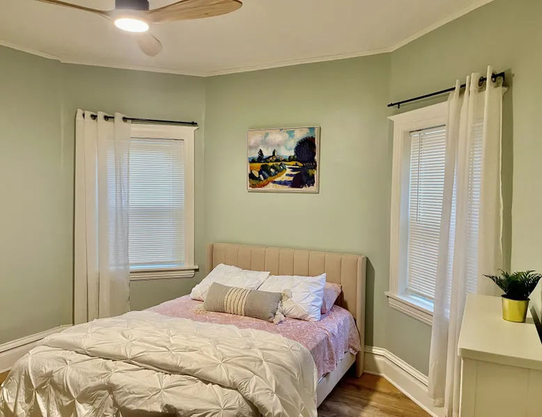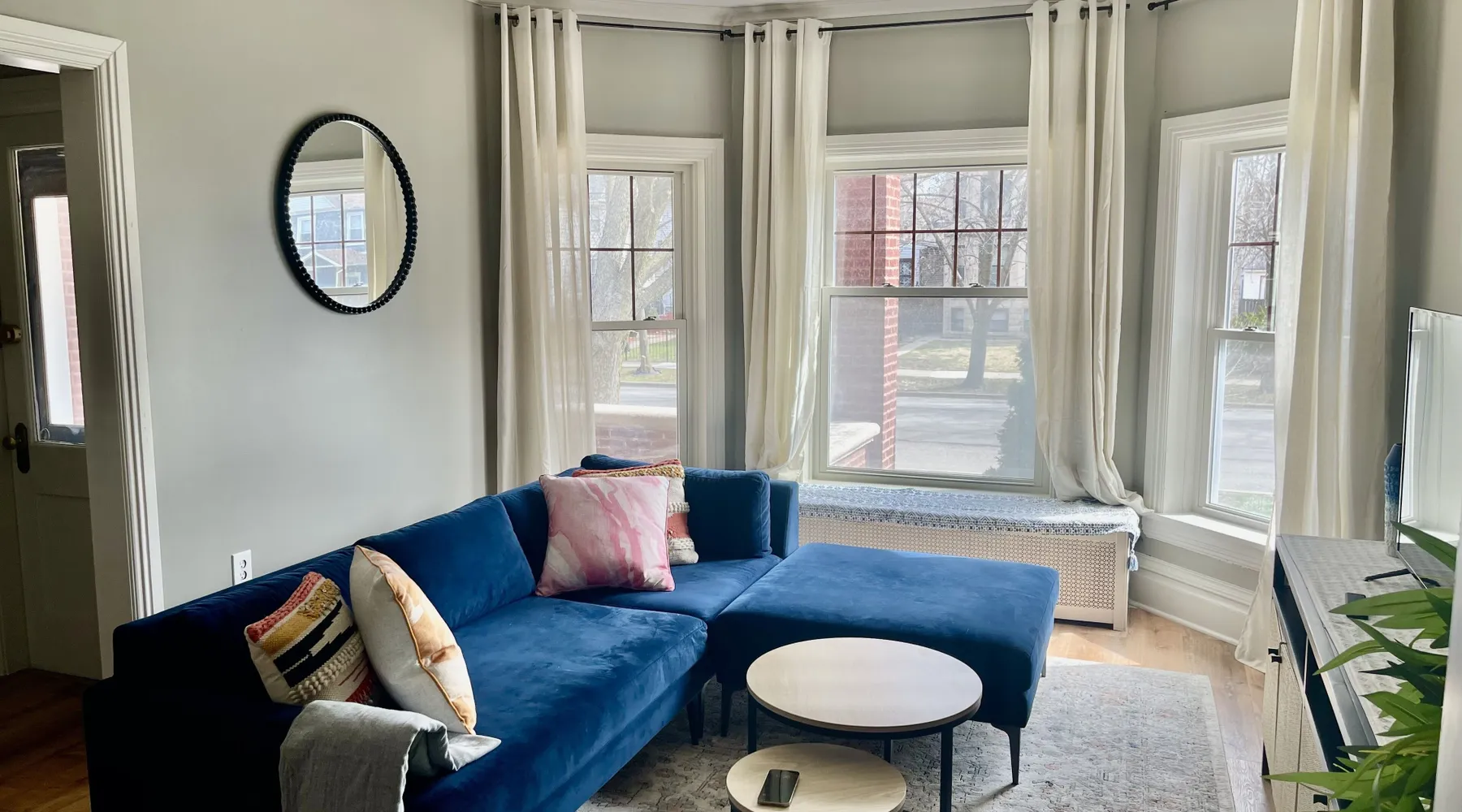 Gorgeous 3BR 1BA apt near downtown Oak Park & 15 mins from the Medical District, Pilsen & Downtown Chicago! Get the best of both worlds. Charming Oak Park has historical homes, Frank Lloyd Wright Home & Hemingway’s birthplace. Visit cute coffee shops, restaurants & boutiques in downtown Oak Park. West Loop offers exciting city vibes with Chicago’s best restaurants, shopping & bars. The apartment is on the 1st flr of a three unit multi family. Has separate entrance, lots of windows and tons of natural light. Spacious living and dining room, three bedrooms plus a separate office/sunroom, large kitchen island. Enough space to relax, lounge and cook a nice meal. Pretty landscaped backyard has patio seating, fire pit & gourmet BBQ! Beautifully decorated & stocked with everything for a comfortable stay and the perfect home base for exploring Chicago & Oak Park! Walk 5 mins to the Green Line and bus stop steps away! Both airports (O’Hare & Midway) within 25 mins drive! NOTE: This is a vintage home that’s about 100 yrs old. While renovated, we have chosen to retain some of the quirks and character of an old home. Two other apartments in the home are occupied. Laundry & backyard is shared space.