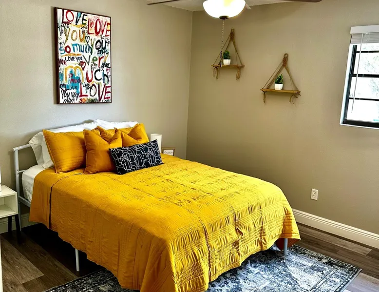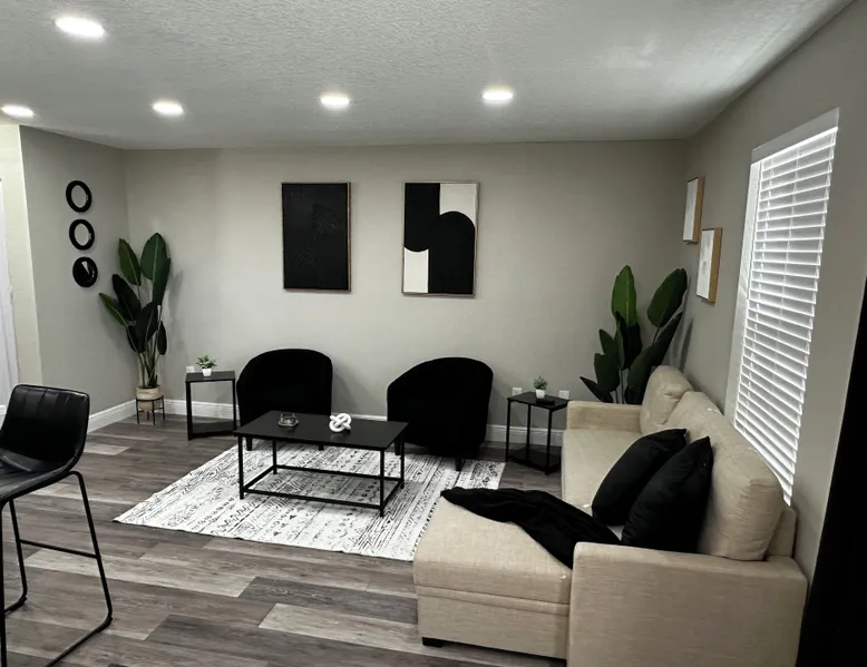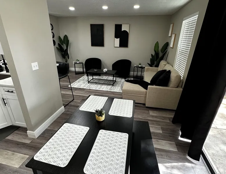 The newly remodeled townhome is the perfect place to be near all the parks for the summer. Our home has all-new appliances and upgrades, ensuring convenience and comfort. From stainless steel appliances in the kitchen to energy-efficient fixtures throughout, every detail has been thoughtfully chosen to enhance your stay. Both bedrooms are on the second floor, and each room has a queen-sized bed. Full bath upstairs, along with a pull-out couch (full bed). Near major restaurants, superstores, and shopping. Busch Gardens 1.6mi USF 3mi Moffit Center 3 mi Zoo Tampa 3.7mi Florida Aquarium 7.6mi Raymond James Stadium 9.1mi Stanley Terrance Our two-story home offers ample space for comfortable living. Upon entering, you're greeted by a bright and airy living area that seamlessly flows into the dining space and kitchen. The open floor plan enhances the sense of space and encourages gatherings with family and friends.