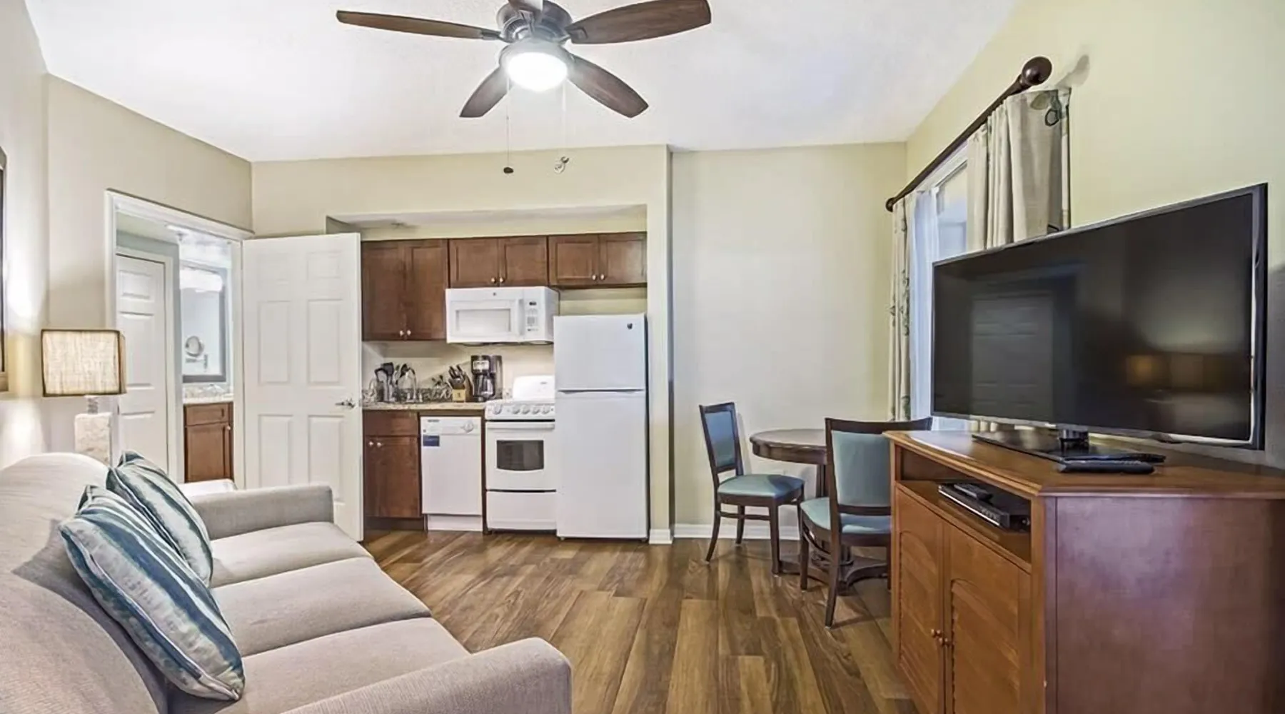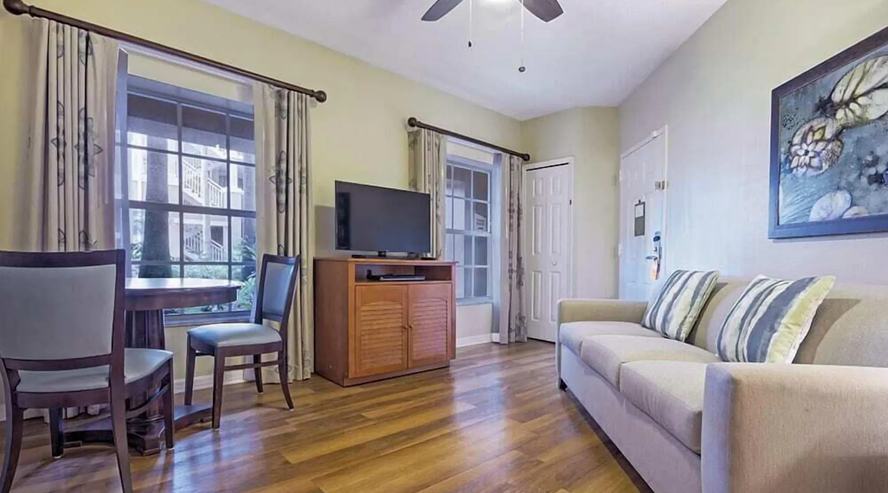 Summary: Whether your family is immersing themselves in old Florida history at Old Town Kissimmee or zip lining over alligators at Gatorland, Kissimmee offers endless adventures and new experiences to discover. The Space: Welcome to Club Wyndham Cypress Palms - 🎢 Deluxe 2BR Lockoff | Disney & Universal Fun Step into this spacious 2-Bedroom, 2-Bath Lockoff Retreat with 1,402 sq ft of comfort — perfect for families or friends ready for Orlando adventures! Sleeps up to 8 guests 🛏️ Sleep & Recharge Primary Bedroom: King bed + private bath Second Bedroom: King bed + private bath Living Areas: Queen sofa bed in main living room, second living area with queen sofa sleeper (most units) 🍳 Cook, Dine & Entertain Enjoy a full kitchen and dining area, plus a mini kitchen in the second living space (most units) — perfect for meals, snacks, or entertaining. Additional amenities include in-unit washer and dryer, ceiling fan, in-room safe, and DVD player. 🌴 Relax & Unwind Soak in the indoor and outdoor hot tubs (most units) or step out onto the balcony to enjoy the sights and entertain guests. 📸 Note: Interior features may vary. Bed types and configurations are determined by the property and may be subject to change. Photos may not reflect the exact unit you’ll be staying in. Your suite may vary. “Varies” refers to resort policy, not ours – the resort reserves the right to adjust bed sizes. Guest Access: While staying here, please enjoy the following amenities: Activities Center Activities Desk Barbecue Area Concierge Services Fitness Center Hot Tub (Outdoor) Owner Lounge Picnic Area Swimming Pool (Heated/Outdoor) Wi-Fi Internet Access Some may incur a fee Wireless Internet is free for up to 4 devices, ideal for emails and basic web browsing. For more streaming and surfing options on unlimited devices, Enhanced High-Speed Wireless Internet is available for $9.95 per day, $49.95 for 6-10 days, and $59.95 for 11-30 days. Pets are not permitted. Smoking in all rooms and on room balconies is strictly prohibited. Designated Smoking Sections are located in outdoor common areas of the Resort. Smoking of any kind in the room will result in a non-refundable $250 cleaning fee. No shows and early departures will not receive a refund. The entire balance (100%) will be forfeited. The Neighborhood: There are so many activities to enjoy in Kissimmee here are a few: Children's Activities Boating Golf Horseback Riding Jet Skiing Lake Live Entertainment Miniature Golf SeaWorld Orlando Theme Parks Universal Orlando Resort Walt Disney World Resort Water-Skiing Getting Around: Short walk to several well-known restaurants If you are using your vehicle's GPS system or an online mapping service for driving directions, please enter the following address: 5324 Fairfield Lake Drive Kissimmee, FL 34746 Other Things to Note: You expressly understand and agree that the resort may charge your credit card for any violation of the resort’s Rules and Regulations, including but not limited to violations of the smoking and pet policies and any damages to your room or the resort caused by you or your guests. Any violation of the resort’s Rules and Regulations may result in additional fines and penalties, including but not limited to the right to remove you and your guests from the resort premises without a refund. A credit card is required for the $250 security deposit at check-in. This deposit is fully refundable at checkout, provided no damage has occurred. No shows and early departures will not receive a refund. The entire balance (100%) will be forfeited. Service animals that are trained to work or perform tasks for the benefit of an individual with a disability are welcome at all Club Wyndham Managed locations and Not Managed locations. All other animals, trained or untrained, whose sole function is to provide emotional support, therapy, comfort, or companionship do not qualify as service animals and are not permitted at Club Wyndham Managed or Not Managed locations. This is a time-share resort. You will be a guest of the owner. You might be offered a gift for listening to the Wyndham timeshare presentation. This is NOT obligatory. Photos and descriptions are accurate but might not match your exact room. Similar to a hotel, condos are assigned at check-in. Upon arrival, you may request a specific building, floor, or view, and the resort staff will do their best to accommodate based on availability You may request as many keys as there are people staying in the condo. Keys are key cards and bracelets. If you need to change the name on the reservation for any reason, or modify the date range, or cancel after 24 hours, the resort charges a $99 modification fee.