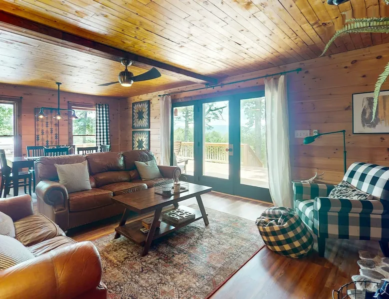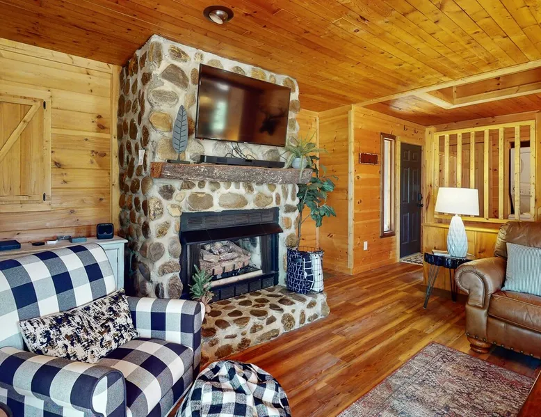 The space Hawk Hollow Escape to the picturesque mountains of Ellijay, GA, and stay in this charming dog-friendly house that offers the perfect blend of modern amenities and natural beauty. This spacious retreat features a hot tub, gas fireplace, and a firepit, making it ideal for a relaxing getaway with family and friends. Enjoy the stunning mountain views from the balcony or patio while grilling up a delicious meal on the gas grill. Inside, you'll find a well-equipped kitchen with all the essentials, including a fridge, stove, oven, dishwasher, microwave, coffee maker, and more. The cozy living room is the perfect spot to unwind after a day of exploring, with a TV for entertainment and a gas fireplace for added warmth. With multiple bedrooms, including a king bed, queen bed, double bed, and twin bed, there's plenty of space for everyone to rest comfortably. This house is conveniently located near a variety of attractions and activities, including winery tours, restaurants, cinemas, and live theater. Outdoor enthusiasts will love the proximity to hiking trails, mountain biking routes, fishing spots, and water tubing adventures. Whether you're seeking adventure or simply want to relax in nature, this house is the perfect home base for your Ellijay getaway. With thoughtful amenities like towels, linens, a first aid kit, and more provided, you can focus on making lasting memories during your stay. Book now and experience the beauty and tranquility of Ellijay in this wonderful mountain retreat. Things to Know Check-in time: 4:00 p.m. Check-out time: 10:00 a.m. All guests shall abide by Vacasa’s good neighbor policy and shall not engage in illegal activity. Quiet hours are from 10:00 p.m. to 8:00 a.m. No smoking is permitted anywhere on the premises. 1 dog(s), weighing 25lbs or less, are welcome in this home. No other animals are allowed without specific Vacasa approval. Parking notes: There is free parking available for 4 vehicles. Damage waiver: The total cost of your reservation for this Property includes a damage waiver fee which covers you for up to $3,000 of accidental damage to the Property or its contents (such as furniture, fixtures, and appliances) as long as you report the incident to the host prior to checking out. More information can be found from the "Additional rules" on the checkout page. Due to local laws or HOA requirements, guests must be at least 25 years of age to book. Guests under 25 must be accompanied by a parent or legal guardian for the duration of the reservation.