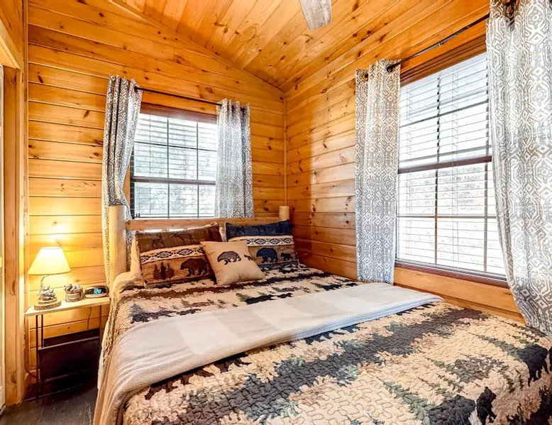 Welcome to Blue Ridge Overlook, your peaceful retreat in the heart of nature. Nestled among the trees, this cabin offers incredible views that make you feel like you’re in your own little world. Whether you’re looking to kick back and relax or get out and explore, this place has everything you need. It’s the perfect spot to recharge and enjoy the quiet beauty of the mountains. Once you’re here, you’ll see why it’s hard to leave. We can’t wait for you to experience it! The space Outside Immerse yourself in the ultimate outdoor experience with a bubbling hot tub, perfect for relaxing under the stars. Fire up the gas grill for a delicious barbecue, dine al fresco with your loved ones, and gather around the firepit for some marshmallow roasting and storytelling. Inside Step inside to find warm wood finishes and a crackling fireplace, setting the perfect mood for cozy evenings with a cup of cocoa or complimentary coffee and tea. Enjoy your favorite shows on the large TV, and take advantage of the fully equipped kitchen with granite countertops and stainless steel appliances to whip up gourmet meals. Bedrooms Retreat to two cozy bedrooms adorned with soft quilts and private TVs—perfect for unwinding after a day of adventure. The cabin features central air to keep you cool and a laundry room to keep things fresh, so all the essentials are covered. For additional sleeping space, a third bed is available via the pullout couch in the living area. Explore Ellijay Dive into local experiences with cider tastings, explore the rich history at the Tabor House & Civil War Museum, paddle down the Cartecay River, or hike the scenic trails of Springer Mountain. Your Perfect Getaway Pack your bags, round up your squad, and get ready for an unforgettable getaway at Blue Ridge Overlook – your perfect wilderness retreat awaits! Other things to note Dining Out If you're stepping out of the cabin for a bite to eat, check out these local favorites: 🍕 Ellijay Wood Fire Pizza (23 mins) 🥩🍣 Steak and Sushi (23 mins) 🍖 Shane's Rib Shack (23 mins) Breakfast Spots Start your day right with a hearty breakfast: 🍳 Mike's Ellijay Restaurant (20 mins) 🥞 Corner Store Cafe (20 mins) Wineries Explore four acclaimed wineries and vineyards, all within a short 30-minute drive! Museums Discover local history and fun at these museums, just 20 minutes away: 🖼️ Expedition BIGFOOT: The Sasquatch Museum 🖼️ Tabor House Museum 🖼️ Georgia Pinball Museum