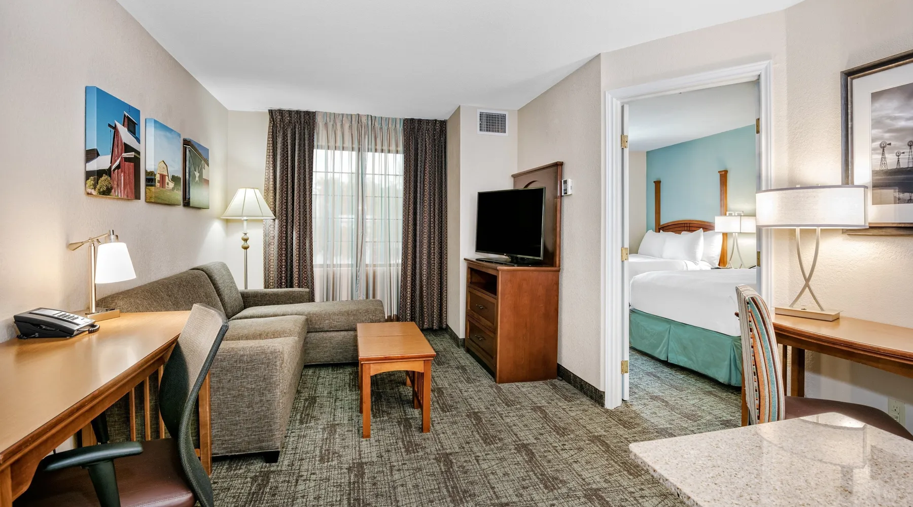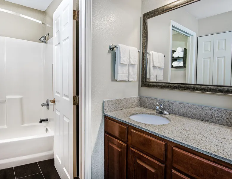 Enjoy a relaxing holiday in this super suburb when you stay in this equipped suite! Featuring an outdoor pool, a business center, complimentary, daily hot breakfast buffet, and more, you can't go wrong when you stay here. Our space features: • 1 Bedroom with 1 Queen bed • 1 Bedroom with 2 Double beds • Sofa bed for additional guests • Self-serve laundry machines and in-house dry-cleaning service • Air-conditioned living space • Cable television and DVD player • FREE Wi-Fi • Complimentary breakfast buffet with delicious options • Access to the business center • Fitness center on-site • Seasonal outdoor pool Near a number of corporate headquarters like Samsung, State Farm, Apple, and IBM, this is a great location for business travelers. Just a 14-mile drive from downtown Austin, you'll have all of the excitement of the big city at your fingertips, and after, you can relax in the quiet of the suburbs. There are 2 BEDROOMS. The first bedroom features 1 Queen bed and the second bedroom features 2 Double beds. There is a sofa bed in the living area for additional guests. Get ready in our 1 BATHROOM. We provide you with a hairdryer, towels, and complimentary toiletries. There are self-serve washing and drying machines available on-site. Same-day dry cleaning services are available. Retreat to our air-conditioned LIVING SPACE. Curl up and enjoy your favorite shows on our flatscreen TV or watch your favorite movie on the DVD player. Video rentals are available. You can easily connect with friends and family back home, courtesy of the complimentary Wi-Fi. Get some work done while you're away by taking advantage of the laptop-friendly space. In the KITCHEN you'll find a microwave, a dishwasher, a refrigerator, cooking utensils, and dishes. Start your morning with a cup of coffee, fresh from our in-suite coffee machine. In the morning, enjoy a complimentary breakfast buffet which features a variety of delicious options. There are a number of other amenities you're sure to enjoy when you stay at Staybridge Suites Austin-Round Rock where our space is conveniently located. These include use of the business center, fitness center access, meeting facilities, housekeeping services, the shared outdoor pool (which is open seasonally), evening receptions for guests with food and drink, and more! Guest services are available on-site to ensure a stress-free stay. If you're traveling by car, there is free parking available on-site. A number of these units are available, and each is individually decorated. The images shown are a representation of the unit you will receive. At check-in, you will receive a unit of the same type as shown in this listing, complete with the advertised size and number of rooms, but the actual decor in the unit, view, and furniture layout may differ. You will have access to all amenities advertised! A damage deposit of $15/day will be processed as a pre-authorization on your credit card and will be released after your departure provided there is no damage, items missing, or extra cleaning required. LOCAL FAVORITES If you're looking for some retail therapy, we suggest heading to the Round Rock Premium Outlet Mall. Catch a minor league baseball game at the Dell Diamond Stadium, and after, explore the local parks. Downtown Austin is just a quick 14-mile drive away! OTHER THINGS TO NOTE: • FREE Wi-Fi • Start your day with a complimentary breakfast • If you're traveling by car, there is free parking available on-site • A number of these units are available, and each is individually decorated. The images shown are a representation of the unit you will receive. At check-in, you will receive a unit of the same type as shown in this listing, complete with the advertised size and number of rooms, but the actual decor in the unit, view, and furniture layout may differ. You will have access to all amenities advertised! • A damage deposit of $15/day will be processed as a pre-authorization on your credit card and will be released after your departure provided there is no damage, items missing, or extra cleaning required • A light housekeeping service is provided from Monday to Friday and a full cleaning is provided every 7 days