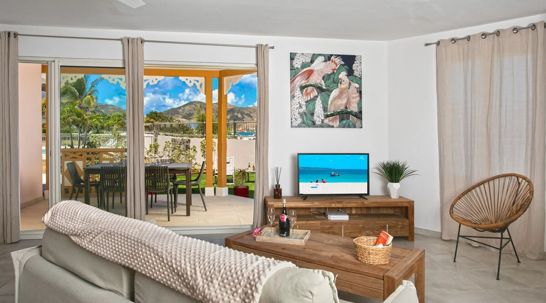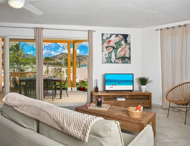 From the terrace of the apartment Siview, 2 options are available to you: the large swimming pool or the Beach of Oriental Bay!You could not dream better location ! At the ground floor the apartment is new , large and luminous! It consists of 2 bedrooms(king beds) with their shower rooms. The living room with an American kitchen opens onto a terrace with sea view and a small private garden . Amenities:Air conditioning, smart tv, wifi,safe,linen The space every window in this apartment lets you see the sea! Other things to note Note: The island of Saint-Martin may experience temporary interruptions in water and electricity services due to its island nature. We would like to inform you that we are making every effort to minimize inconveniences related to these situations beyond our control and liability.
