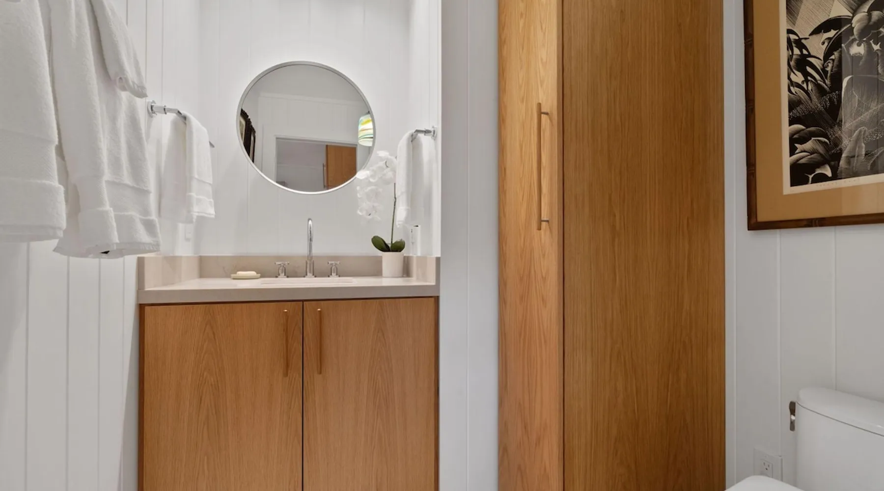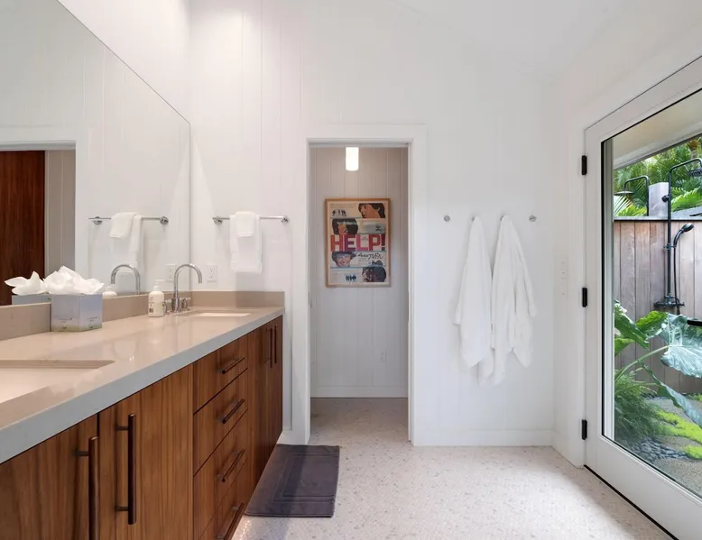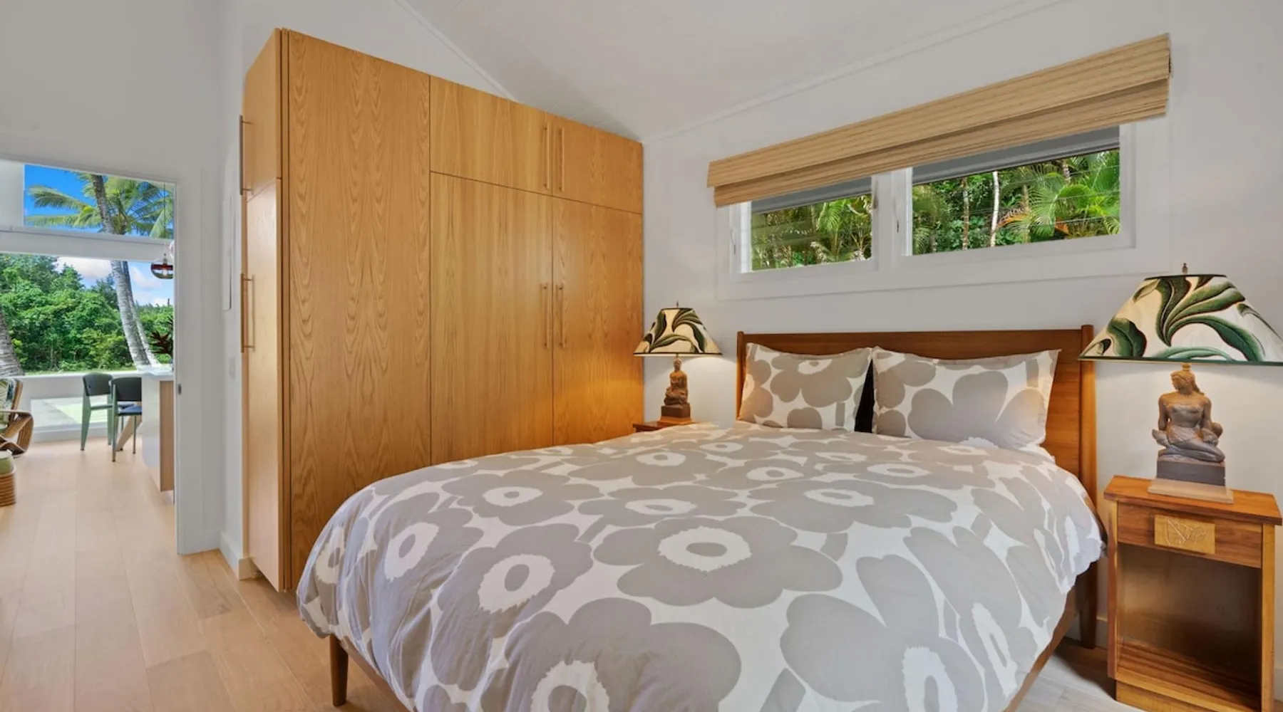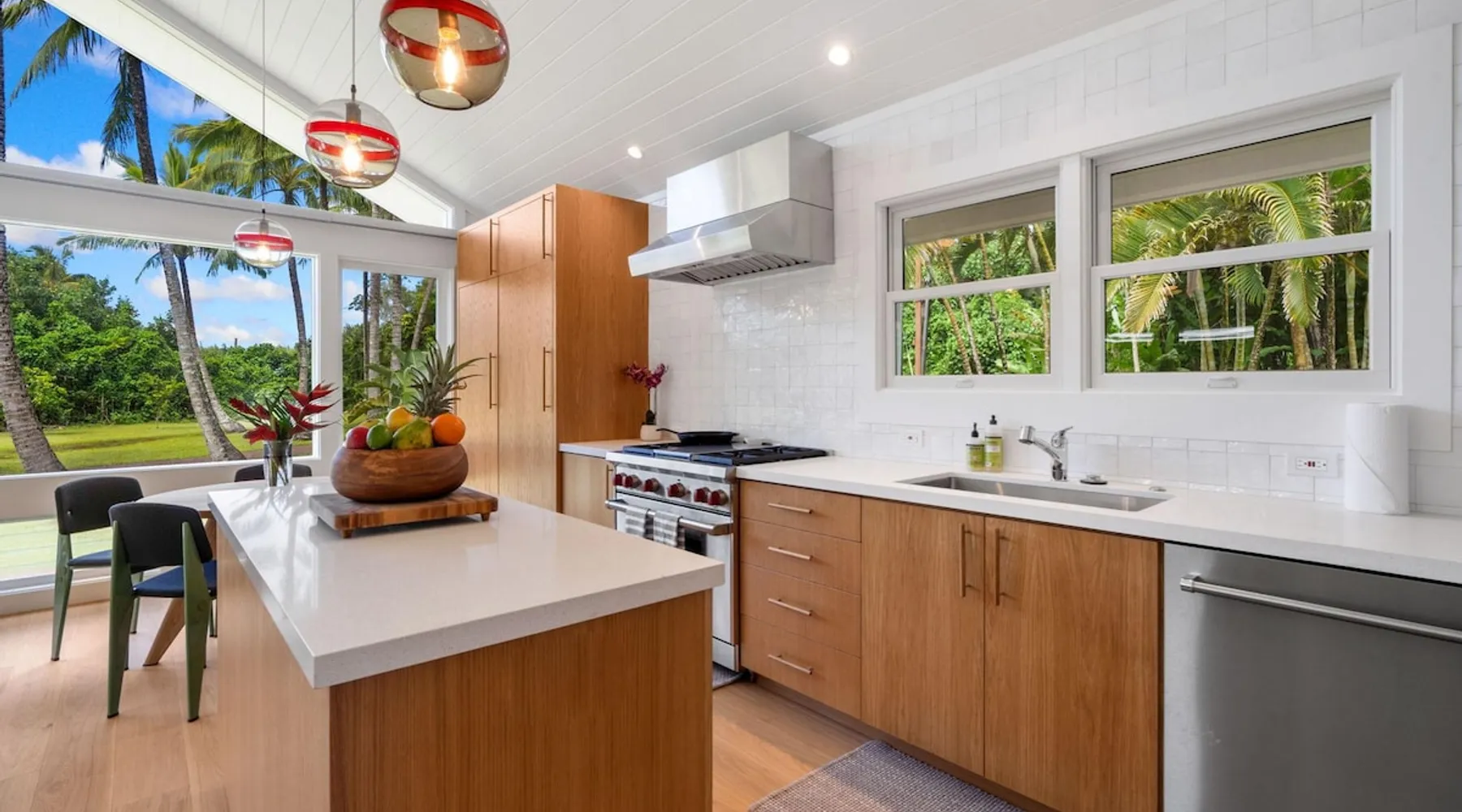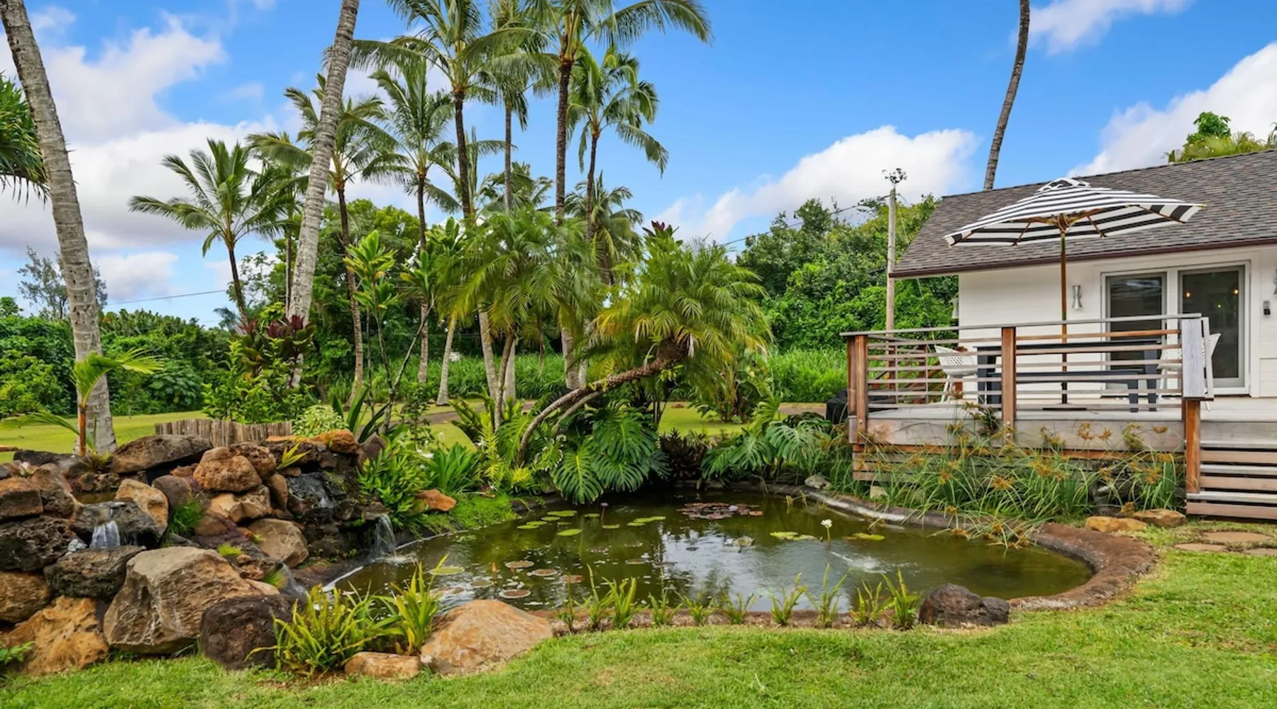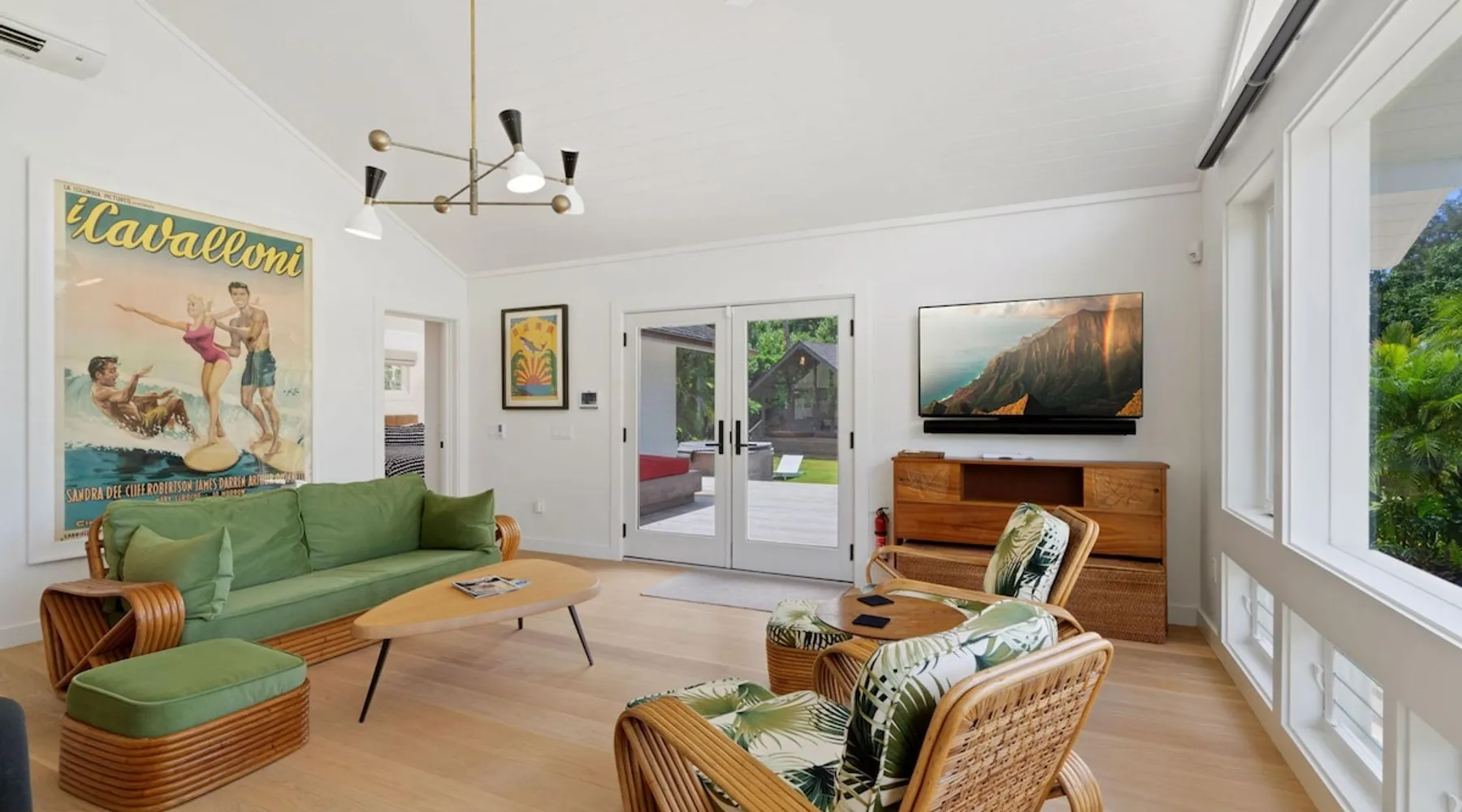 Coconut Hut The space A stylish reimagining of our ever-popular Coconut Hut. This perfectly positioned gem sits in a secluded park-like paradise within a 5-minute walk to the idyllic Anini beach. With new construction, the house contains hardwood floors, whole house water filtration, AC in all rooms, portable Sonos speakers, and WiFi indoors and on the deck. The living spaces boast a large fold out flat screen TV, Wolfe range with indoor grill, LG washer/dryer, dishwasher, refrigerator, and freezer with ice maker. There is a Heston outdoor bbq for grilling. The interior furnishings are a mix of vintage bamboo, midcentury classics, and koa wood Hawaiian furniture. The great room is filled with light, complete with an expansive view of the coconut trees on the property. A large remote-controlled shade allows for complete privacy, day or night, from the glass wall in the living room. The light and ambiance are fantastic throughout the house. It is serene and modern with a big nod to midcentury design, Hawaiian, and Asian art. Beautiful inside and out. The primary king bedroom includes a stunning bathroom with Toto toilet, dual sinks, private outdoor shower garden featuring unique Hawaiian plants and a redwood soaking tub. There are ample closets, built in storage, and a dresser. The secondary queen bedroom includes a bathroom with Toto toilet and an adjacent private outdoor shower garden featuring Hawaiian native plants. There is ample storage available in the second bedroom. The exterior includes a new, expansive deck with hot tub, outdoor dining, and built in daybed. The outdoor water features in the pond create a backdrop for relaxation. Enjoy looking up at the stars and taking in the vast surrounds. At the rear of the property, there is a private guest house that will remain unoccupied during vacation rentals and is not available to rent. Indoor Features: - 1 King, 1 Queen Bed - Air Conditioning in all rooms - Full Kitchen - Washer & Dryer Outdoor Features: - Lanai - Yard - Hot Tub - Grill The Area: - Short Walk to Anini Beach - 10 minute drive to Princeville - 20 minute drive to Hanalei Bay Hawaii Life Rentals is a locally owned, licensed real estate company with rentals on Kauai, Maui, Oahu, and Hawaii. We offer on-island personal assistance and Concierge services. Rates do not include taxes, cleaning and applicable fees. VRBO/Hawaii Life bookings: Guests must sign a rental contract within 48 hours of booking to confirm the reservation. * This home is located in a Tsunami Evacuation Zone * TA-199-886-0288-01 SP 2012-25 TVNCU 4243 Registration Details 530040180000, TA-199-886-0288-01