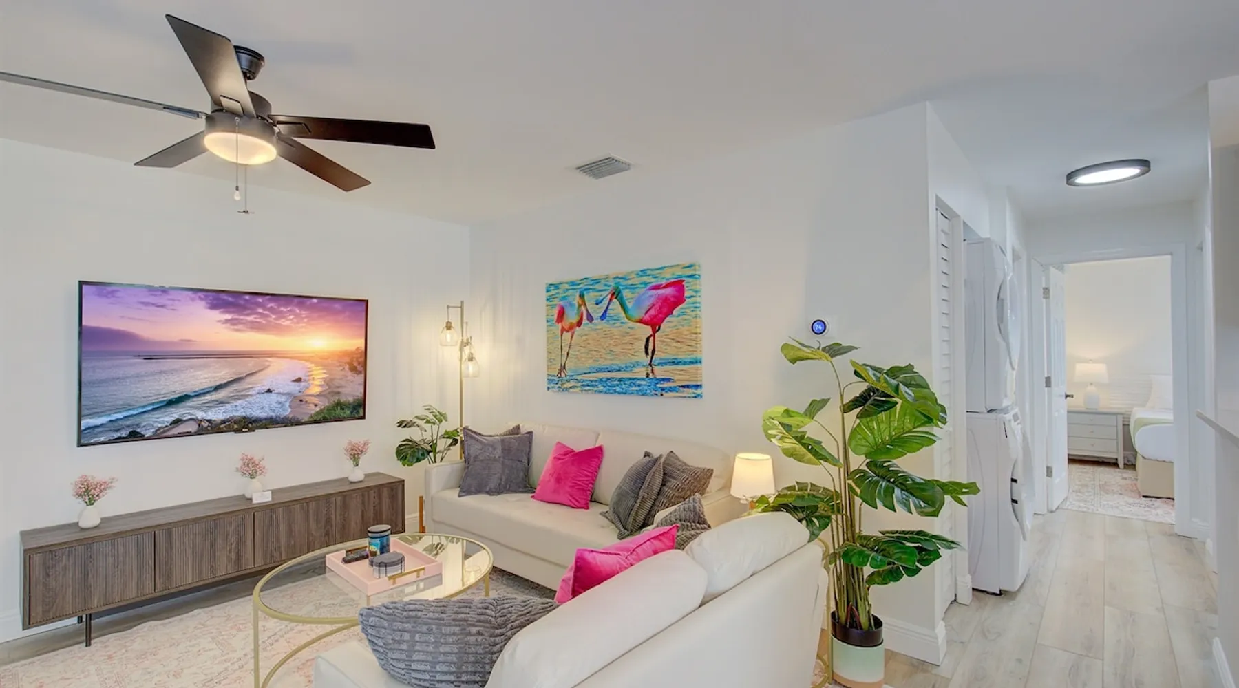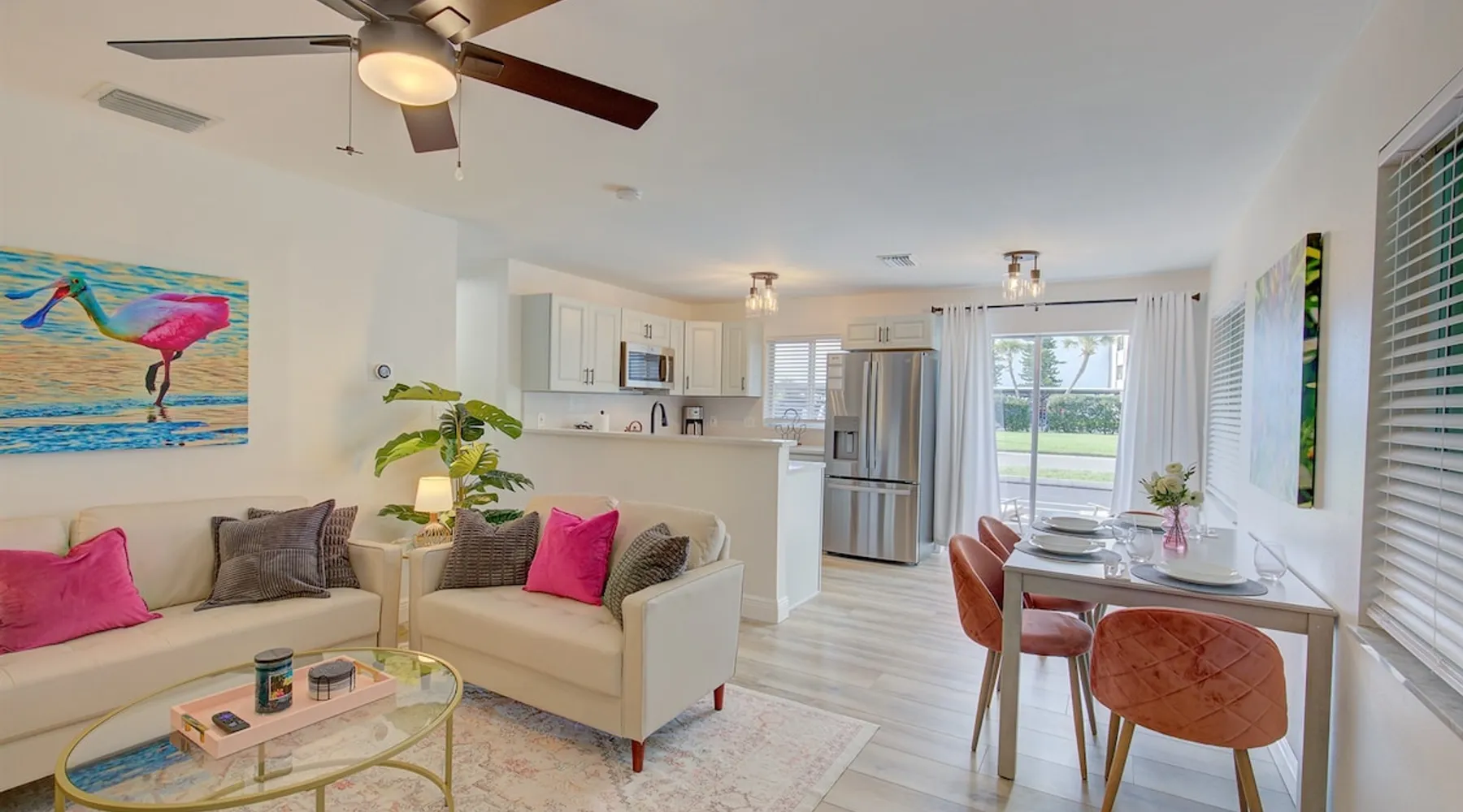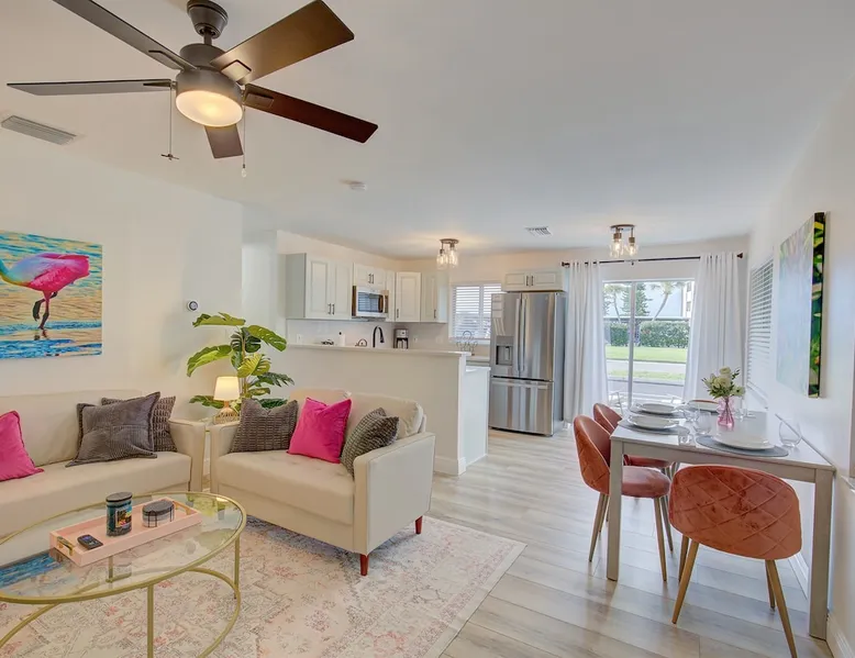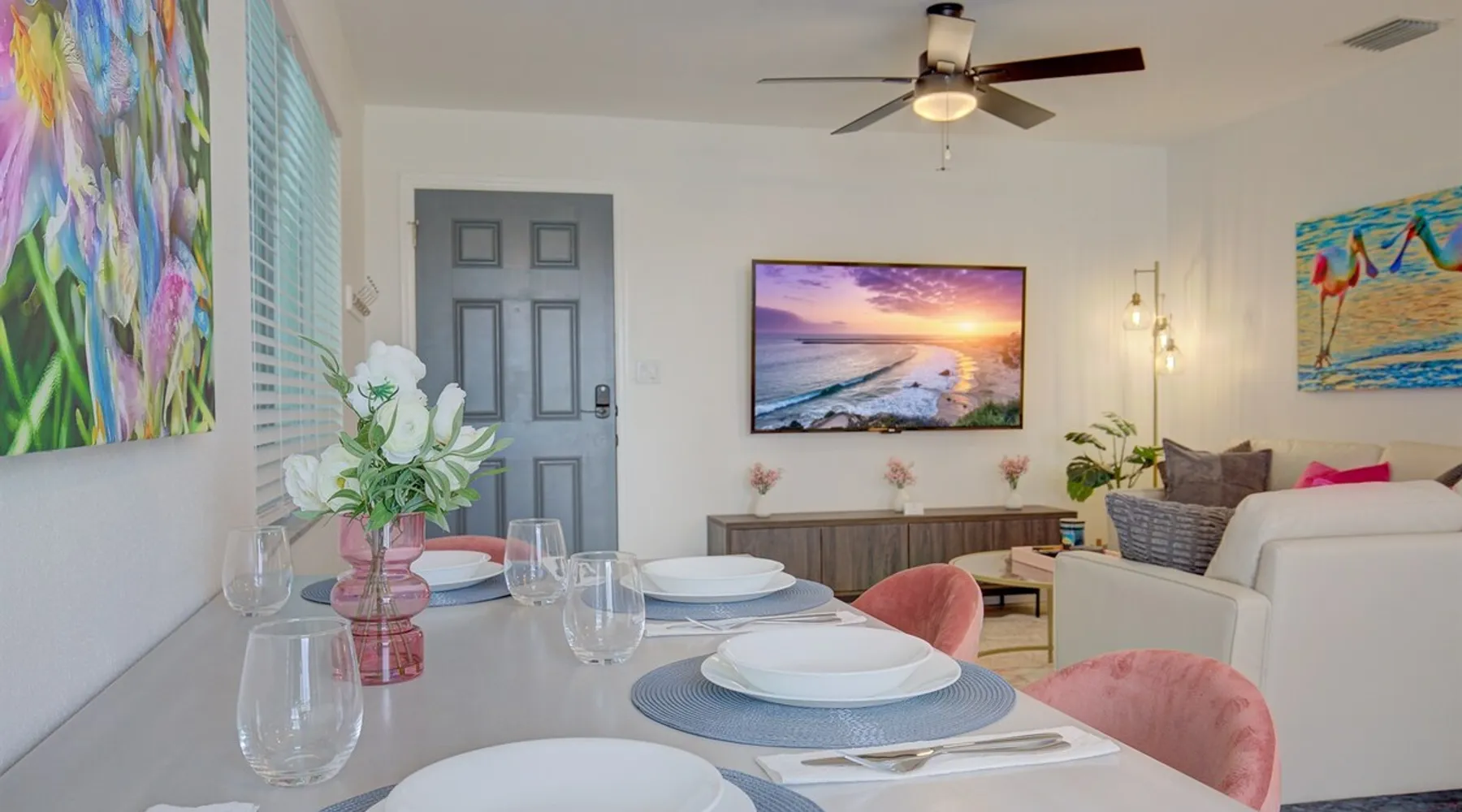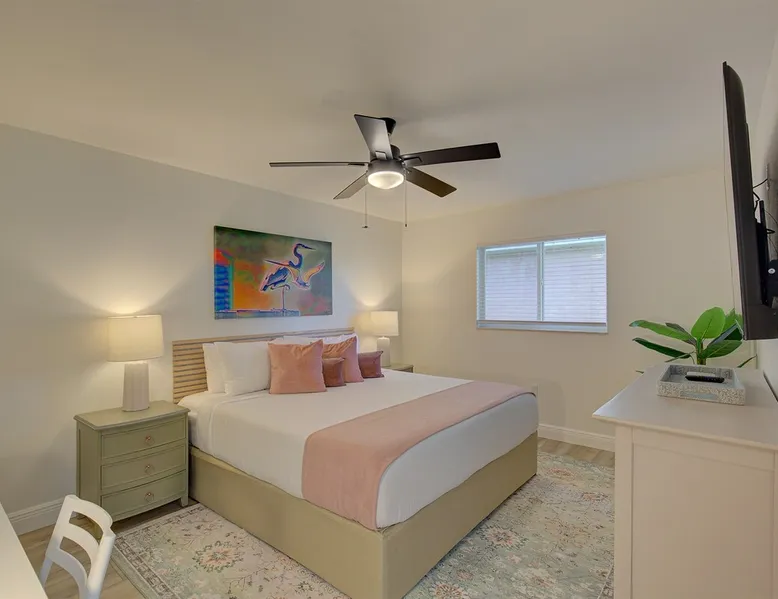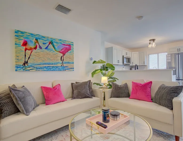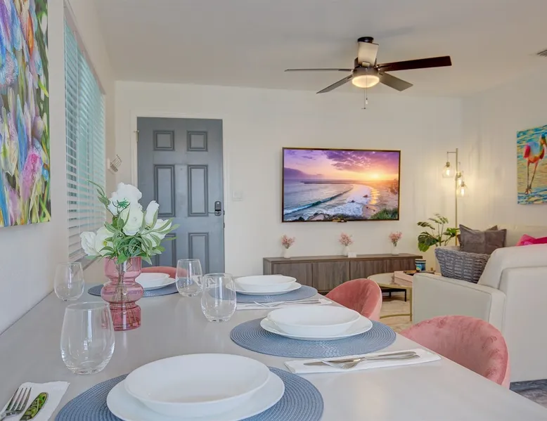 Welcome to Mai Tai Suites Dunedin With 100's Of Online 5⭐⭐⭐⭐⭐ Reviews ☞ 2 King Beds ☞ Parking Onsite 1 Space ☞ No Cleaning Fee ☞ 600 MPBS Mbps Wifi ☞ 2 Smart TVs (largest is 65 inches) Honeymoon Island Beach Pass Included ☞ Dog Friendly ☞ Fully Equipped + Stocked Kitchen ☞ Self Check-In ☞ Onsite Washer + Dryer ☞ Beach Towels & Cooler Provided 》35 Mins to airport 》2 Mins to Honeymoon Island 》15 Mins to Clearwater Beach 》 Not Small Child Friendly age 13+ is OK The space Welcome to Mai Tai Suites Dunedin, your perfect getaway in the charming city of Dunedin, Florida. This beautifully furnished rental offers two bedrooms and one bath, making it an ideal retreat for up to four people. Step into the stunning space and be greeted by a spacious living room, providing ample seating for all your guests. With two Smart TVs and WiFi, you'll have endless entertainment options at your fingertips. The fully equipped kitchen boasts modern appliances including a refrigerator, microwave, 4-burner cooktop, oven, dishwasher, and even a washer and dryer. Both bedrooms feature comfortable king-size beds adorned with fresh linens and pillows. The bathroom is well-stocked with towels, toiletries, and a bathtub with a shower for your convenience. Outside, you can take advantage of the small seating area provided for each unit, perfect for enjoying the beautiful surroundings. Mai Tai Suites Dunedin is ideally located near the causeway beach, where you can take a leisurely stroll and then stop by the High and Dry Grill for some refreshing treats. Explore the nearby attractions such as pristine beaches, parks, downtown Dunedin, and the Oldsmar Flea Market. You'll also find an array of restaurants and shops to satisfy your cravings for food and retail therapy. What sets this furnished rental apart is that it welcomes up to two dogs free of charge. So you can enjoy the comforts of home while exploring the natural beauty of Dunedin, Florida. If you prefer to dine in, the full-size kitchen allows you to prepare your own meals. However, if you're in the mood for some delicious food and beverages, a short stroll will take you to Frenchy's Outpost. For even more dining options and entertainment, downtown Dunedin is just a 3-mile drive away, offering a vibrant atmosphere and walkable shopping experiences. During your stay, be sure to visit Honeymoon Island or rent bicycles to explore the scenic Pinellas Trail. You can even take the ferry from Honeymoon Island to Caladesi Island for an unforgettable adventure. And if you're in the mood for some world-famous beach fun, Clearwater Beach is just a 15-minute drive away. With its pristine shores, excellent shopping opportunities, and vibrant nightlife, it's no wonder it's considered one of the best beaches in the country. To make your beach outings even more enjoyable, we provide towels, and a cooler for your convenience. And for those who like to stay on top of their laundry, there's a full-size washer and dryer inside the condo, along with an ironing board and iron. Whether you're planning an extended stay, a work-cation, a staycation, a girl's getaway, or you're a travel nurse or business executive in need of accommodation, Mai Tai Suites Dunedin welcomes you. Please note that our unit is not child-friendly, and children under 12 are not allowed. Come and experience the beauty of Dunedin while enjoying the comforts of home at Mai Tai Suites Dunedin. Guest access Key Pad Lock. Detailed opening instructions will be sent to you via email and or over the platform that you have booked with. It is important to read the details carefully to avoid any frustrations upon arrival to the property. The unit is not child friendly and children under 13 not allowed. Other things to note Welcome to Mai Tai Suites Dunedin this beautiful furnished rental located in the quaint city of Dunedin, Florida has two bedrooms, one bath and is the perfect getaway for up to 4 people. The stunning space has a spacious living room with plenty of seating to accommodate 4 guests. With 2 Smart TV's and WiFi, you can keep everyone entertained for hours. The fully equipped kitchen includes a refrigerator, microwave, 4 burner cook top, oven, dishwasher and washer and dryer. The two bedrooms each have a comfortable king size bed, with fresh linens and pillows provided. The bathroom is stocked with towels, toiletries, and a bathtub with a shower. Take advantage of the outdoor space with small seating area outside each unit. Enjoy a stroll on the causeway beach and stop for refreshments at the High and Dry Grill. Nearby attractions include the beaches, parks, downtown Dunedin, and the Oldsmar Flea Market. There are also plenty of restaurants and shops to explore. This furnished rental provides a free pass to Honeymoon Island and is also dog friendly up to two free of charge. Enjoy the comforts of home while exploring the beauty of Dunedin, Florida. Cook your meals in the full-size kitchen or take a short stroll over to Frenchy's Outpost for delicious food and beverages. Downtown Dunedin is just a 3-mile drive away and has great restaurants, entertainment as well as walkable shopping. Spend the day at Honeymoon Island or rent bicycles and tour the Pinellas Trail. Take the ferry from Honeymoon Island over to Caladesi Island. You're a 15-minute drive to world famous Clearwater Beach which has one of the best beaches in the country as well as shopping and nightlife. Beach towels and cooler provided There is a full-size washer and dryer inside the condo for your use as well as an ironing board and iron. Extended stays, work-cation, staycation, girl's getaway, travel nurses as well as business executives welcome. The unit is not child friendly and children under 12 not allowed. Your hosts are John and Karen Bickford of Bolton MA. We are not local however can always be reached via the platform, text and email. City of Dunedin Short Term Rental Registration License Number STVR-000097