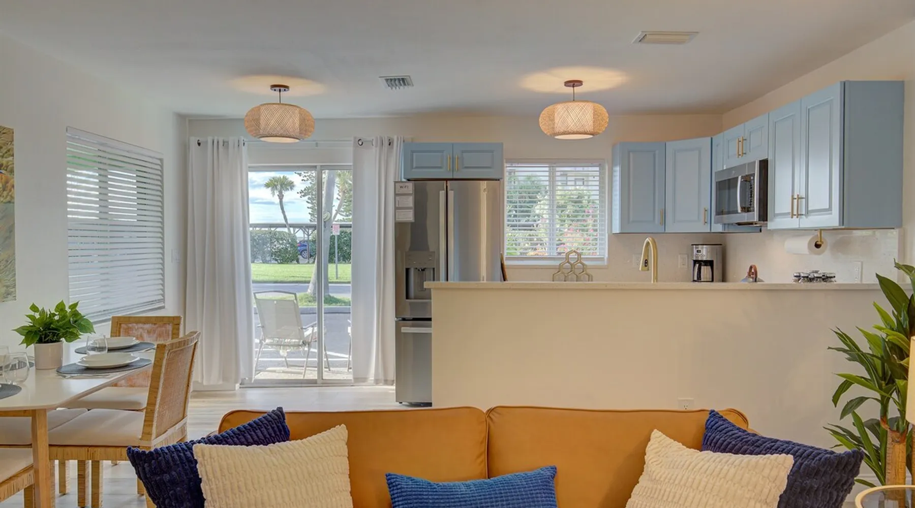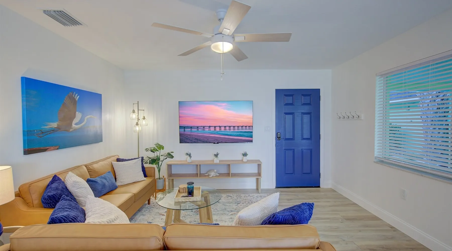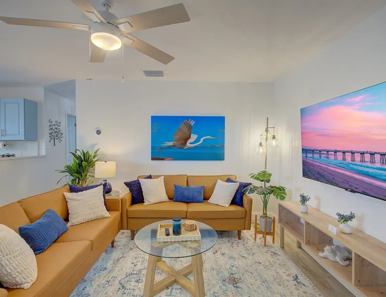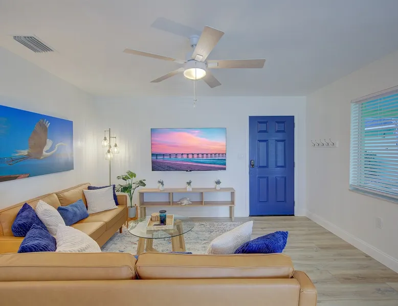 Welcome to Mai Tai Suites Dunedin With 100's Of Online 5 ⭐⭐⭐⭐⭐ Reviews ☞ 2 King Beds ☞ Parking Onsite 1 Space ☞ No Cleaning Fee ☞ 600 MPBS Mbps Wifi ☞ 2 Smart TVs (largest is 65 inches) Honeymoon Island Pass ☞ Dog Friendly ☞ Fully Equipped + Stocked Kitchen ☞ Self Check-In ☞ Onsite Washer + Dryer ☞ Beach Towels & Cooler Provided 》35 Mins to airport 》2 Mins to Honeymoon Island 》15 Mins to Clearwater Beach 》 Not Small Child Friendly age 13+ is OK The space Welcome to Mai Tai Suites Dunedin, your perfect getaway in the charming city of Dunedin, Florida. This beautifully furnished rental offers two bedrooms and one bath, making it an ideal retreat for up to four people. Step into the stunning space and be greeted by a spacious living room, providing ample seating for all your guests. With two Smart TVs and WiFi, you'll have endless entertainment options at your fingertips. The fully equipped kitchen boasts modern appliances including a refrigerator, microwave, 4-burner cooktop, oven, dishwasher, and even a washer and dryer. Both bedrooms feature comfortable king-size beds adorned with fresh linens and pillows. The bathroom is well-stocked with towels, toiletries, and a bathtub with a shower for your convenience. Outside, you can take advantage of the small seating area provided for each unit, perfect for enjoying the beautiful surroundings. Mai Tai Suites Dunedin is ideally located near the causeway beach, where you can take a leisurely stroll and then stop by the High and Dry Grill for some refreshing treats. Explore the nearby attractions such as pristine beaches, parks, downtown Dunedin, and the Oldsmar Flea Market. You'll also find an array of restaurants and shops to satisfy your cravings for food and retail therapy. What sets this furnished rental welcomes up to two dogs free of charge. So you can enjoy the comforts of home while exploring the natural beauty of Dunedin, Florida. If you prefer to dine in, the full-size kitchen allows you to prepare your own meals. However, if you're in the mood for some delicious food and beverages, a short stroll will take you to Frenchy's Outpost. For even more dining options and entertainment, downtown Dunedin is just a 3-mile drive away, offering a vibrant atmosphere and walkable shopping experiences. During your stay, be sure to visit Honeymoon Island or rent bicycles to explore the scenic Pinellas Trail. You can even take the ferry from Honeymoon Island to Caladesi Island for an unforgettable adventure. And if you're in the mood for some world-famous beach fun, Clearwater Beach is just a 15-minute drive away. With its pristine shores, excellent shopping opportunities, and vibrant nightlife, it's no wonder it's considered one of the best beaches in the country. To make your beach outings even more enjoyable, we provide beach towels, and a cooler for your convenience. And for those who like to stay on top of their laundry, there's a full-size washer and dryer inside the condo, along with an ironing board and iron. Whether you're planning an extended stay, a work-cation, a staycation, a girl's getaway, or you're a travel nurse or business executive in need of accommodation, Mai Tai Suites Dunedin welcomes you. Please note that our unit is not child-friendly, and children under 12 are not allowed. Come and experience the beauty of Dunedin while enjoying the comforts of home at Mai Tai Suites Dunedin. Guest access Key Pad Lock. Detailed opening instructions will be sent to you via email and or over the platform that you have booked with. It is important to read the details carefully to avoid any frustrations upon arrival to the property. The unit is not child friendly and children under 13 not allowed. Other things to note Welcome to Mai Tai Suites Dunedin this beautiful furnished rental located in the quaint city of Dunedin, Florida has two bedrooms, one bath and is the perfect getaway for up to 4 people. The stunning space has a spacious living room with plenty of seating to accommodate 4 guests. With 2 Smart TV's and WiFi, you can keep everyone entertained for hours. The fully equipped kitchen includes a refrigerator, microwave, 4 burner cook top, oven, dishwasher and washer and dryer. The two bedrooms each have a comfortable king size bed, with fresh linens and pillows provided. The bathroom is stocked with towels, toiletries, and a bathtub with a shower. Take advantage of the outdoor space with small seating area outside each unit. Enjoy a stroll on the causeway beach and stop for refreshments at the High and Dry Grill. Nearby attractions include the beaches, parks, downtown Dunedin, and the Oldsmar Flea Market. There are also plenty of restaurants and shops to explore. This furnished rental provides a free pass to Honeymoon Island and is also dog friendly up to two free of charge. Enjoy the comforts of home while exploring the beauty of Dunedin, Florida. Cook your meals in the full-size kitchen or take a short stroll over to Frenchy's Outpost for delicious food and beverages. Downtown Dunedin is just a 3-mile drive away and has great restaurants, entertainment as well as walkable shopping. Spend the day at Honeymoon Island or rent bicycles and tour the Pinellas Trail. Take the ferry from Honeymoon Island over to Caladesi Island. You're a 15-minute drive to world famous Clearwater Beach which has one of the best beaches in the country as well as shopping and nightlife. Beach towels and cooler provided There is a full-size washer and dryer inside the condo for your use as well as an ironing board and iron. Extended stays, work-cation, staycation, girl's getaway, travel nurses as well as business executives welcome. The unit is not child friendly and children under 13 not allowed. Your hosts are John and Karen Bickford of Bolton MA. We are not local however can always be reached via the platform, text and email. City of Dunedin Short Term Rental Registration License Number STVR-000097