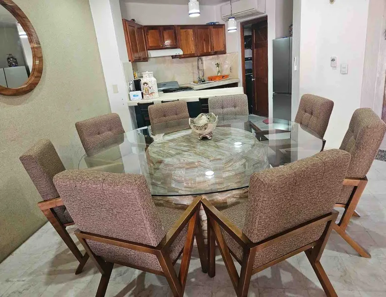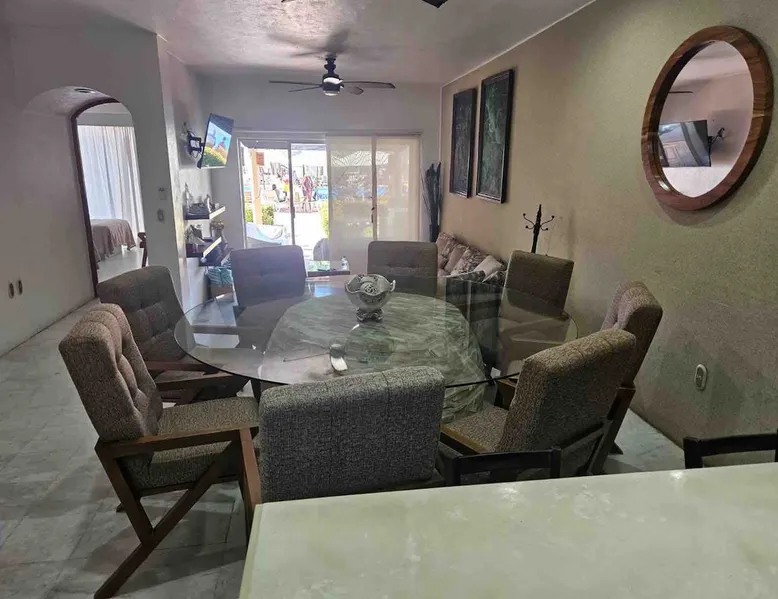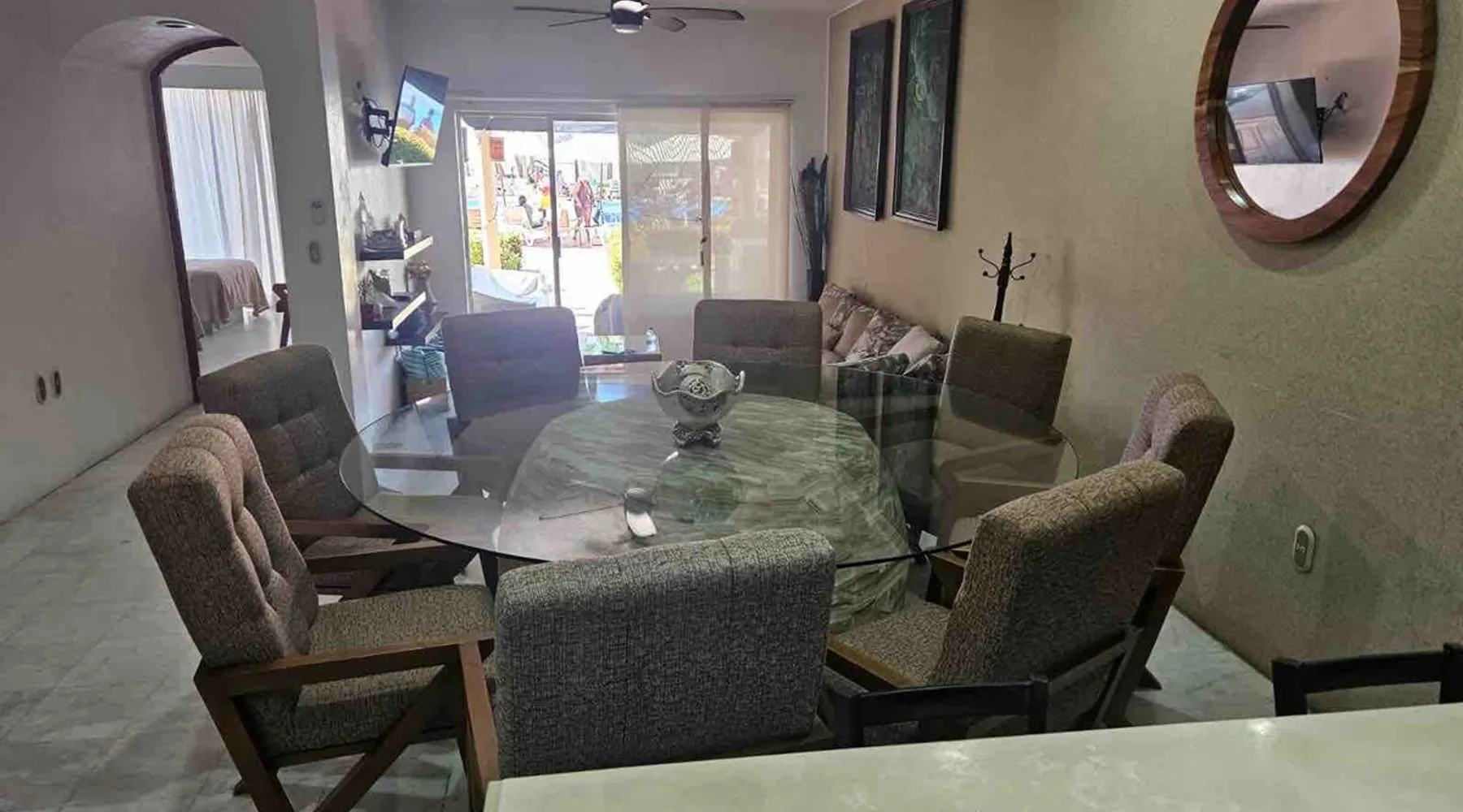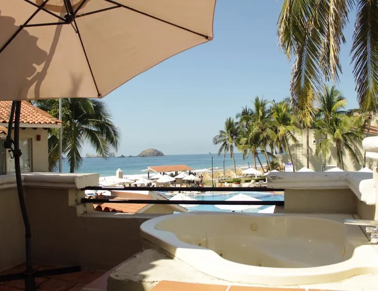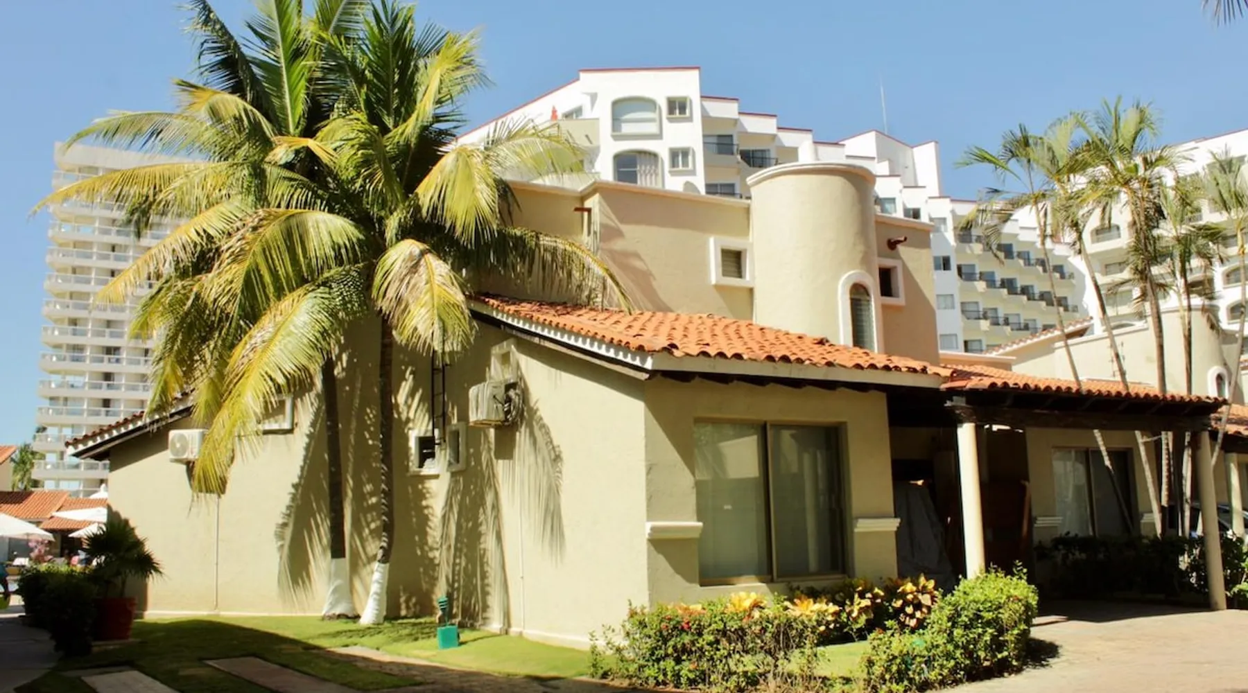 The ideal place to spend an unforgettable stay in Ixtapa. Relax in the breeze, listen to the waves or be amazed by the stunning sea view. The villa is located inside the hotel Tesoro, in the hotel zone. Right in front of the hotel pool, with access to the beach to go for a walk, swim and enjoy. You have restaurants, bars, private parking immediately at the entrance, activities, as well as all services and additional netflix, telecable and fiber optic Internet The space Beautiful beachfront house with capacity for 12 guests with 4 bedrooms (3 with sea view), all with large closet, vanity, air conditioning, and excellent quality bed items so you have the rest you deserve. The main one has a terrace and a jacuzzi with an incredible sea view, 4 bathrooms complete with hot water and towels. The dining room with bar for 9 people in total, is the ideal place to enjoy a good coexistence during the meal. The fully equipped kitchen, with all the utensils, appliances and storage spaces you need. 2 large and comfortable rooms to relax and have a good time (one of them inside the house, overlooking the pool, and the second located on the terrace with a breakfast room and the pool right in front of you). It has a 24-hour surveillance booth Guest access An ideal studio for home office and home schooling (large desk and comfortable chair with excellent wifi reception). The common areas have a large garden, swimming pool and direct access to the beach, here you can enjoy sunbathing in the loungers of the pool and the beach. For your convenience, you have a washer and dryer inside the villa. As well as cleaning service (if you require it) Other things to note You can access for free all the activities offered by the hotel such as stretching class, zumba, water volley-ball, aquaerobics, children's game, volley-ball tequila, water football, beach volley-ball, board games, mini club activities and the night show
