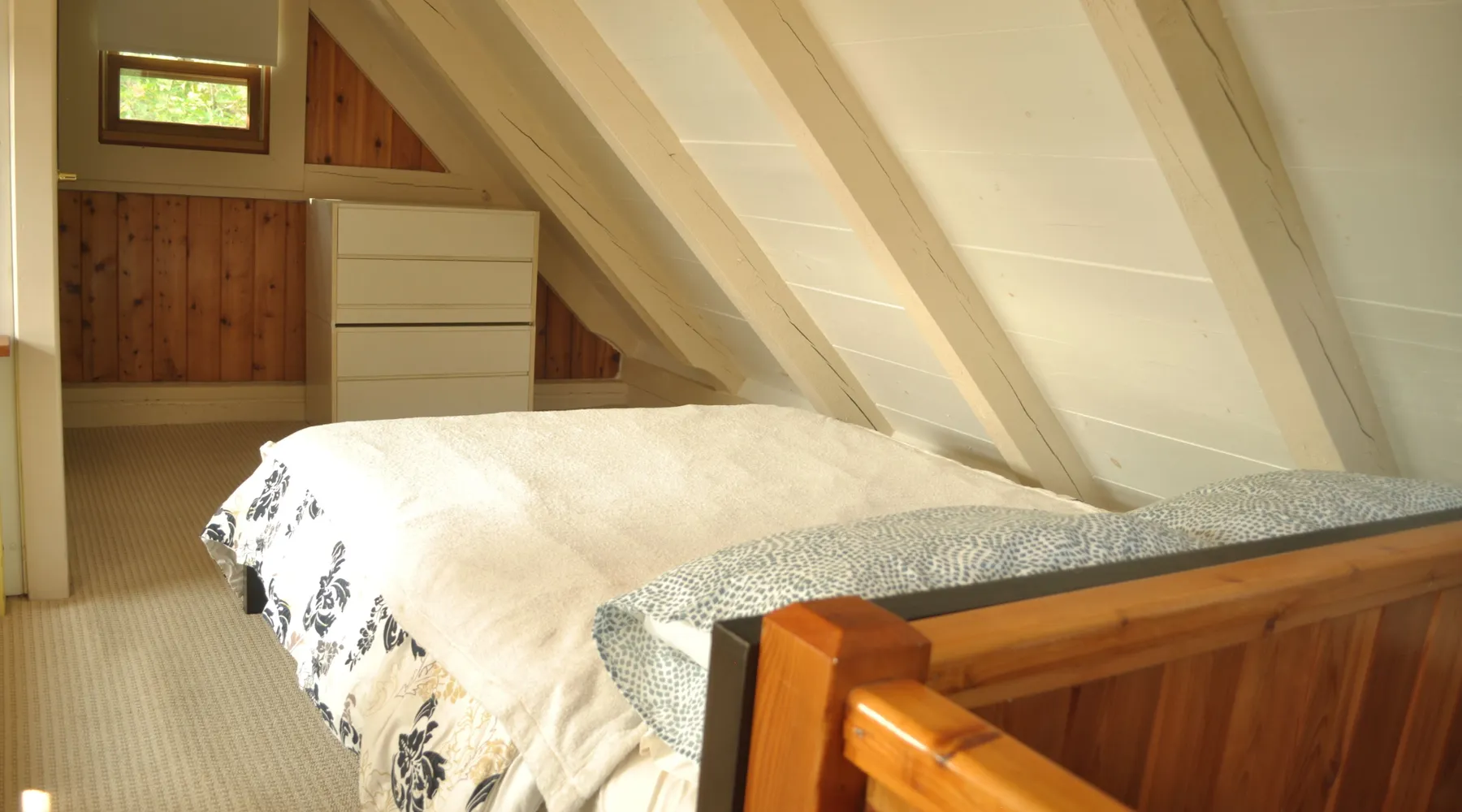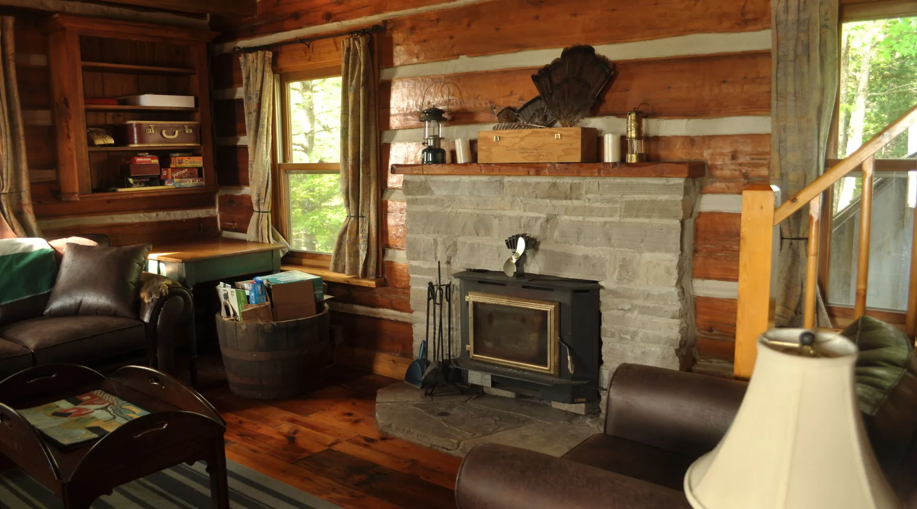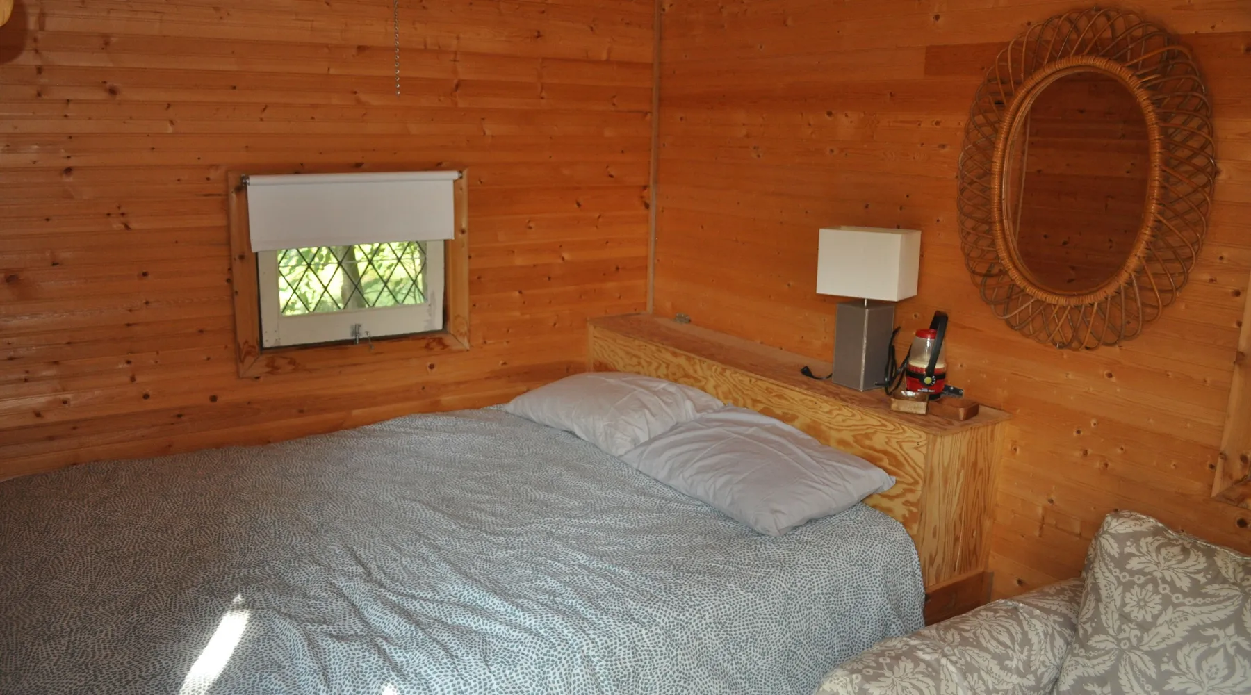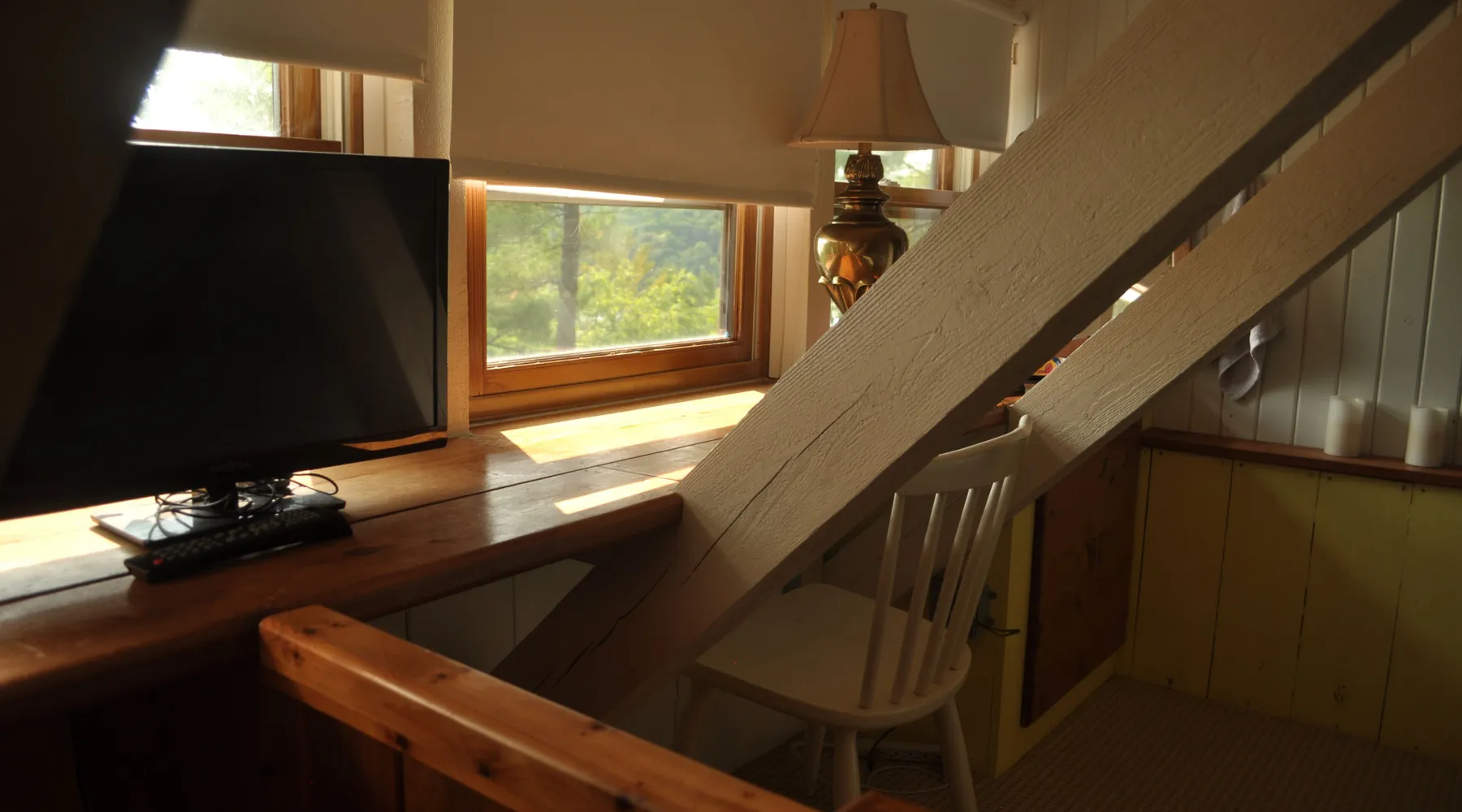 With stunning views from the highest point on the lake, a wrap-around deck, wood-fired sauna with outdoor shower and 4+ acres of privacy, the Upper Deck is the perfect off-grid getaway for those who are looking slow down, relax, and unwind. If you're looking for a modern drywall-and-tile Muskoka party house, this isn't it. This is a place where you come to watch the smooth waters of the lake and listen to the sounds of the forest. If you're lucky, you'll see our local wildlife, which includes deer, foxes, porcupines, owls, eagles and more! The master bedroom upstairs has a queen bed, half-bath, and breathtaking views of the lake from a built-in desk (if you absolutely have to answer that one email, but we really recommend you don't). Downstairs is a full bath (shower only, no tub), but we highly recommend using the private and screened outdoor shower by the sauna (only occasionally will you get an audience of squirrels). If you're inclined to share this beautiful hideaway with your friends, adjacent to the main cabin are a pair of bunkies with their own shared deck. Each bunkie contains a built-in queen bed and sitting area with a loveseat, and has large windows that you can open to catch the night-time breeze up the cliff from the lake. For those times when you've got last-minute additions to your group, there is a queen-size pull-out couch in the main cabin. The highlight of this property isn't what's inside, though, it's what's outside. Nearly 1,000sq ft of deck wrap around three sides of the main cabin and give panoramic views down the length of Gull Lake, one of the largest lakes in the area. A picnic table, sun umbrella and outdoor seating (including two hand-finished wooden Muskoka chairs) mean you'll want to spend every spare minute you've got soaking up the sun and enjoying a cold drink (Coleman cooler provided, we recommend picking up ice and ice cream at Kawartha Dairy). For those days when the weather won't co-operate, there is a gorgeous screened-in porch with a day bed (which is amazing for afternoon naps even on sunny days). When the weather is a bit cooler, hidden under the deck is a cedar-panelled wood-fired sauna (firewood provided), and the previously-mentioned outdoor shower. The Upper Deck is off-grid and powered by solar. There is a backup generator in the event the sun suddenly takes an extended vacation, but you've got enough battery power for the general living. High-draw and high-use appliances (hotplates, heaters, air-conditioners or big stereos) may draw down the batteries quickly and leave you in the dark. Our experience has been that if you're just using normal amounts of power (this includes high-draw items that are only used occasionally, like an electric kettle or an air fryer), the system will run indefinitely. Phone chargers, laptops, TVs, etc aren't going to cause a problem, even if it's been cloudy for a few days. Heat is propane or wood. Both are provided, more details will be given once your booking is confirmed. We cut and split our own wood from the property, please do not bring in firewood from off-site (this can transport invasive species and diseases to our beautiful forest). We provide sparkless fire logs for the fireplace on the deck since there's no hearth to catch sparks from real wood. The property includes private waterfront on Gull River, with easy access to Gull Lake. The waterfront is about a 5min walk down a walking trail, a map will be provided once booking is confirmed. Please bring your own life jackets and water toys. For those of you bringing boats, there are several launches on the lake, or you can launch at Rotary Park in Minden and boat down the river to the lake. There are no dock facilities at the Upper Deck, however we have a place on the lake nearby (a 10 minute walk to the cabin) and we can generally arrange moorings for most types of boats. The lake has excellent fishing and is great for water sports or simply cruising around. We want you to enjoy your time at the Upper Deck as much as we do when we stay there, please treat it with love and respect and come back often. If you have any questions, special requests, or compliments, send us a message!