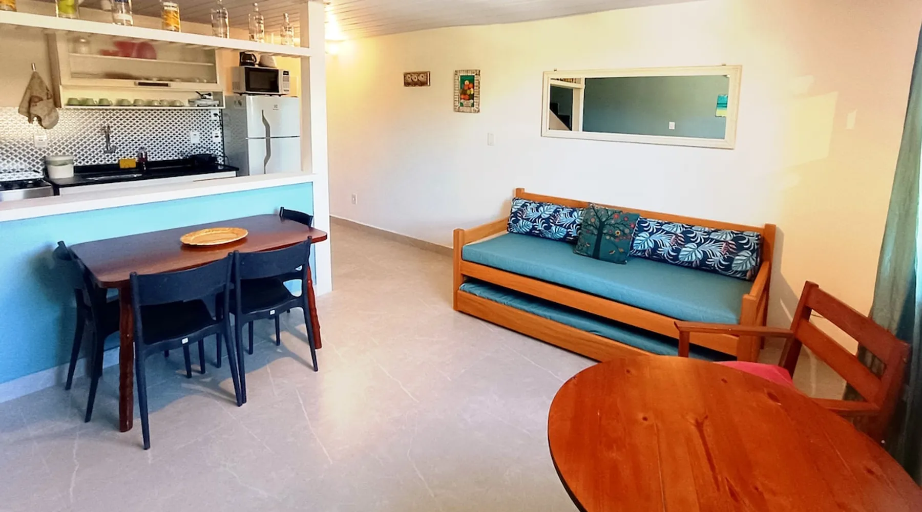 The space Recently renovated 2-storey apartment in the city centre with American kitchen, living room with TV and DVD, 1 sofa and 1 sofa bed below and two bedrooms on the mezzanine: one with double bed and one single bed, the other with king bed and TV. All mattresses are from the ortobom brand and new (purchased in 2013). The last renovation of the apartment is very recent (March 2013). Great position, in a quiet corner near Rua das Pedras, the heart of the city, with the best restaurants (David and Buzin are my favorites but there are many more in Orla Bardot too), bars (like the Renaissance and the Annex)and nightclubs (Pacha and Privilege that was chosen best nightclub in Brazil in 2012) ; the nearest beach (from Canto) is 150 meters away; in a few minutes walking you can reach any of the wonderful 23 beaches of the peninsula (like Azeda, Ferradura, João Fernandez, Brava and Olho de Boi) The bus station is 150 meters from the apartment. Cozy two floors apartment close to Rua das Pedras with fully furnished kitchen, living room with 2 sofas (one of which is a double sofa-bed) TV and DVD, table and a bathroom on the first floo; two bedrooms with 1 king, 1 queen and 1 single bed, plus a wardrobe and another TV on the second floor. All beds are brend new, bought in 2013. In a quite side street in the very heart of the town, close to all the best restaurants (I recommend o David and the Buzin among all), shops, bars (Renascimento and Anexo are my favorites, but it's plenty of them) and clubs (Pacha where you can find DJs coming from Ibiza and Privilege who won he best club of Brazil's Prozac in 2012). The closest beach (praia do canto) is only 150 meters away, more beutiful beaches (praia dos ossos, azeida, azeidinha, joao fernandez, brava and olho de boi) can be reached within 15 minutes walking. Boat tours for all the best beaches in town start 300 meters away. Rodoviaria (bus terminal) is only 150 meters away.