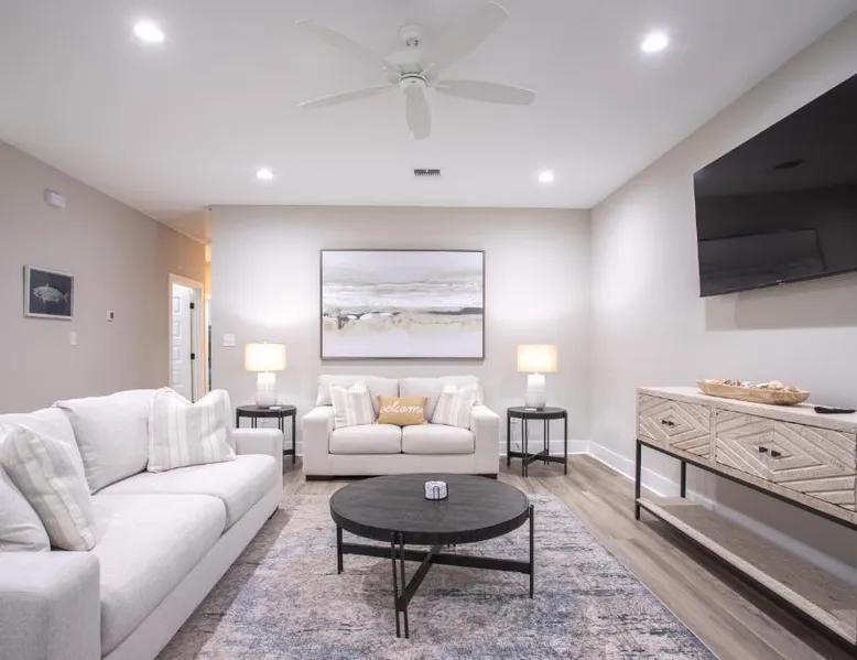 Beachfront Living: Waveland Beach Cottages in Waveland offers a private beach area and a saltwater swimming pool. Guests enjoy free WiFi throughout the property. Comfortable Amenities: The holiday home features air-conditioning, a balcony, and a washing machine. Additional amenities include a hot tub, outdoor seating area, family rooms, live music, and barbecue facilities. Convenient Location: Located 22 mi from Gulfport-Biloxi International Airport, the property is near attractions such as Diamondhead Country Club (12 mi) and West Side Park And Splash Pad (19 mi). Free on-site private parking is available. Highly Rated by Guests: Guests appreciate the recently renovated property, excellent facilities, and quiet street views. Featuring a private entrance, this air-conditioned holiday home consists of 1 living room, 3 separate bedrooms and 2 bathrooms with a bath and a shower. Guests will find a stovetop, a refrigerator, a dishwasher and kitchenware in the fully equipped kitchen. The holiday home also offers a barbecue. A seating area with a flat-screen TV, a washing machine and a patio are provided in this spacious holiday home. The unit offers 3 beds.