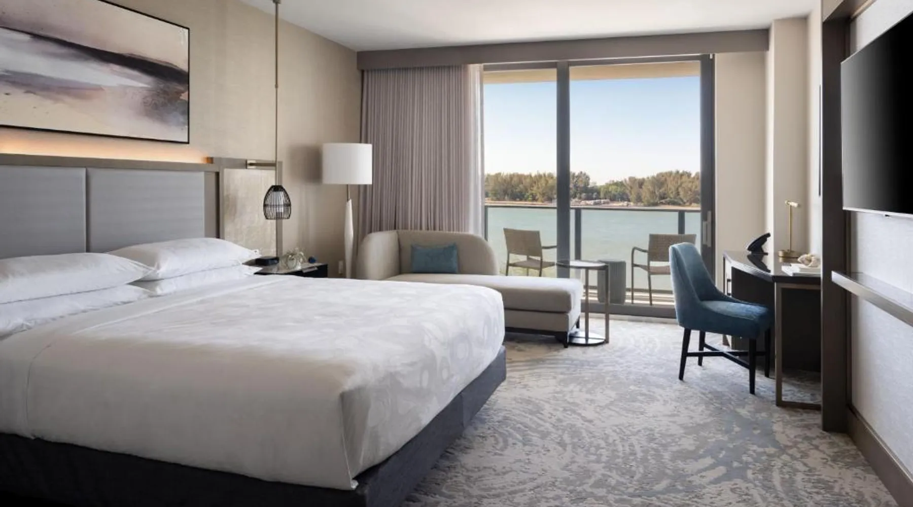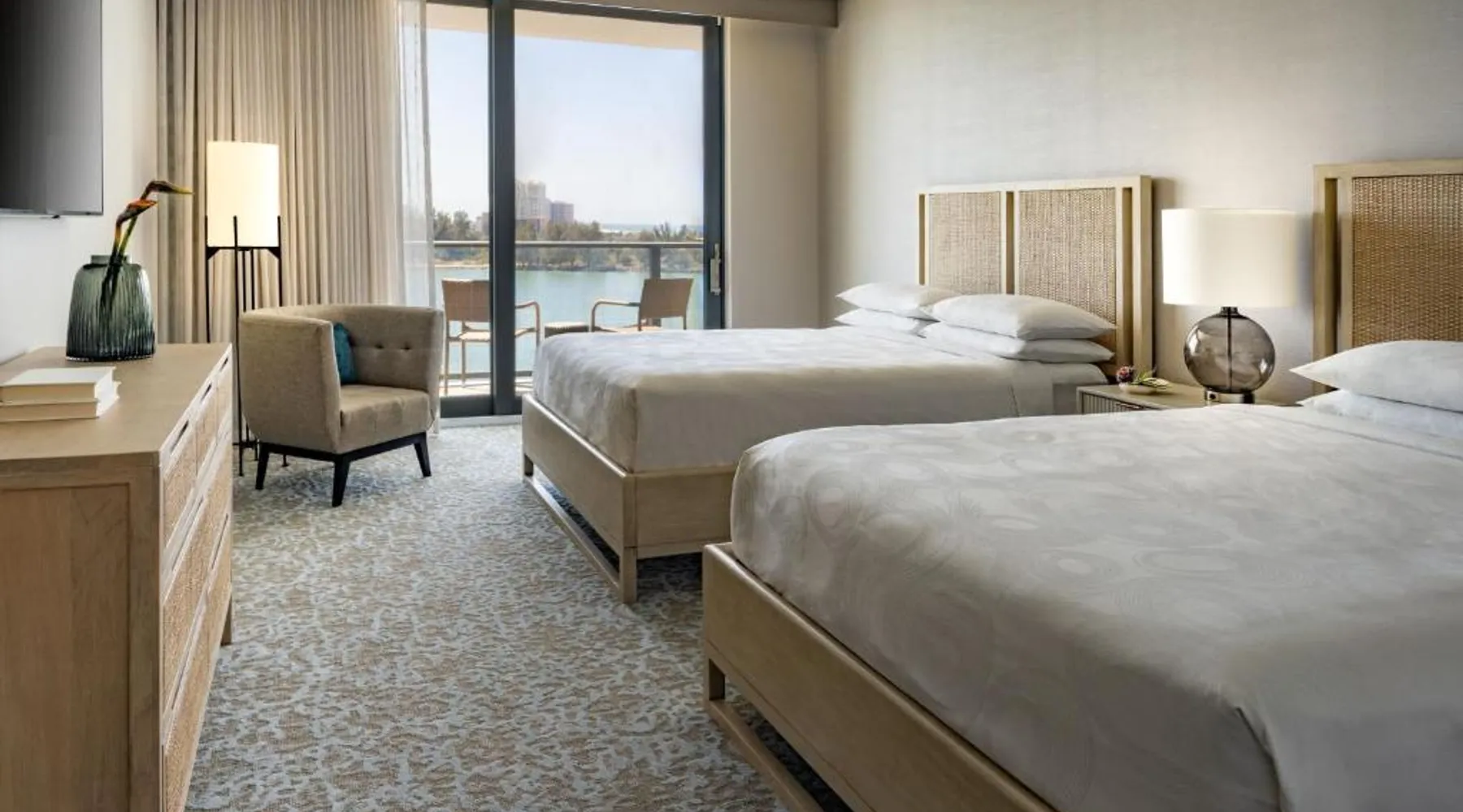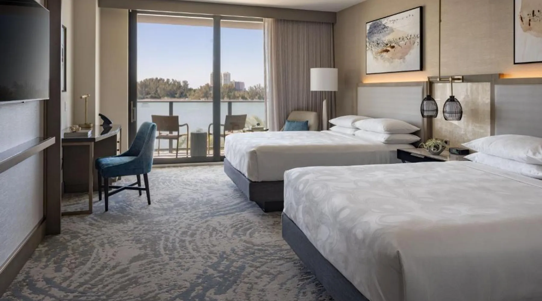 Beachfront Location: JW Marriott Clearwater Beach Resort & Spa in Clearwater Beach offers direct beachfront access and a private beach area. Guests enjoy stunning sea views and a rooftop swimming pool. Comfortable Accommodations: Rooms feature air-conditioning, balconies, and private bathrooms. Additional amenities include free WiFi, streaming services, and modern conveniences such as coffee machines and refrigerators. Dining Experience: The family-friendly restaurant serves American, Mediterranean, Seafood, and international cuisines. Dining options include lunch, dinner, and cocktails in a traditional, modern, or romantic ambiance. Leisure Activities: Guests can enjoy yoga and fitness classes, a fitness center, sun terrace, and free use of bicycles. Boating is available in the surrounding area. Convenient Location: Located 12 mi from St. Pete-Clearwater International Airport, the resort is near attractions like Belleair Beach (1.7 mi) and Pier 60 (3.1 mi). Highly rated for beach access, staff, and location. This air-conditioned double room is consisted of of a flat-screen TV with streaming services, a private bathroom as well as a patio. The unit has 2 beds.