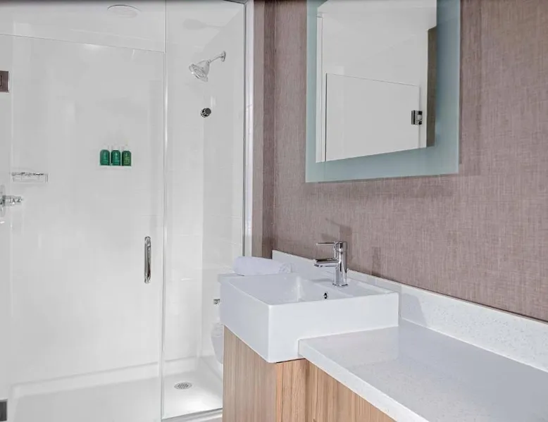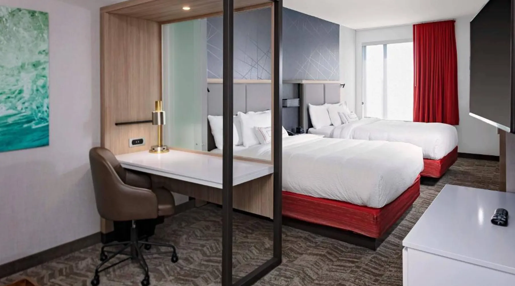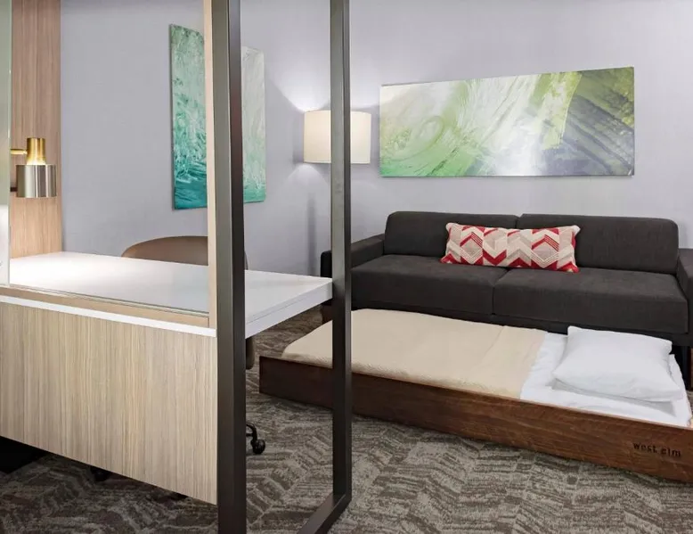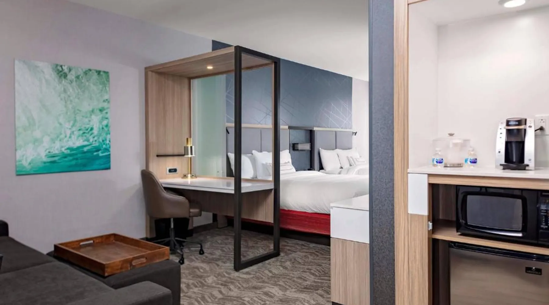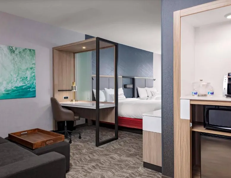 Comfortable Accommodations: SpringHill Suites by Marriott Kansas City Plaza in Kansas City offers comfortable rooms with air-conditioning, private bathrooms, and city views. Each room includes a work desk, sofa bed, and free WiFi. Exceptional Facilities: Guests can enjoy a fitness center, indoor swimming pool, terrace, and bar. Additional amenities include a lounge, outdoor fireplace, and outdoor seating area. Convenient Location: Located 21 mi from Kansas City International Airport, the hotel is near attractions such as Savart Gallery (less than 0.6 mi) and Ambiance On The Water (10-minute walk). An ice-skating rink is also nearby. Guest Satisfaction: Highly rated for its attentive staff, convenient location, and breakfast provided by the property. The suite provides a washing machine, a tea and coffee maker, a sofa along with a patio.