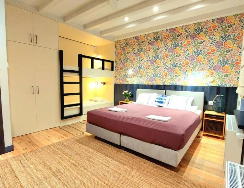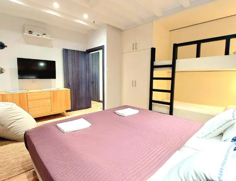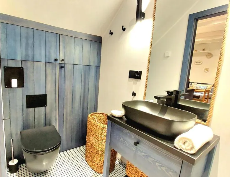Beachfront Location: The Old Fisherman's Nest by TriApart in Gdańsk offers direct beachfront access and stunning sea views. Guests can relax on the sandy shore just a 2-minute walk away. Spacious Accommodations: This spacious apartment features two bedrooms, two bathrooms, and a comfortable living room. Family rooms provide ample space for relaxation and leisure. Modern Amenities: The property provides free WiFi, streaming services, a washing machine, and a fully equipped kitchen with a coffee machine, dishwasher, and oven. Additional amenities include a dining area, TV, and free on-site private parking. Nearby Attractions: Brzeźno Beach is a 2-minute walk away, while Gdańsk Lech Wałęsa Airport is 7.5 mi distant. Points of interest such as Gdańsk Nowy Port Lighthouse and Oliwa Cathedral are within 4.3 mi. This spacious apartment features 1 living room, 2 separate bedrooms and 2 bathrooms with a shower and a hairdryer. Meals can be prepared in the well-fitted kitchen, which has a stovetop, a refrigerator, a dishwasher and kitchenware. The apartment features a washing machine, a coffee machine, a dining area, a dressing room and a flat-screen TV with streaming services. The unit has 5 beds.
